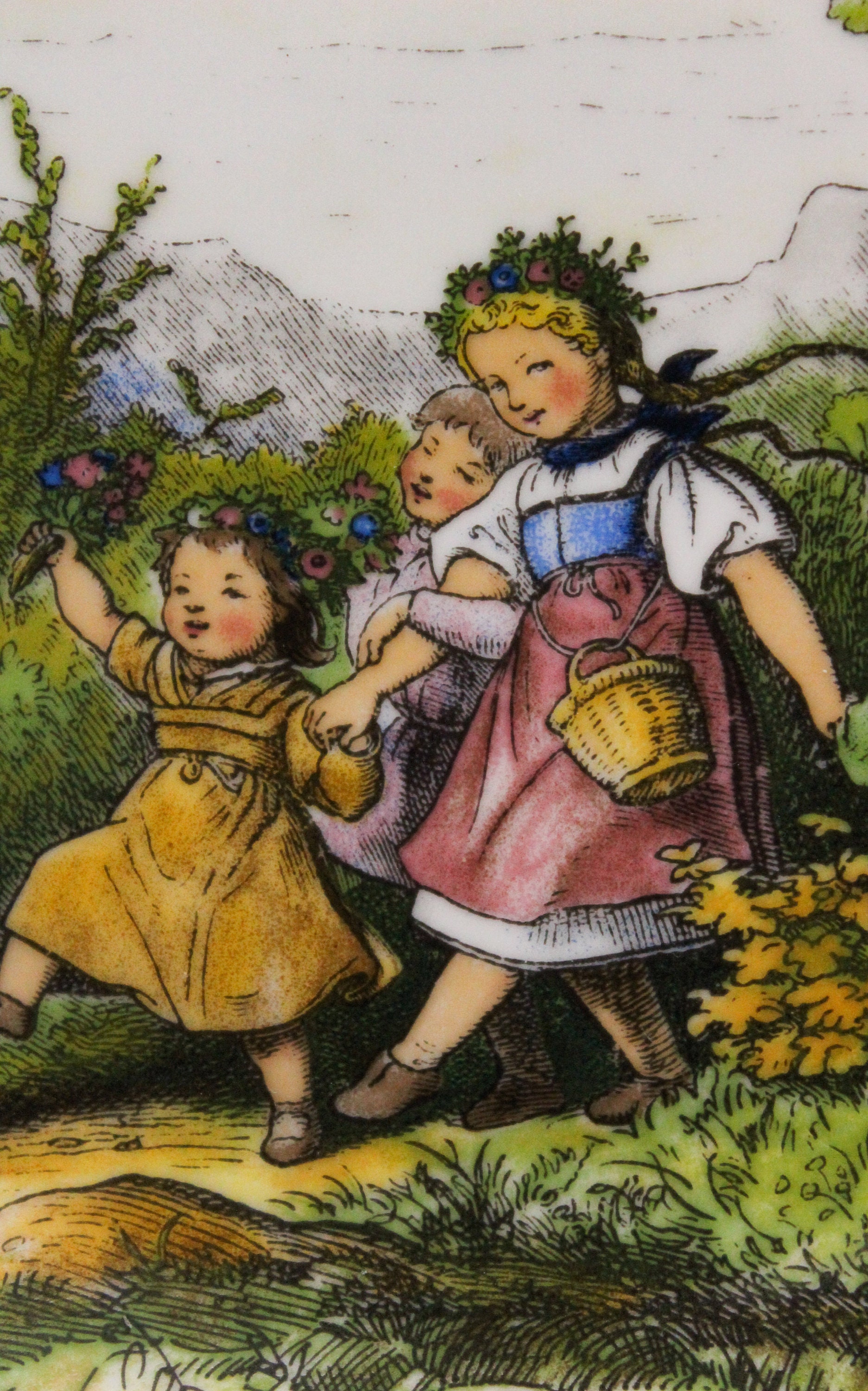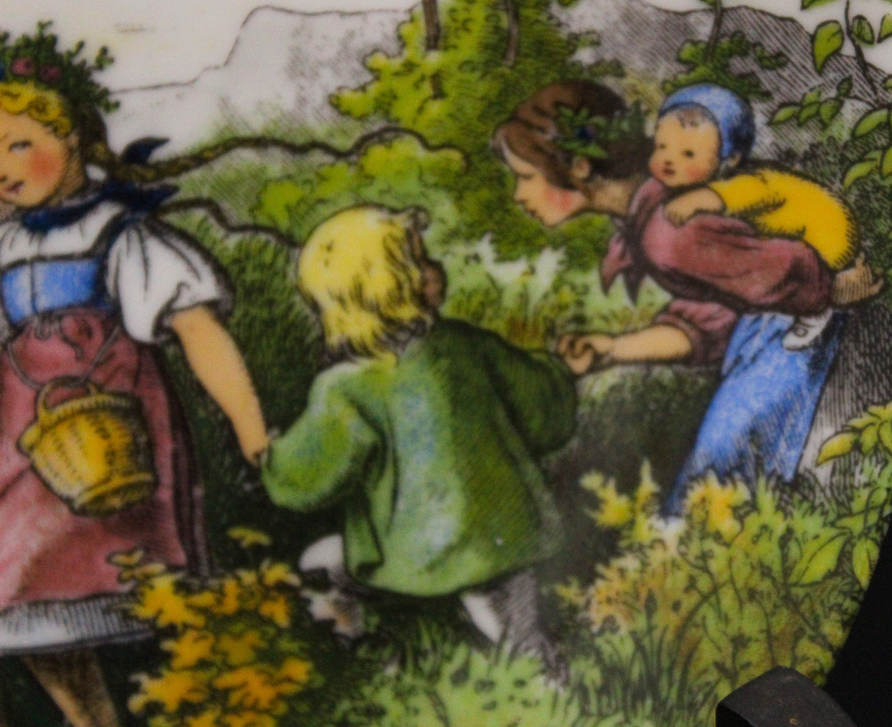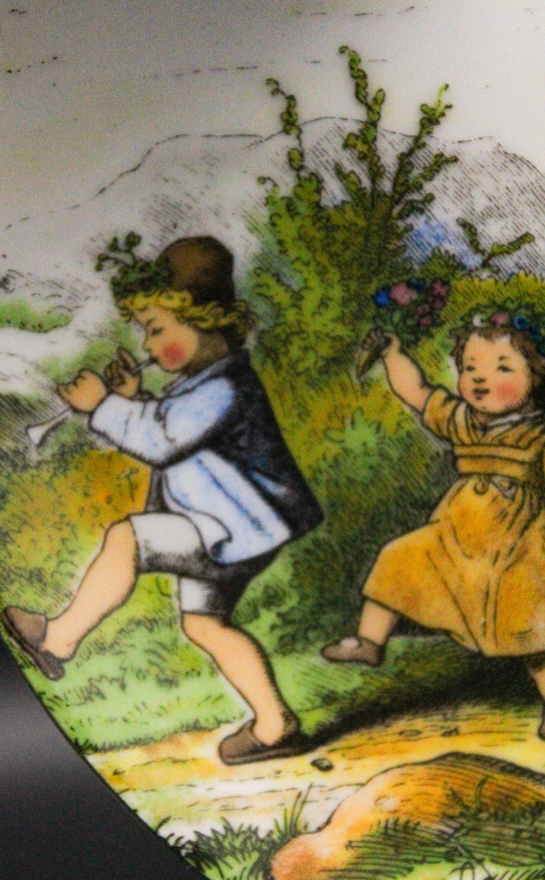 Charming small decorative plate with a children's motif in a spring landscape, made by Seltmann Weiden, Germany.