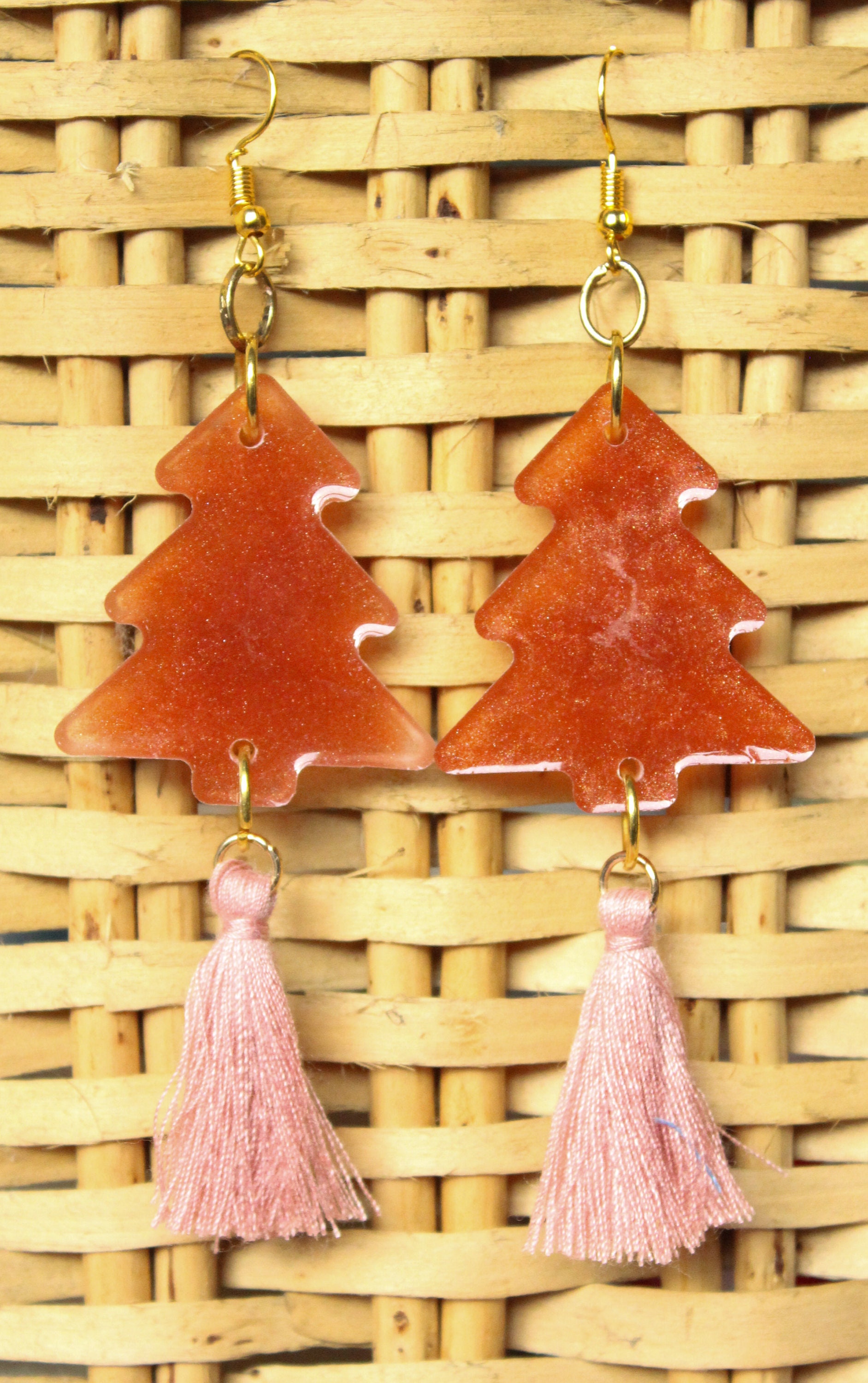 Handmade Christmas trees made of iridescent colored resin.