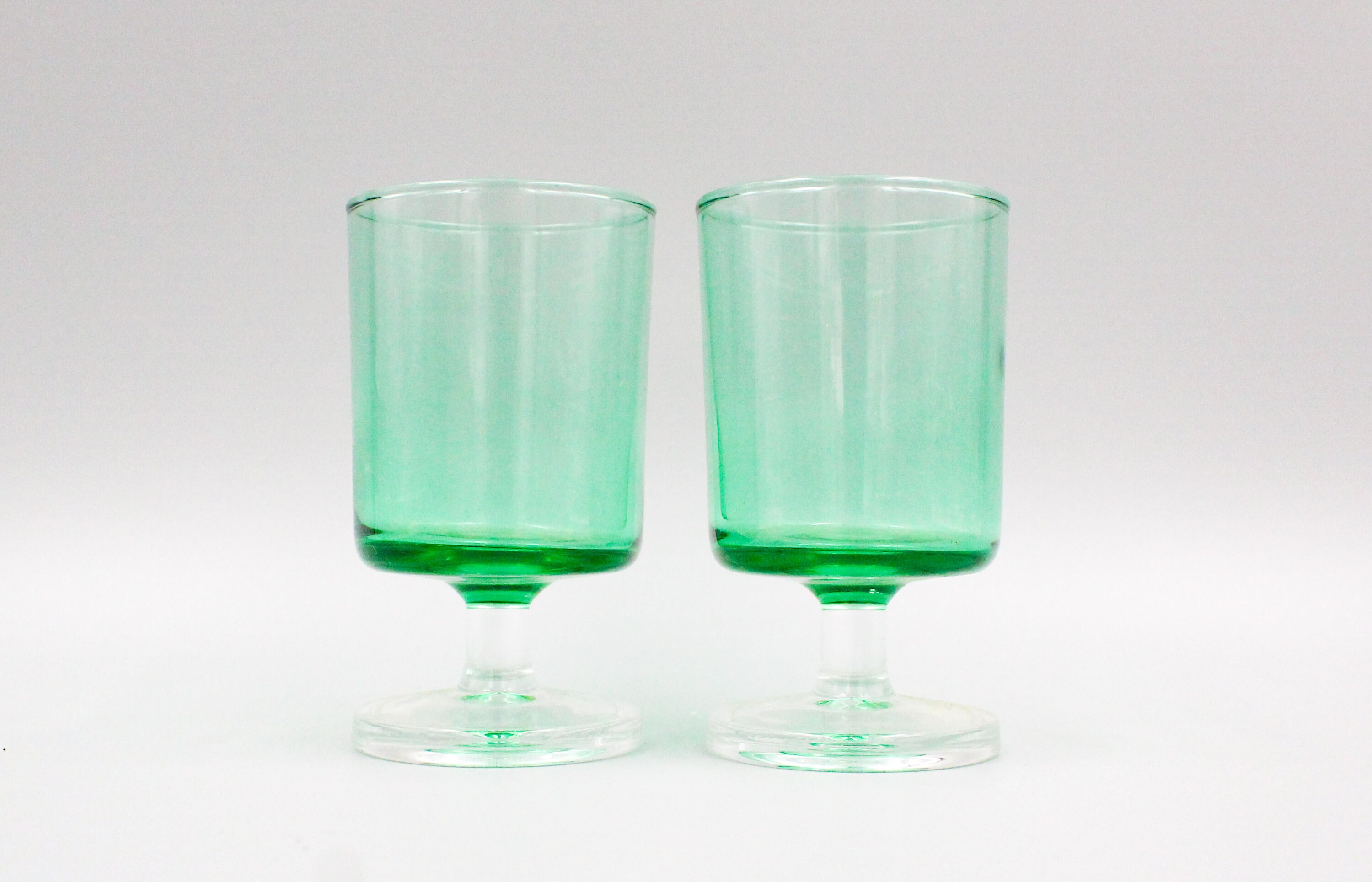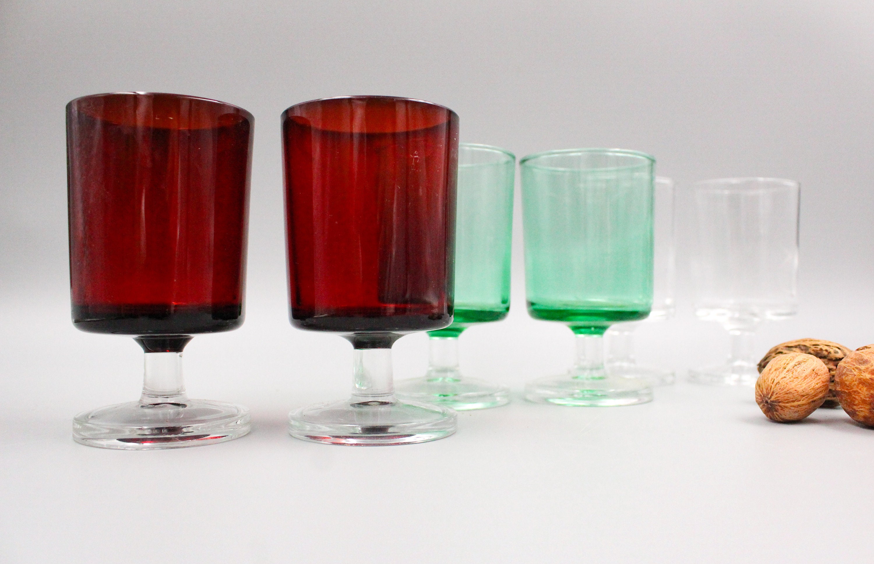 A set of small vintage French Luminarc glasses dating from the 1970s. They can be used to serve aperitifs, spirits such as port, martinis, etc.
