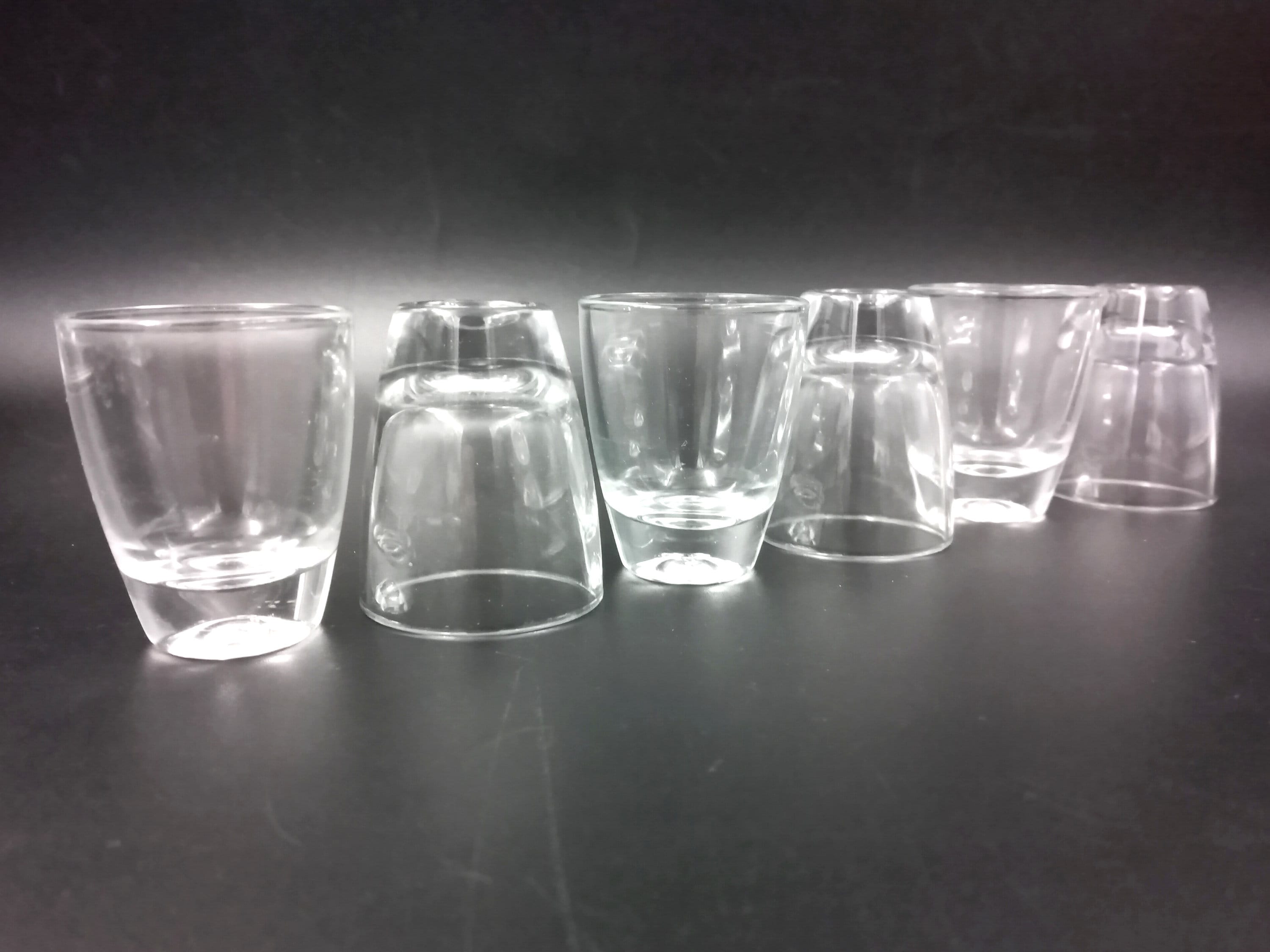 6 petits shots en verre des années 60/70 , en verre épais transparent.