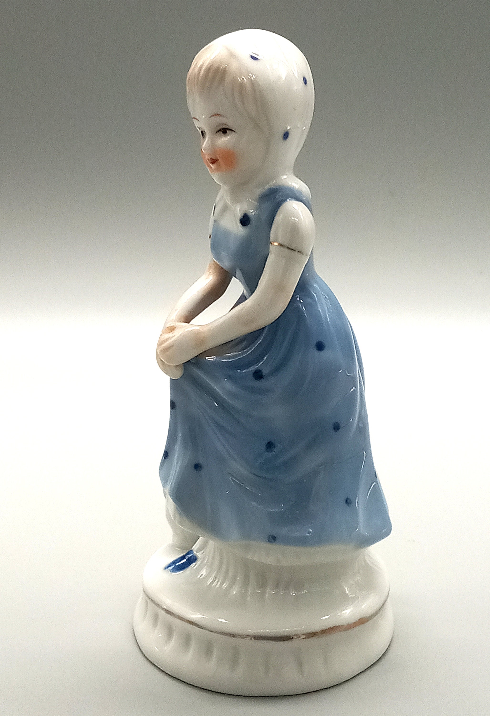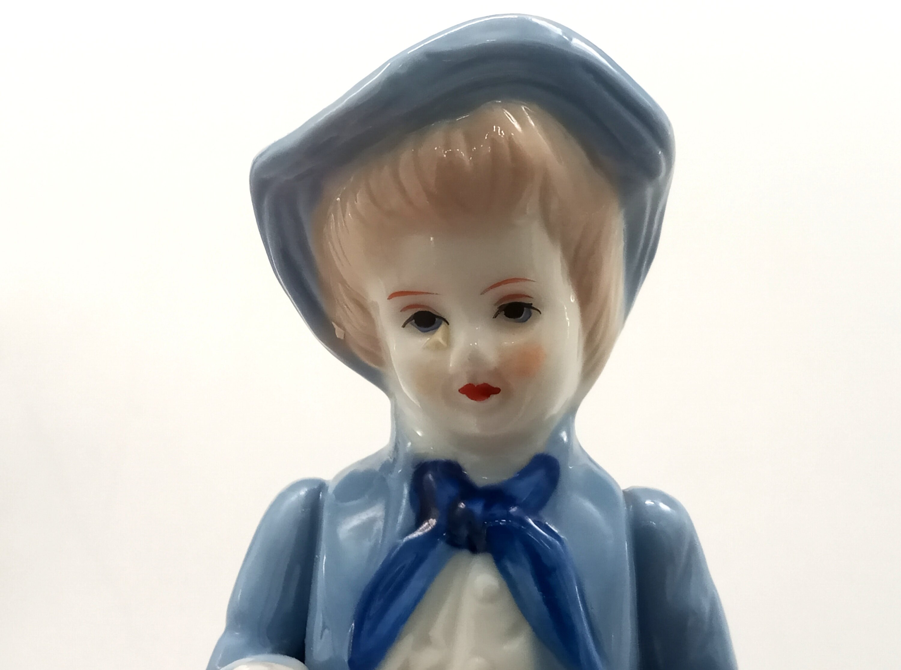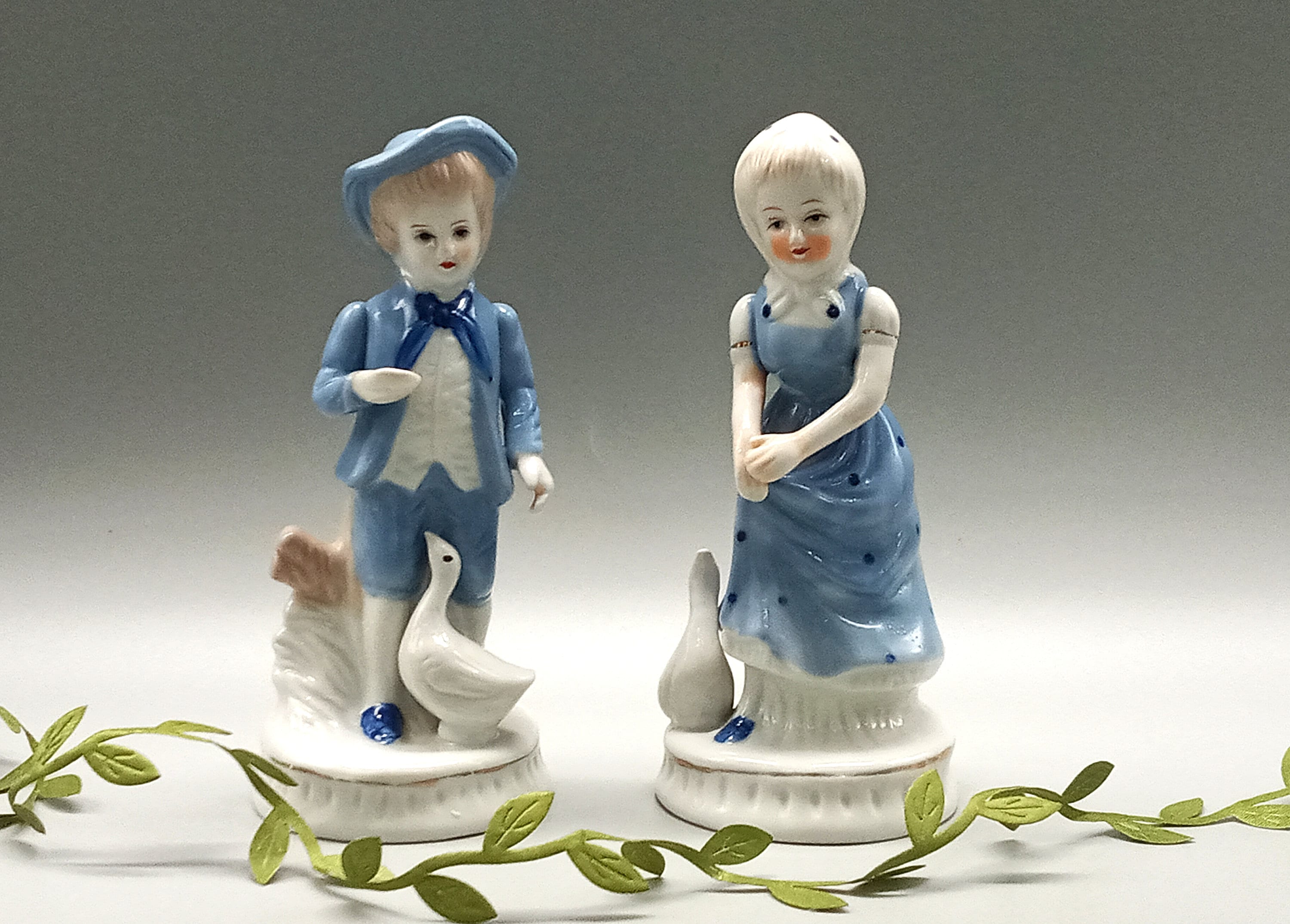 Couple of vintage ceramic figurines, boy and girl, blue and white porcelain