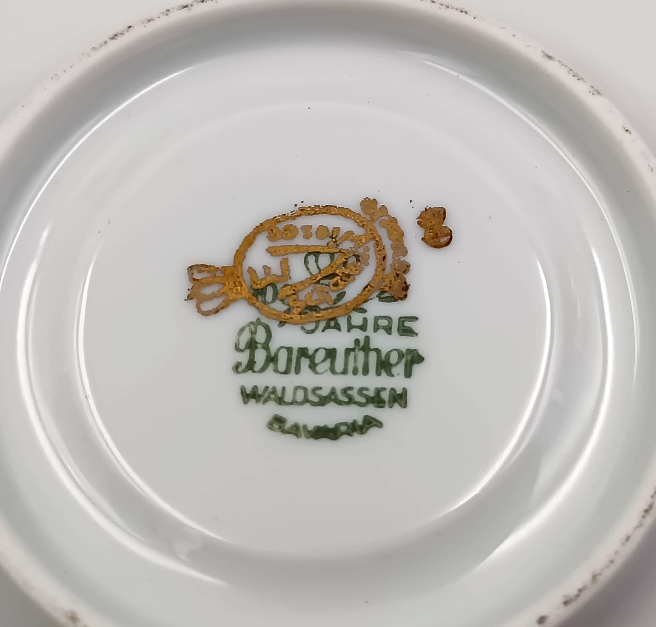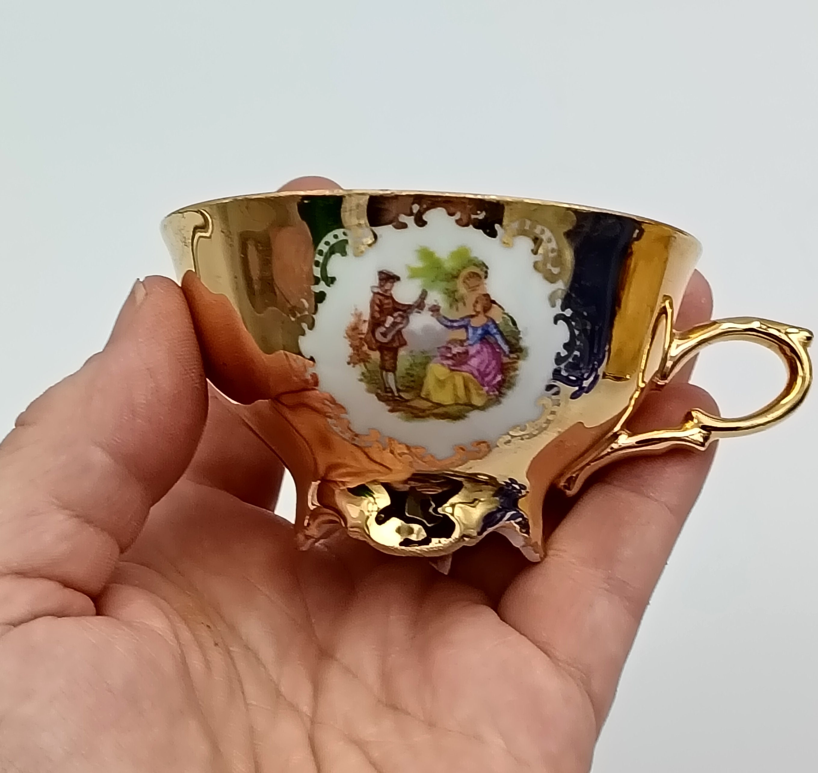 Excellent condition, no chips or cracks, slight signs of wear on the gold of the saucers.