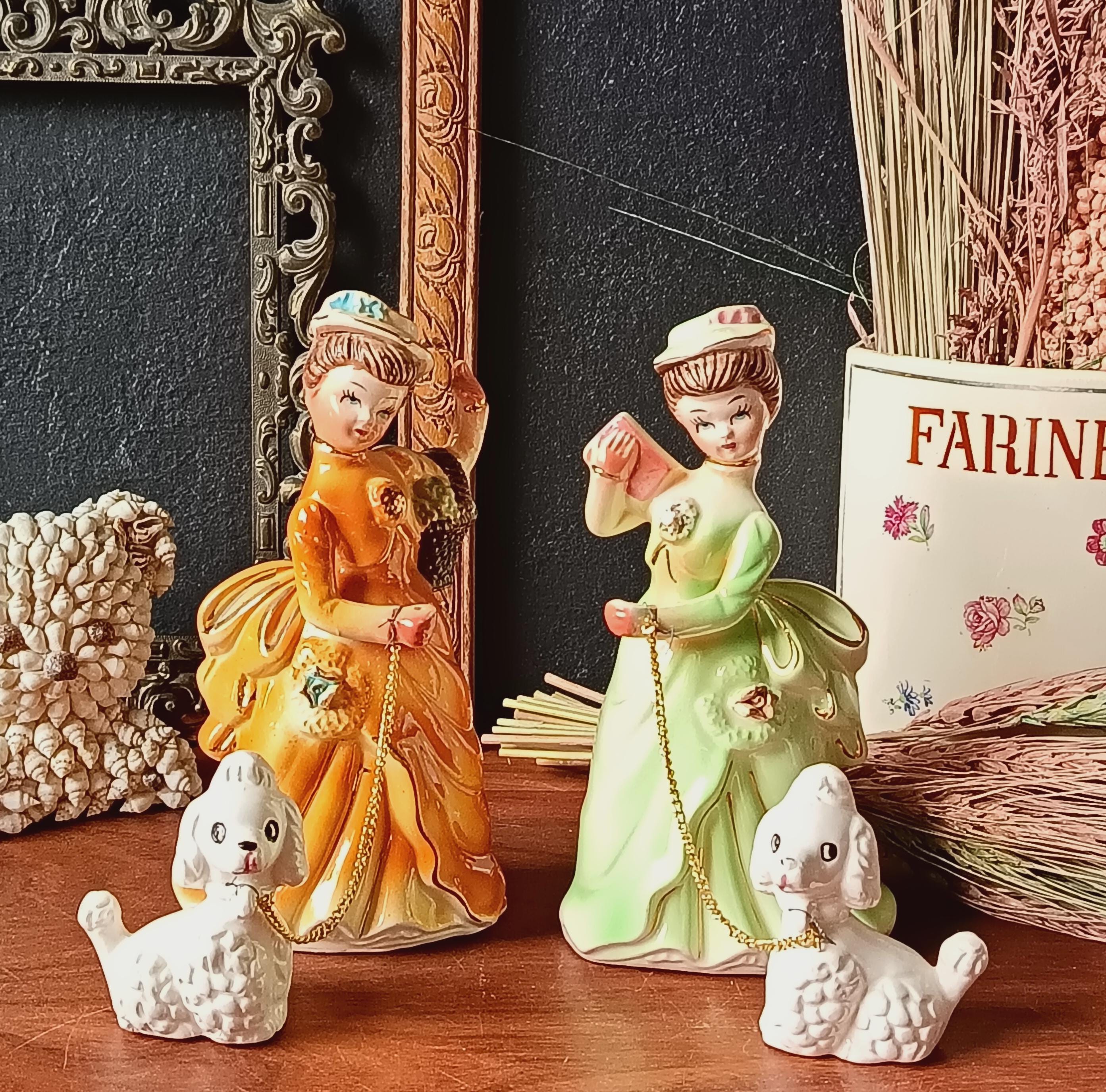 Lovely porcelain figurine of a Belle Époque lady and her dog.