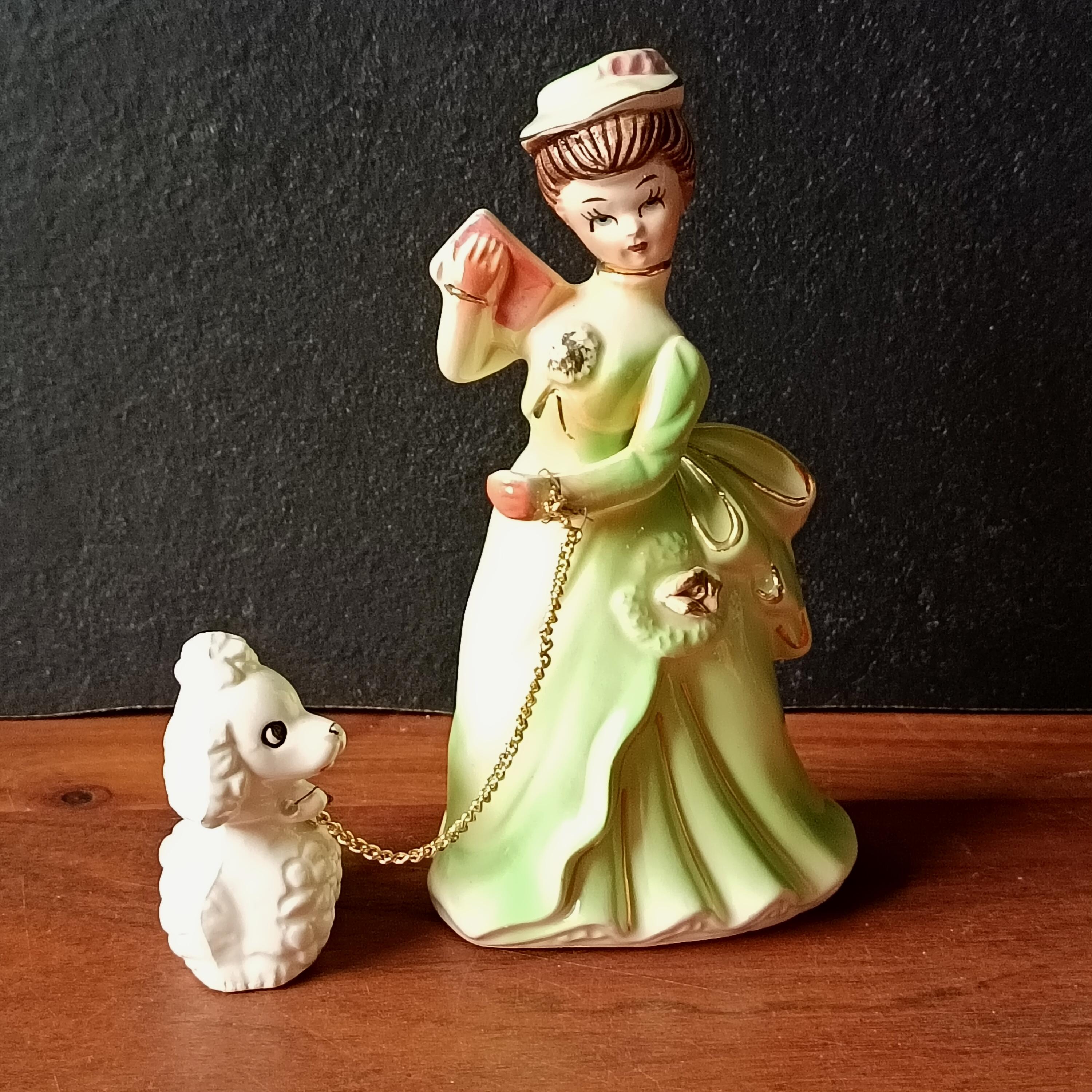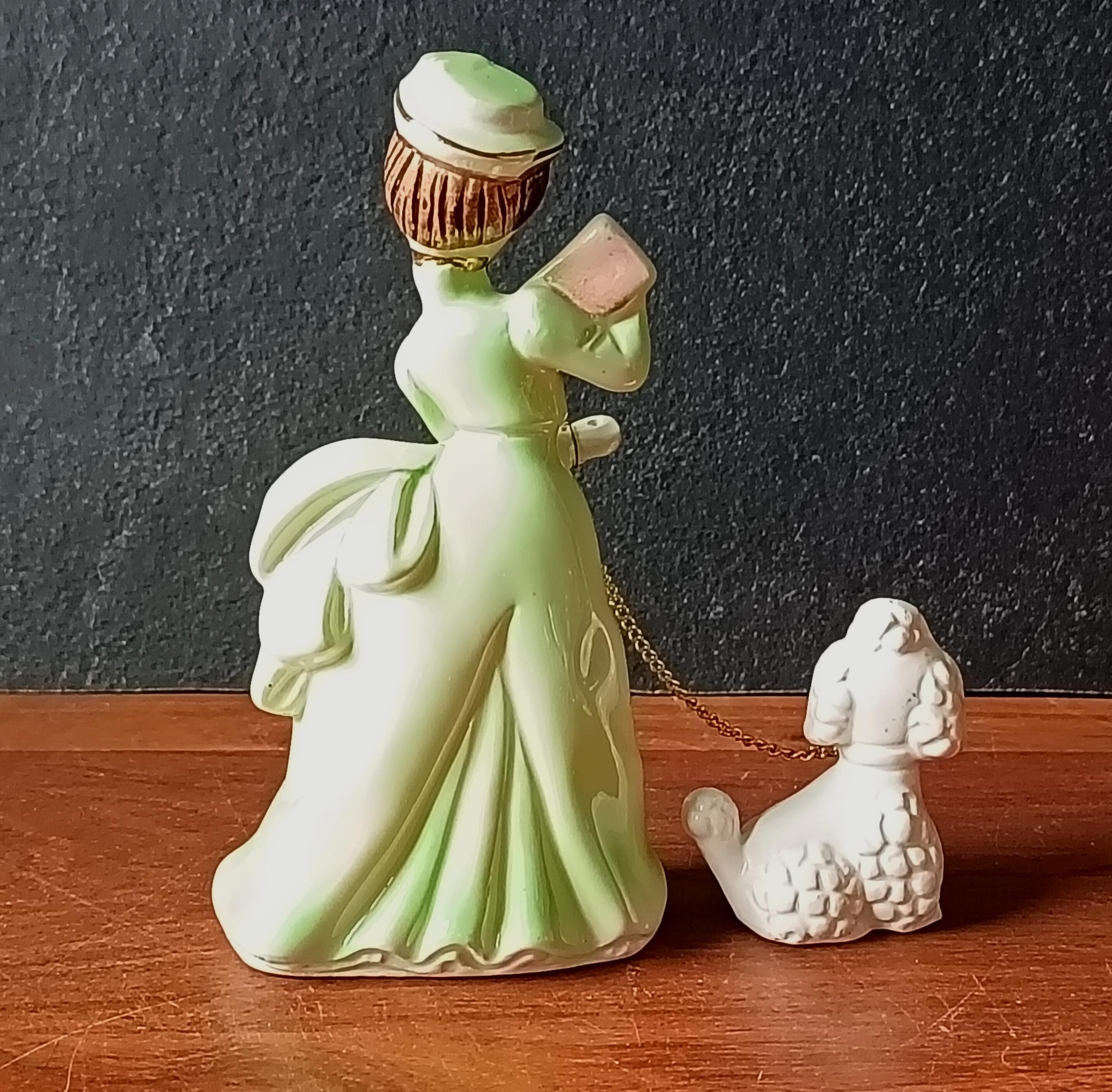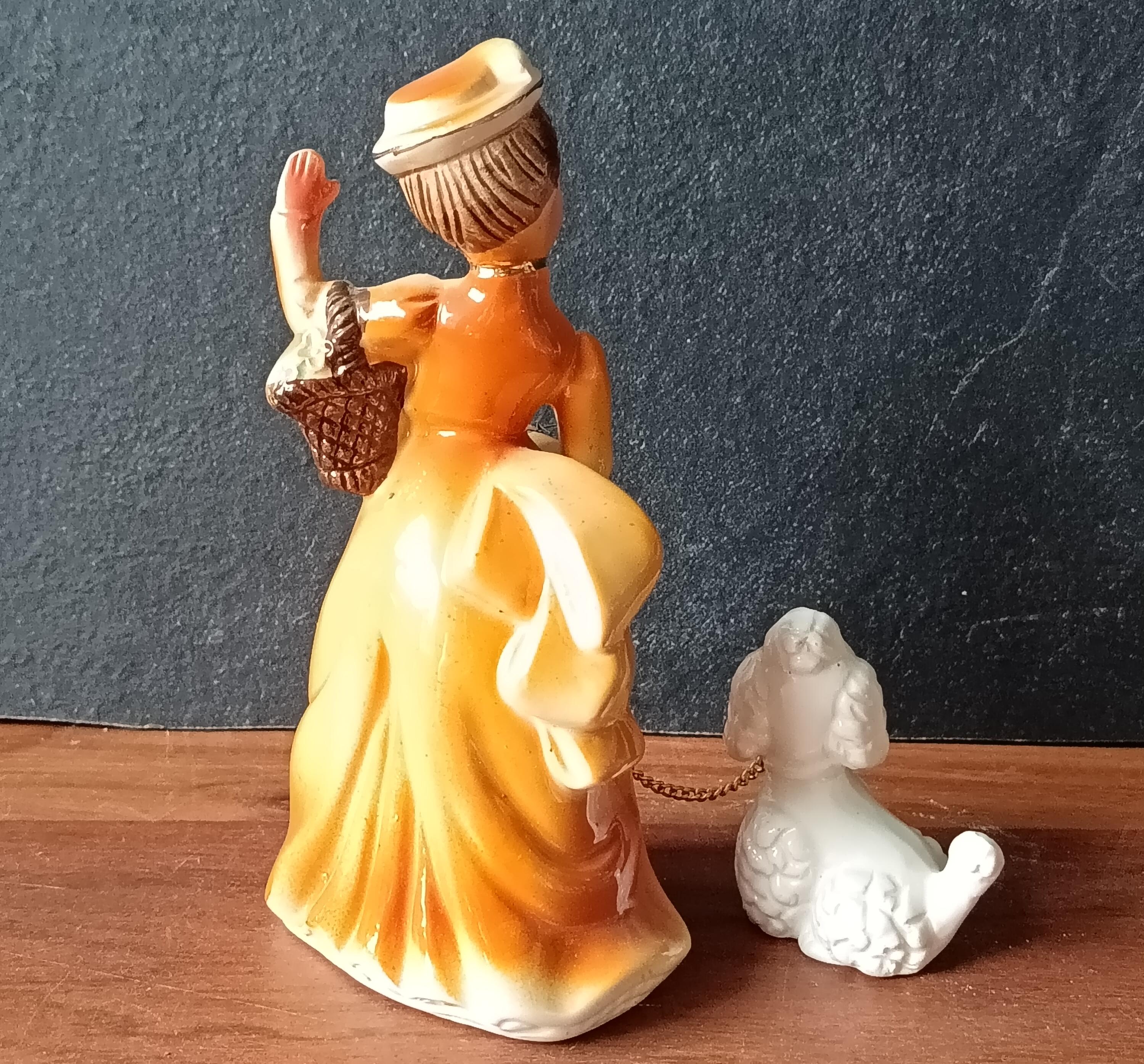 Lovely porcelain figurine of a Belle Époque lady and her dog.