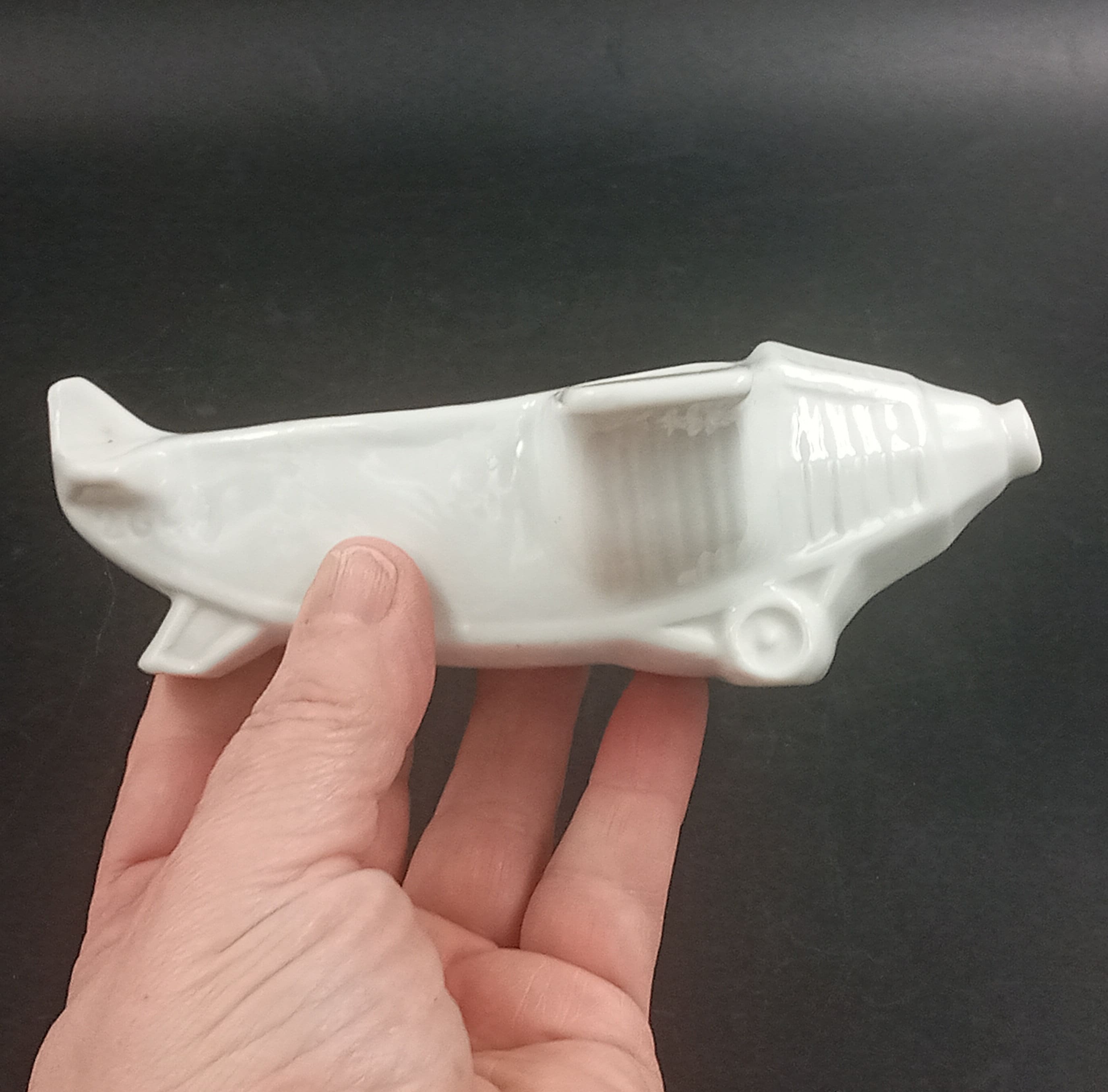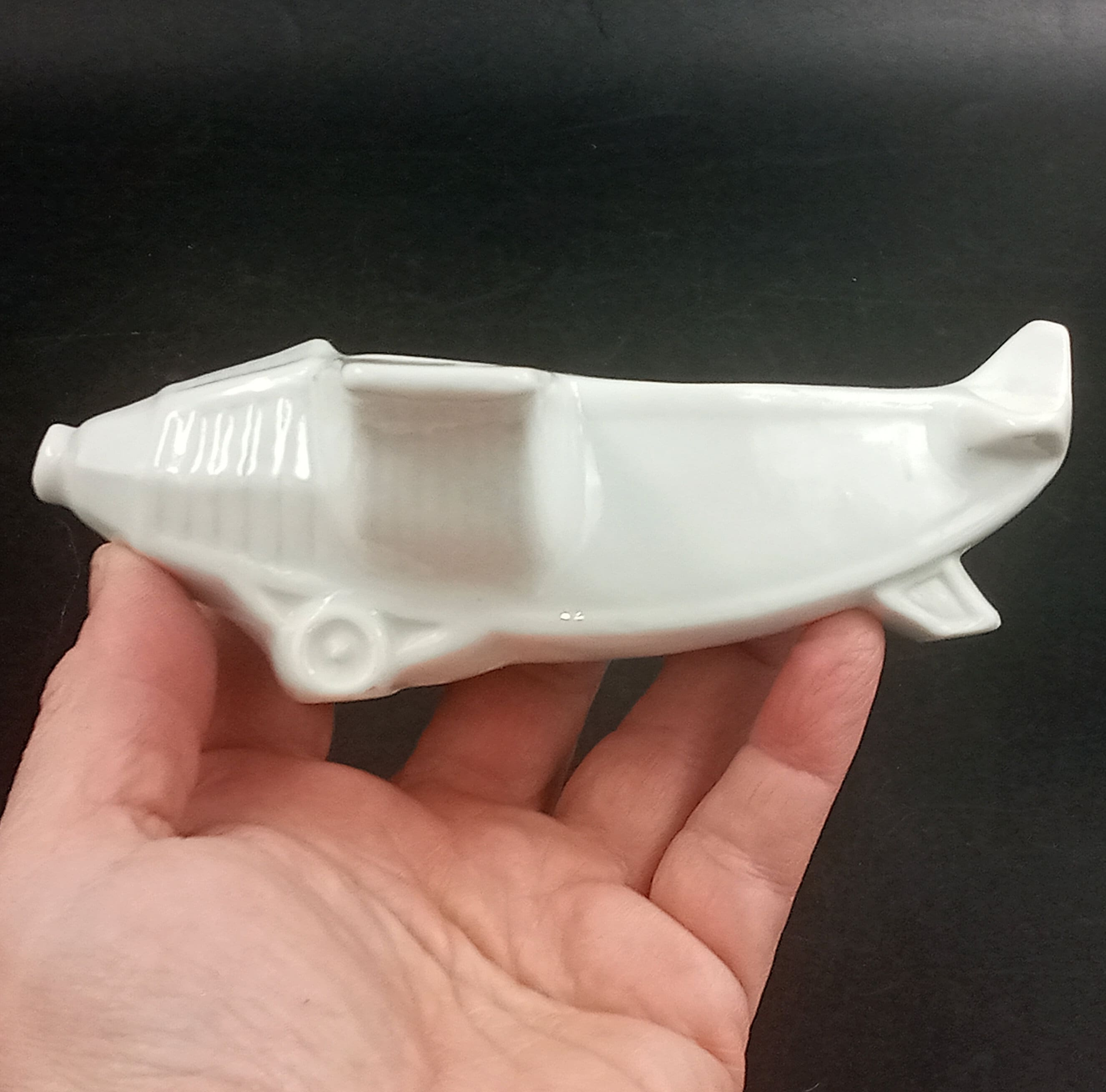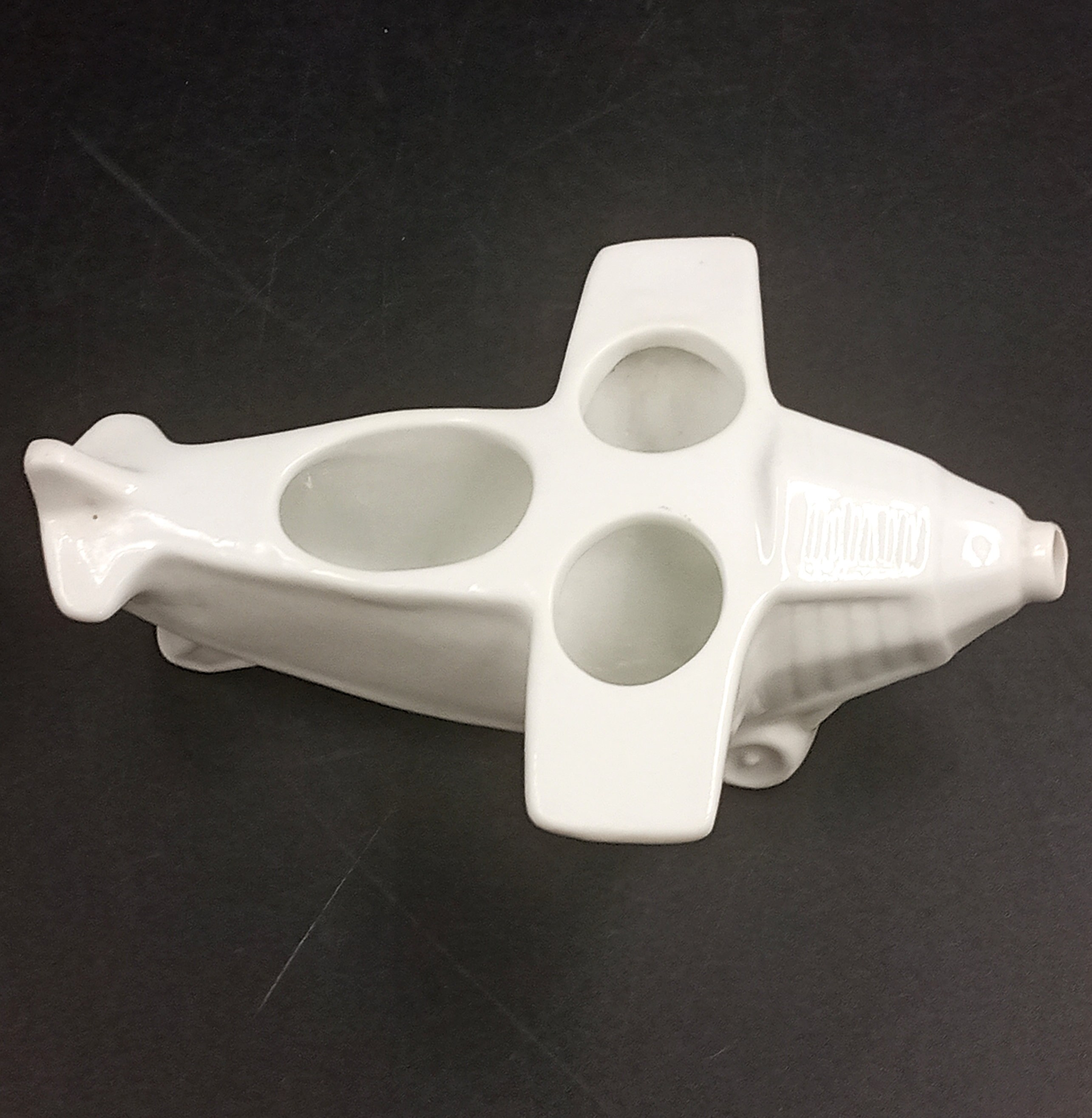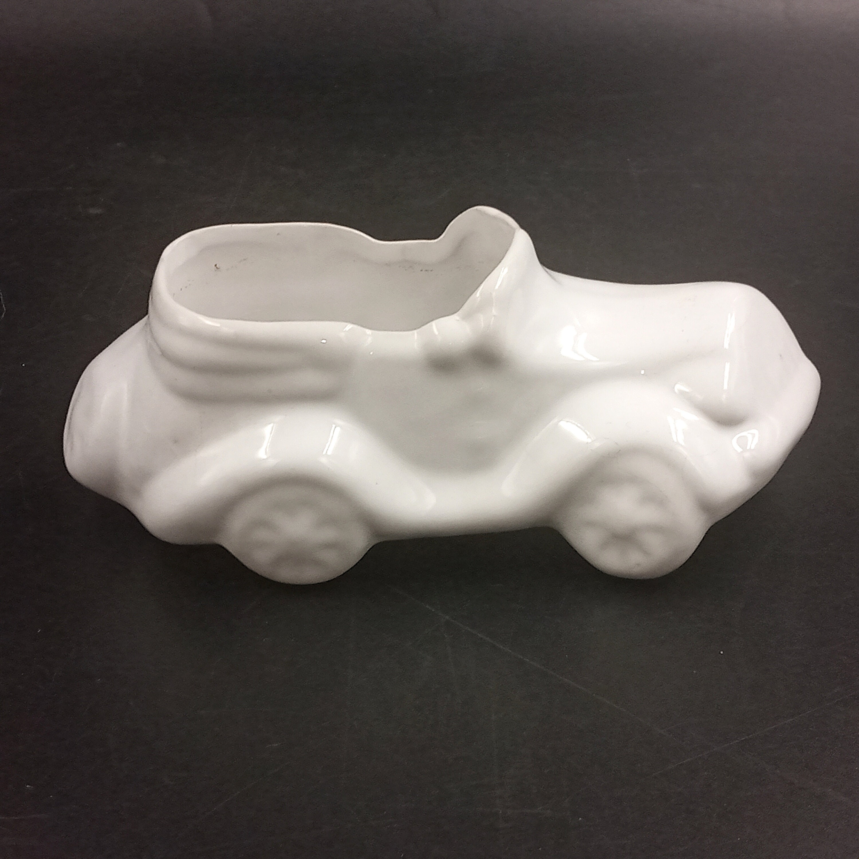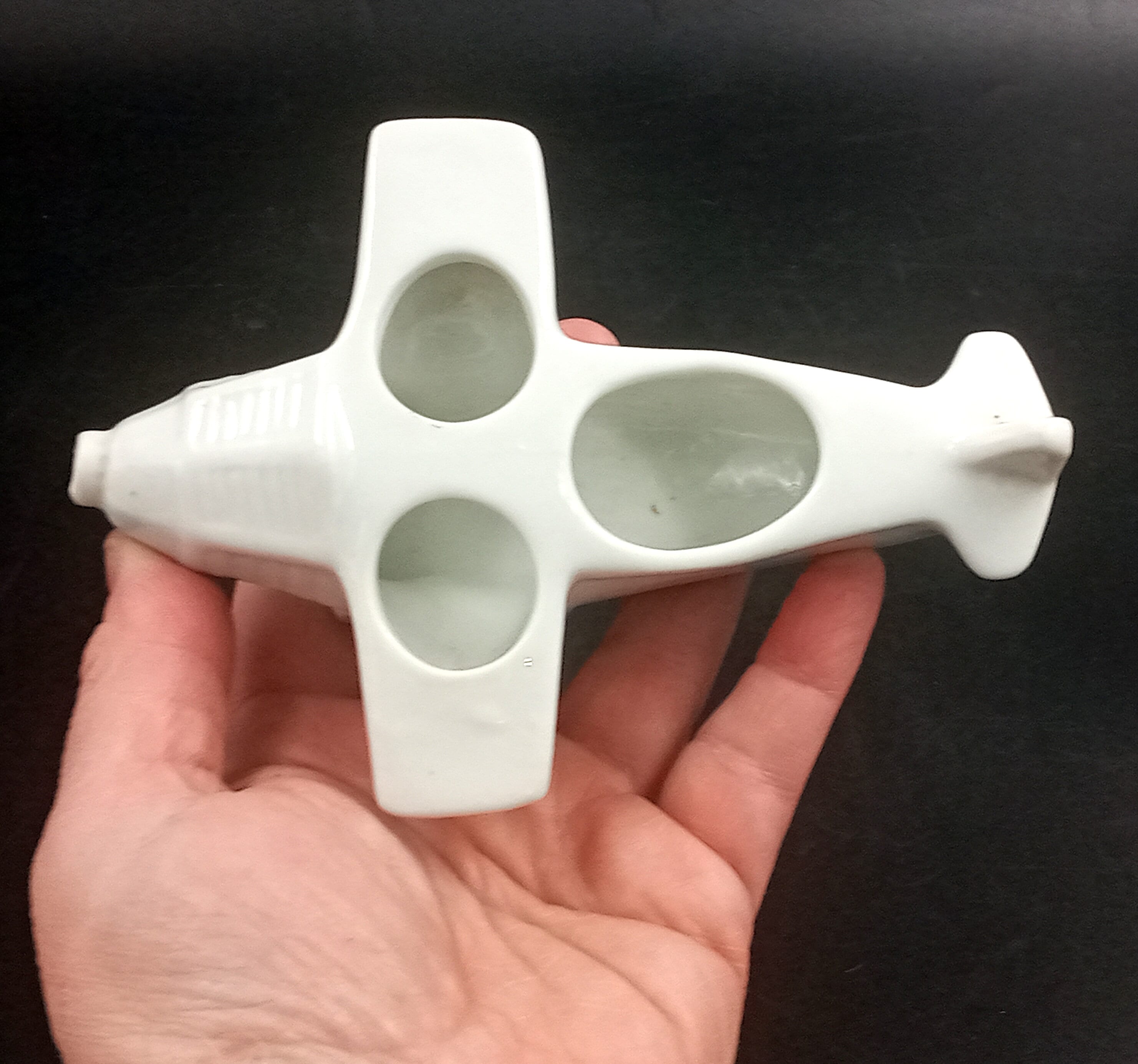 The first one is shaped like a car and allows you to plant a small succulent or cactus. The second one is shaped like a small white airplane; it has three holes on top and a small one on the nose.