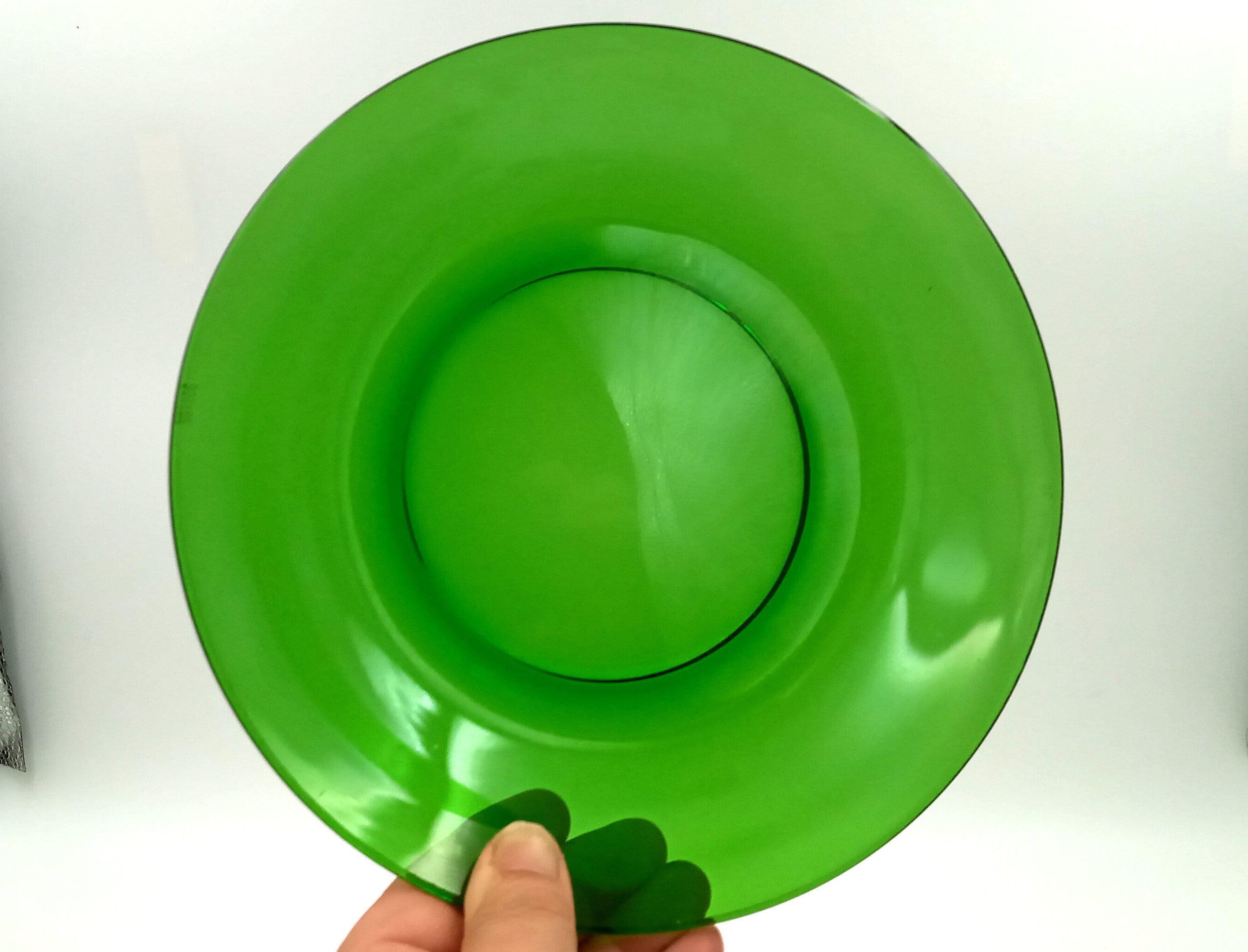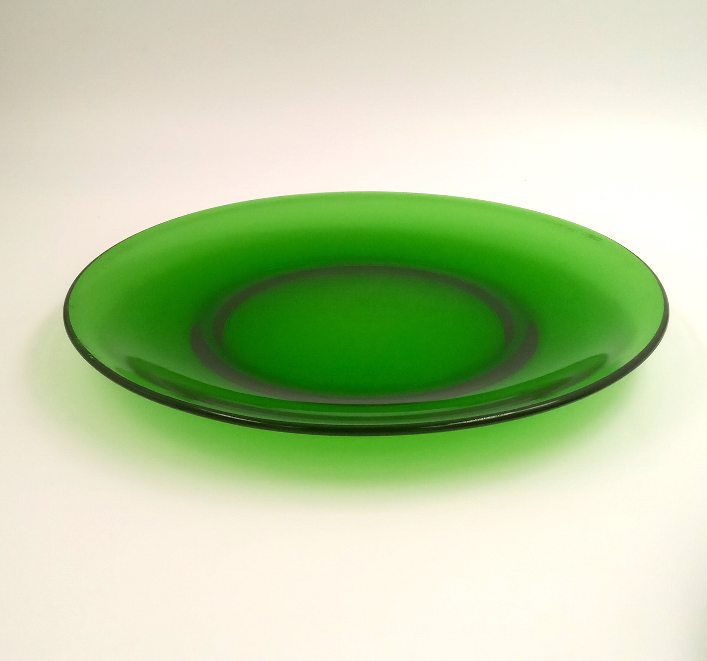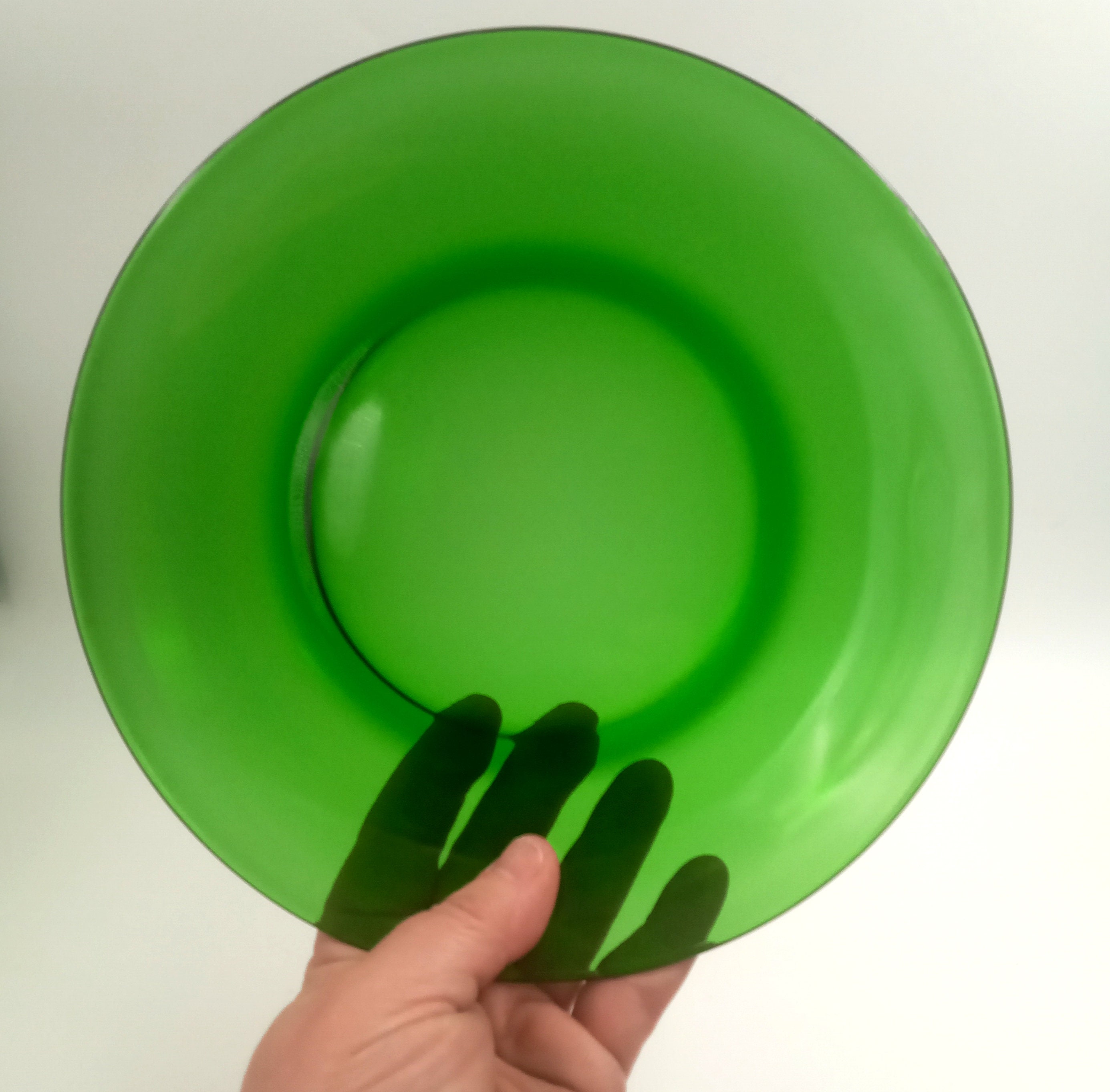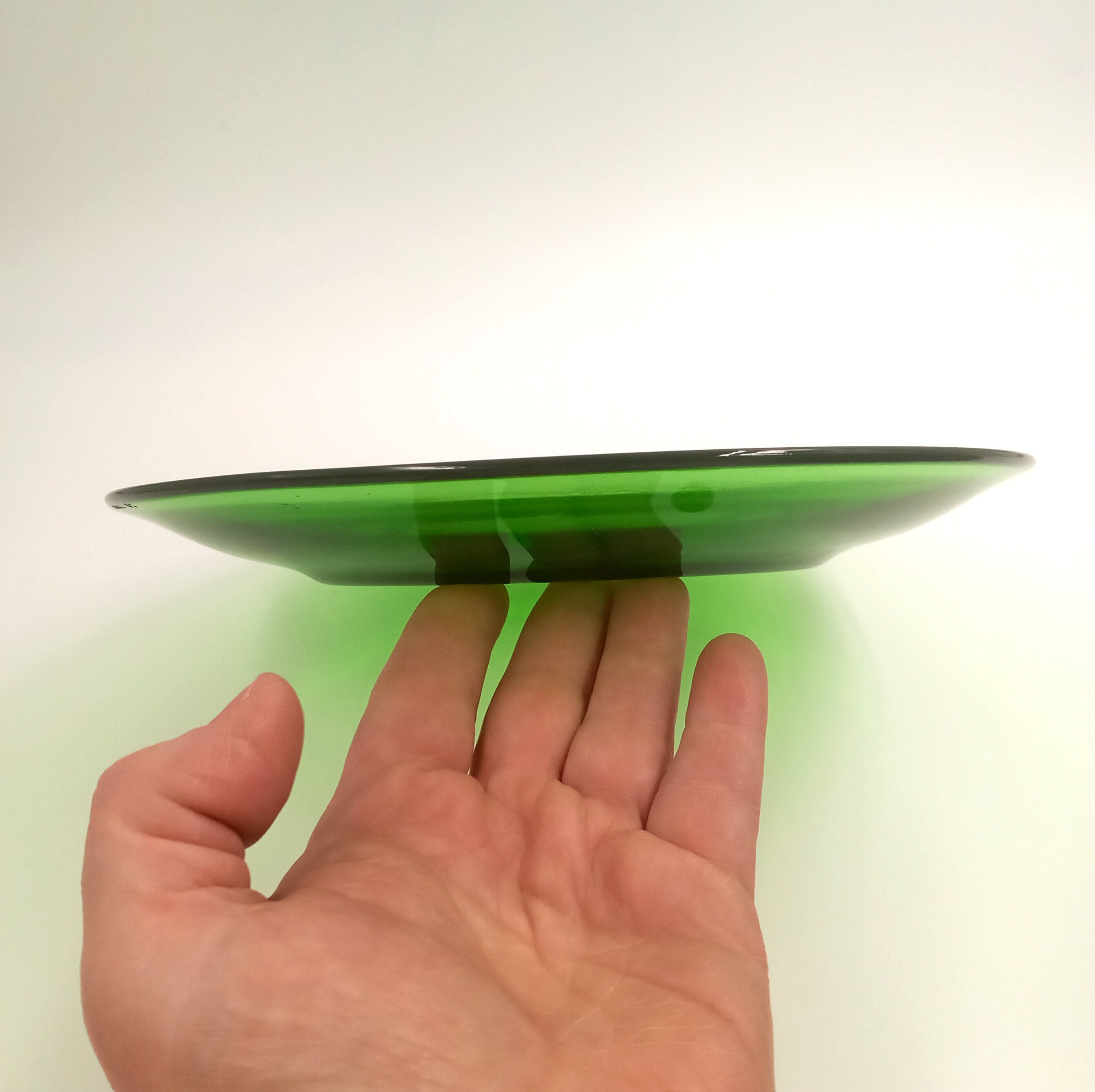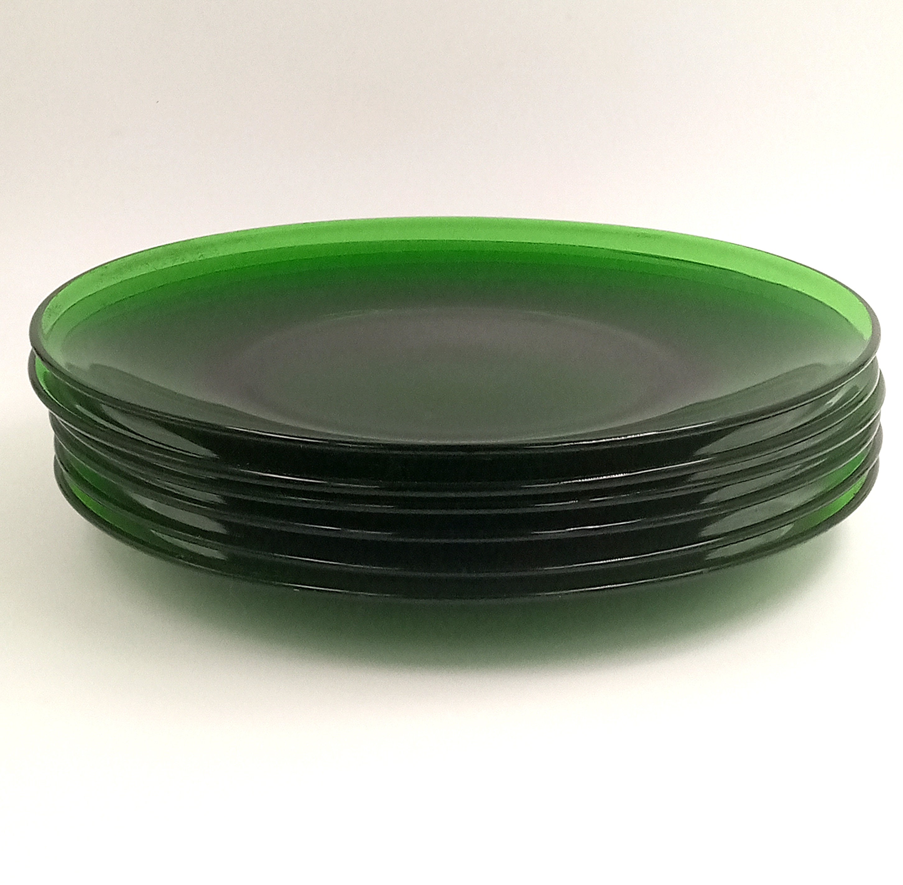 Set of 7 VERECO brand dessert plates. They are made of tempered glass in a beautiful emerald green color.
