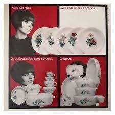 A very pretty translucent white glass butter dish, "Fruits de France" model, by ARCOPAL, produced in France in the 1960s. The decoration, depicting an apple, a pear, and grapes, is charming and in perfect condition; it is the "Fruits de France" model.
