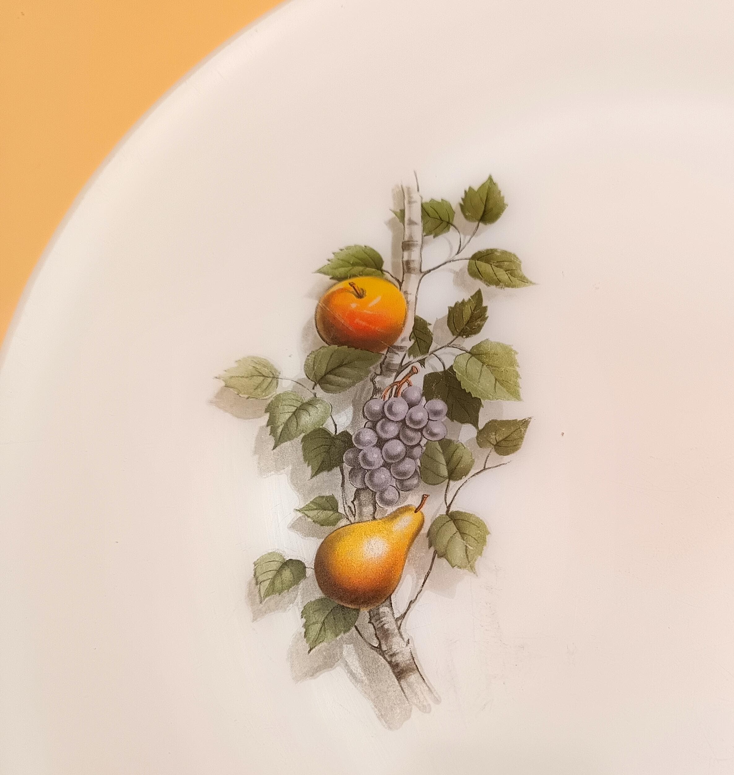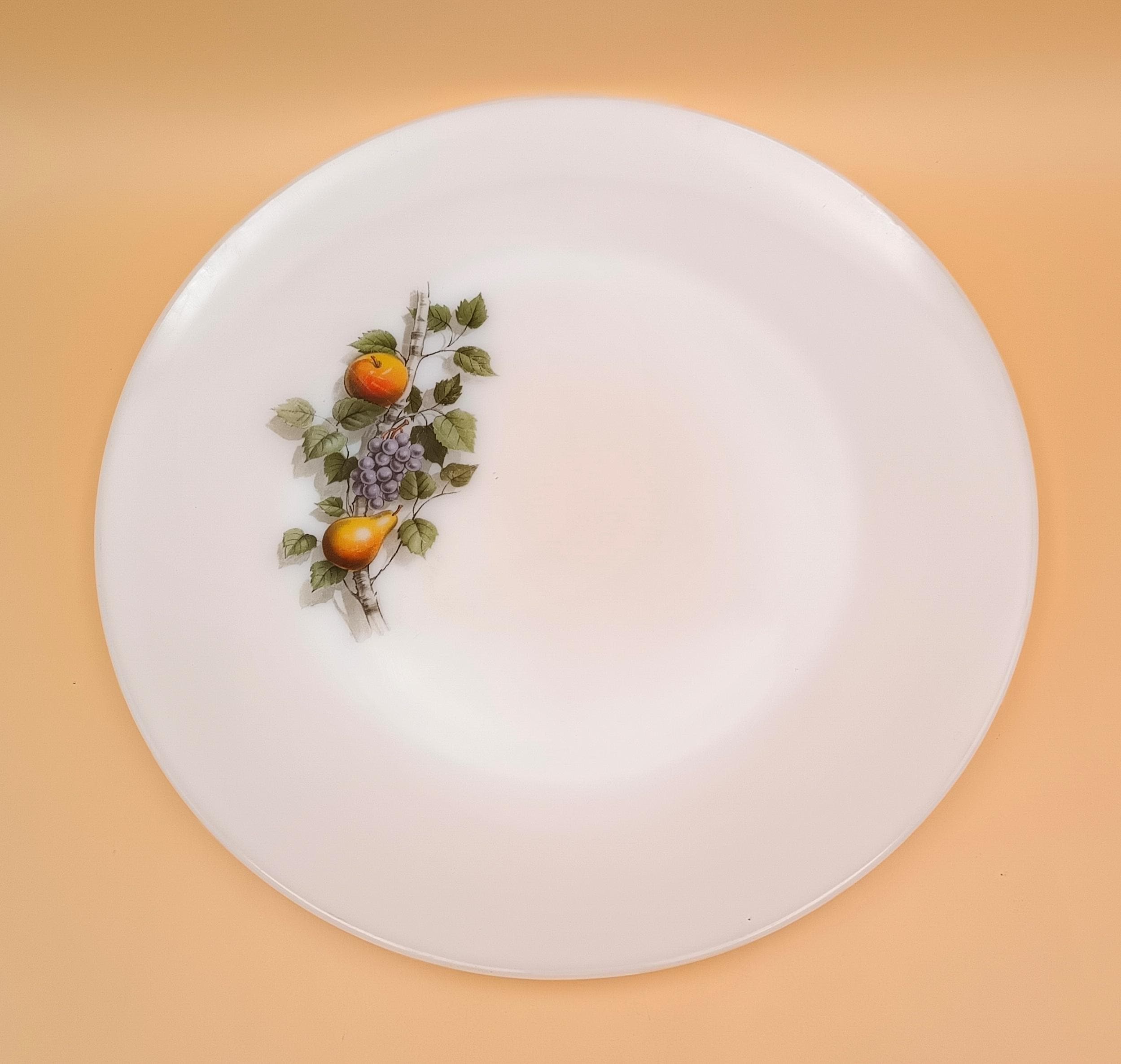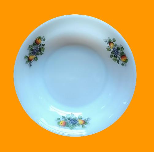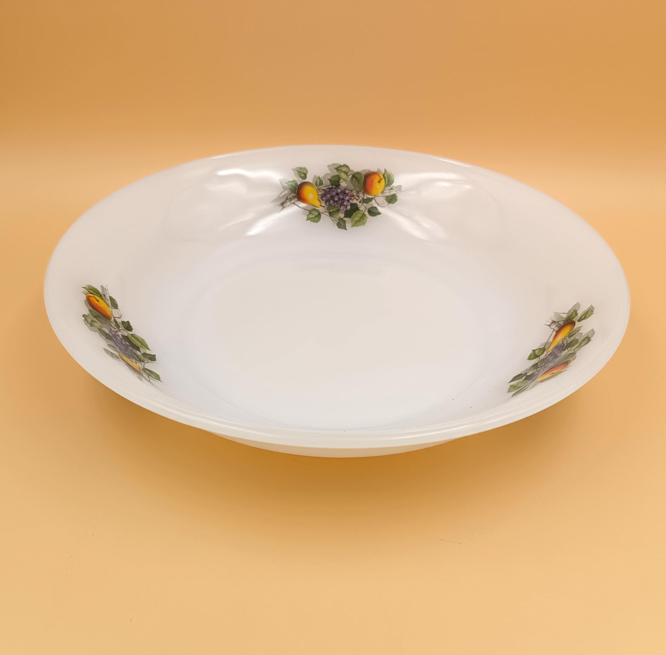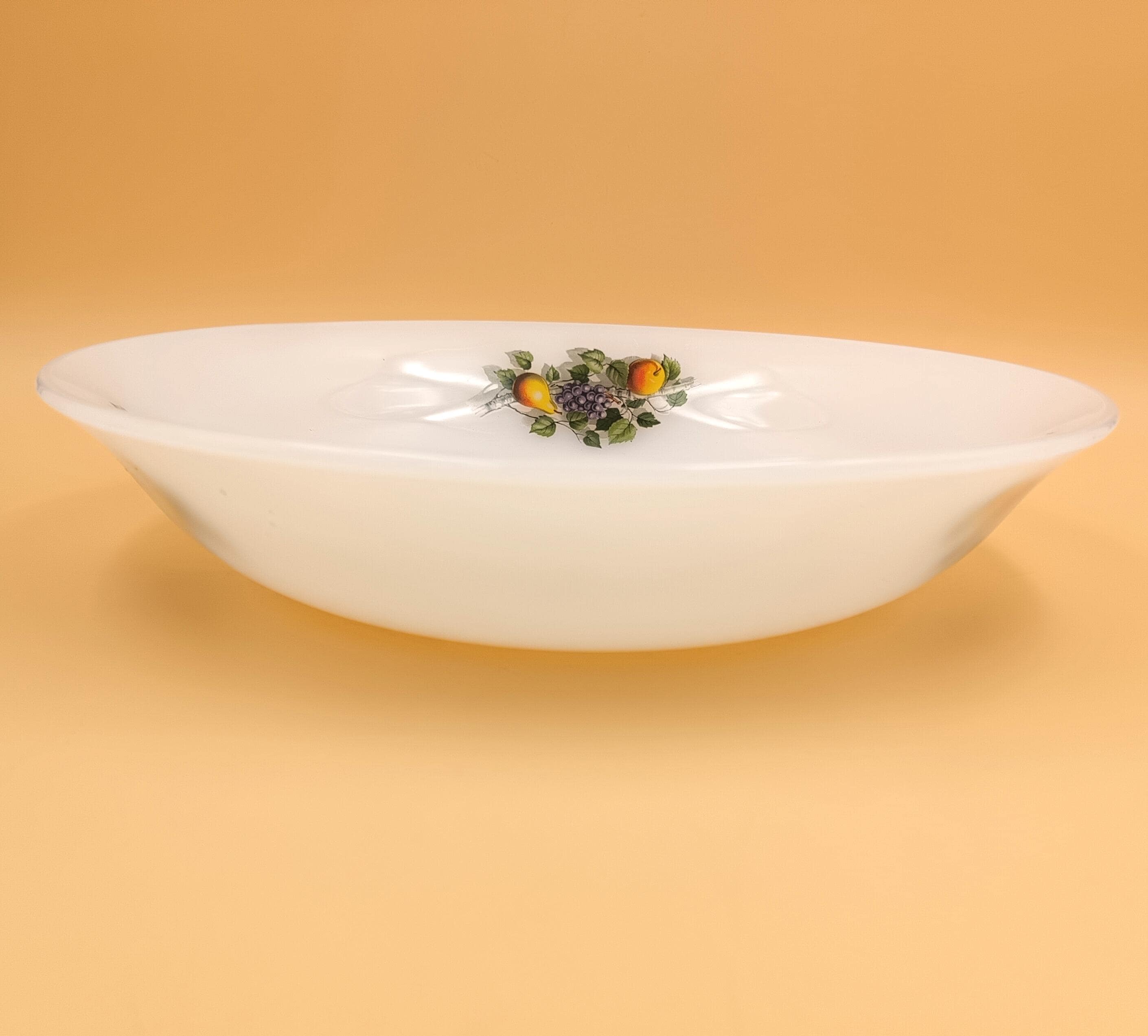 Arcopal round hollow dish in Opaline - "Autumn fruits" motif - 60s - Arcopal kitchen - Retro decor