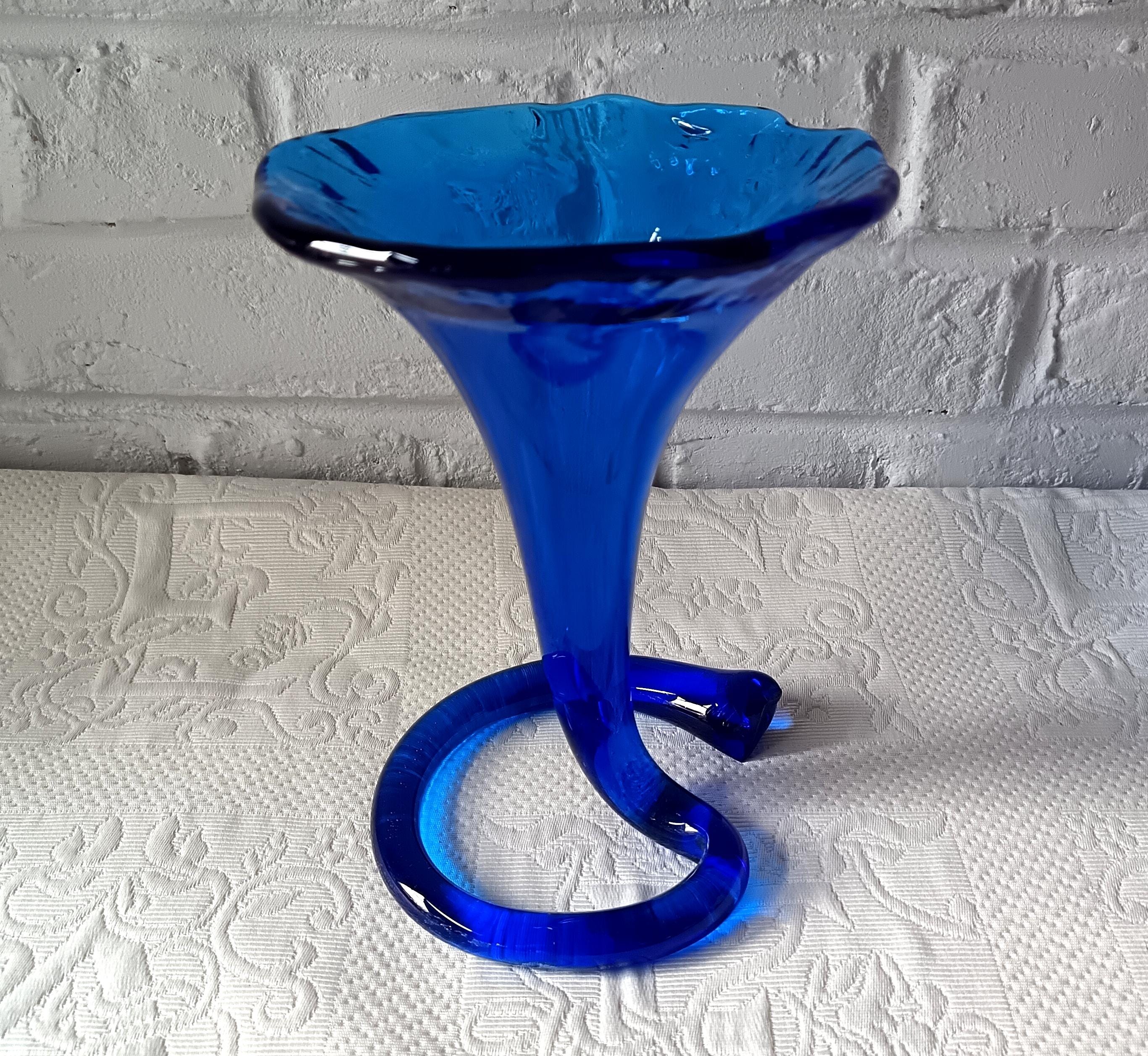 Very pretty blown glass vase, trumpet-shaped, cobalt blue in color.