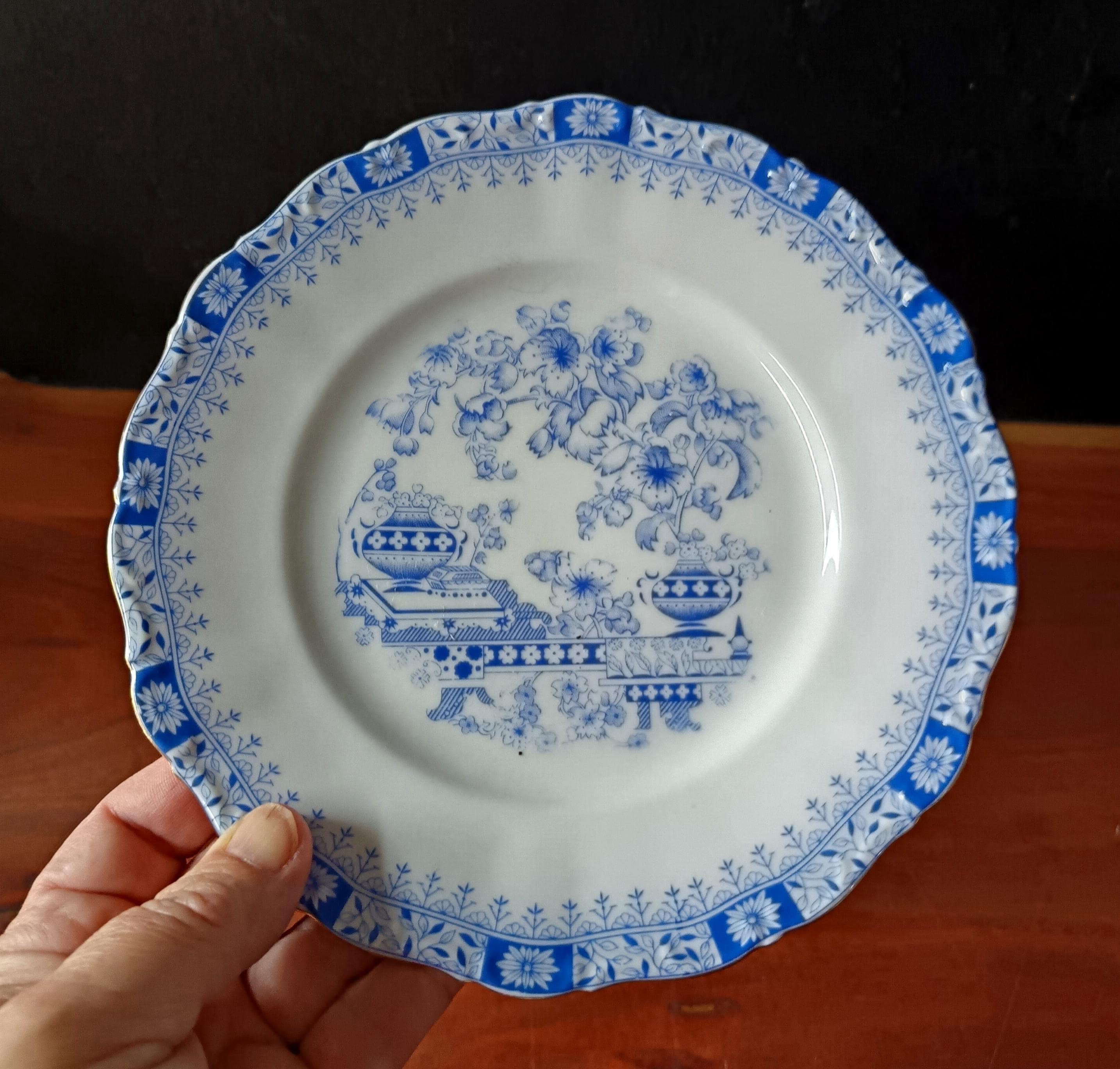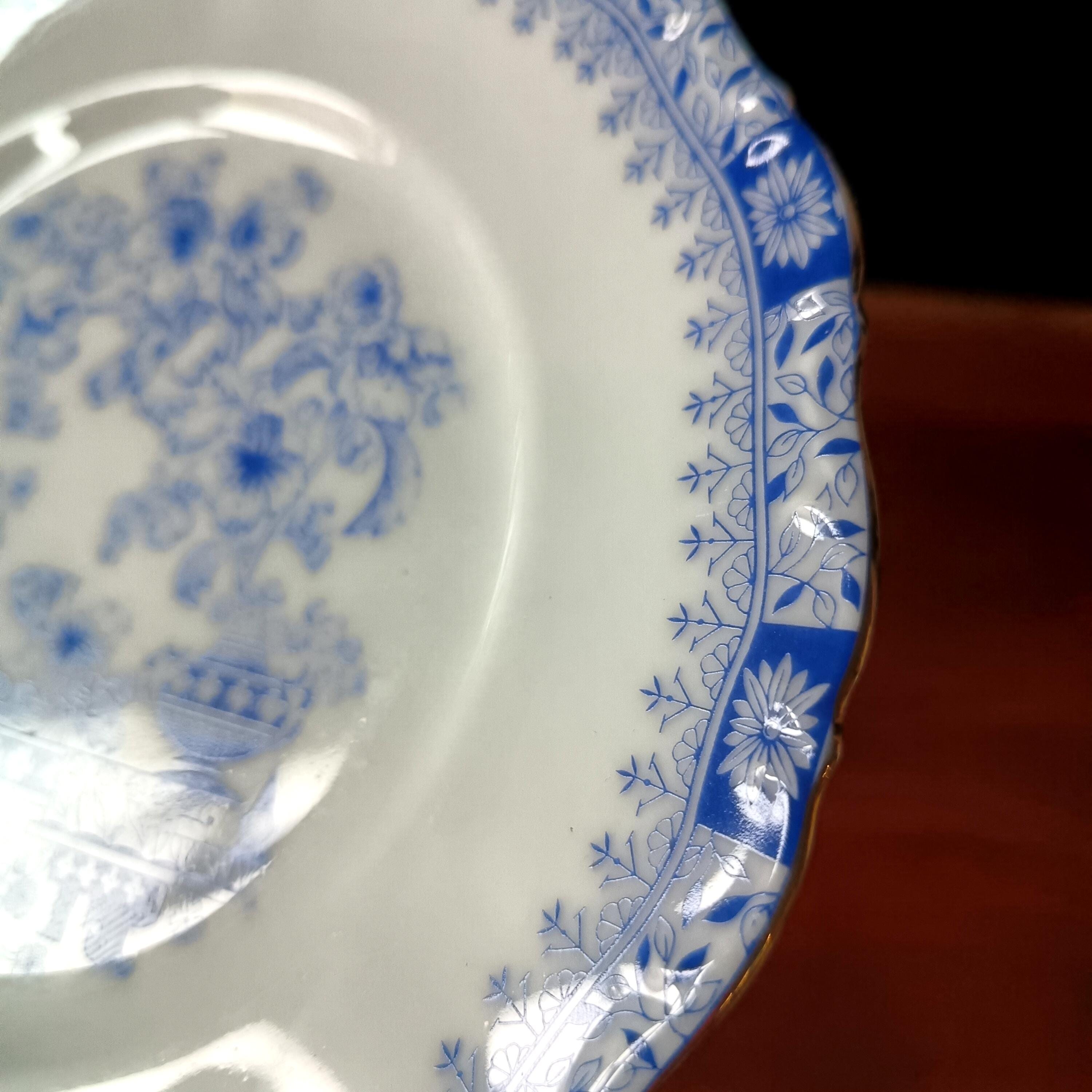 The Theresia pattern is one of Seltmann's best-known designs. It is a classically inspired Baroque pattern executed in pristine white porcelain, here in a blue version (the same pattern exists in red).