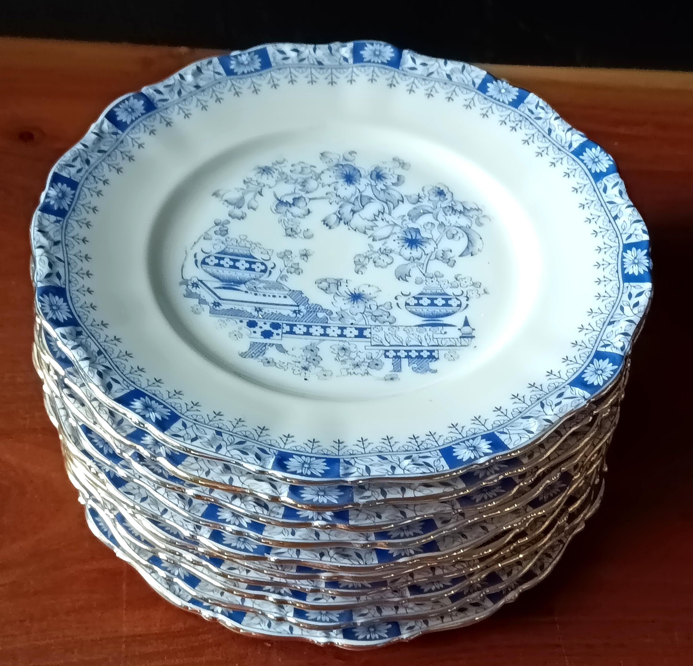 A lovely service consisting of a cake stand and 10 vintage porcelain dessert plates, made by Seltmann Weiden in Bavaria.