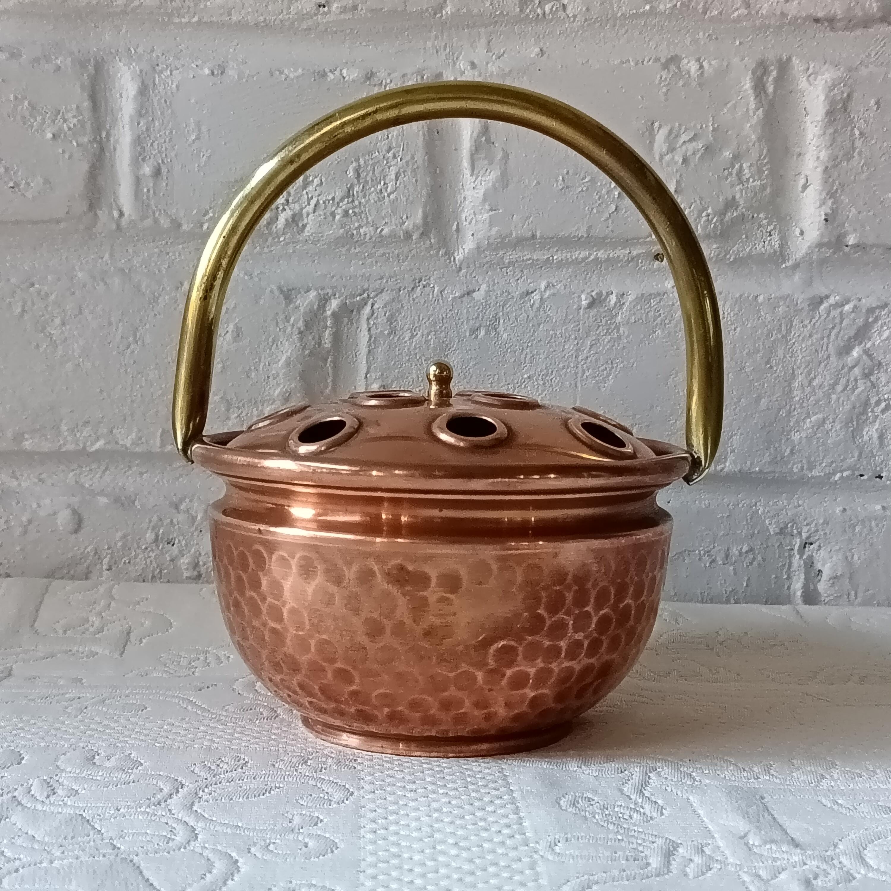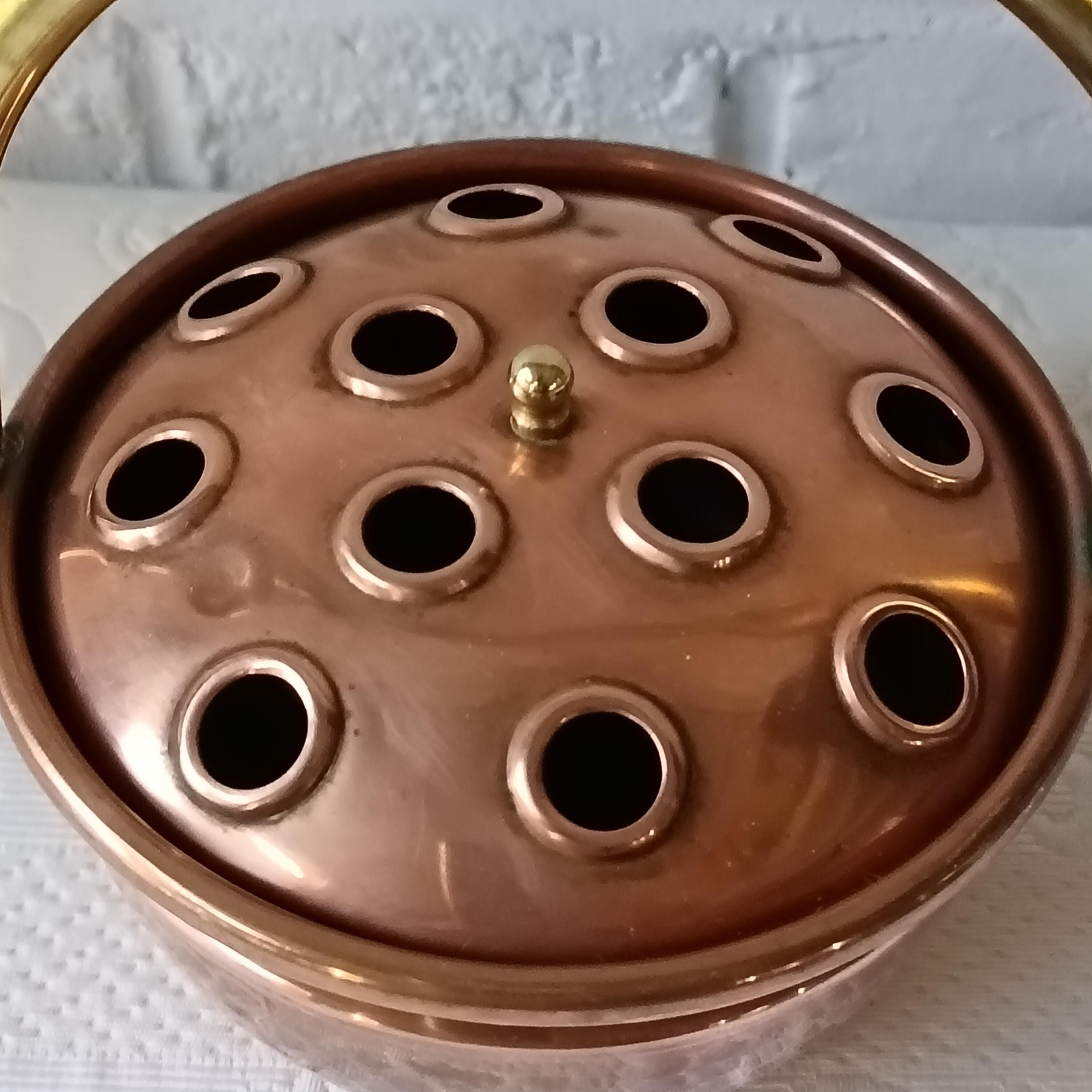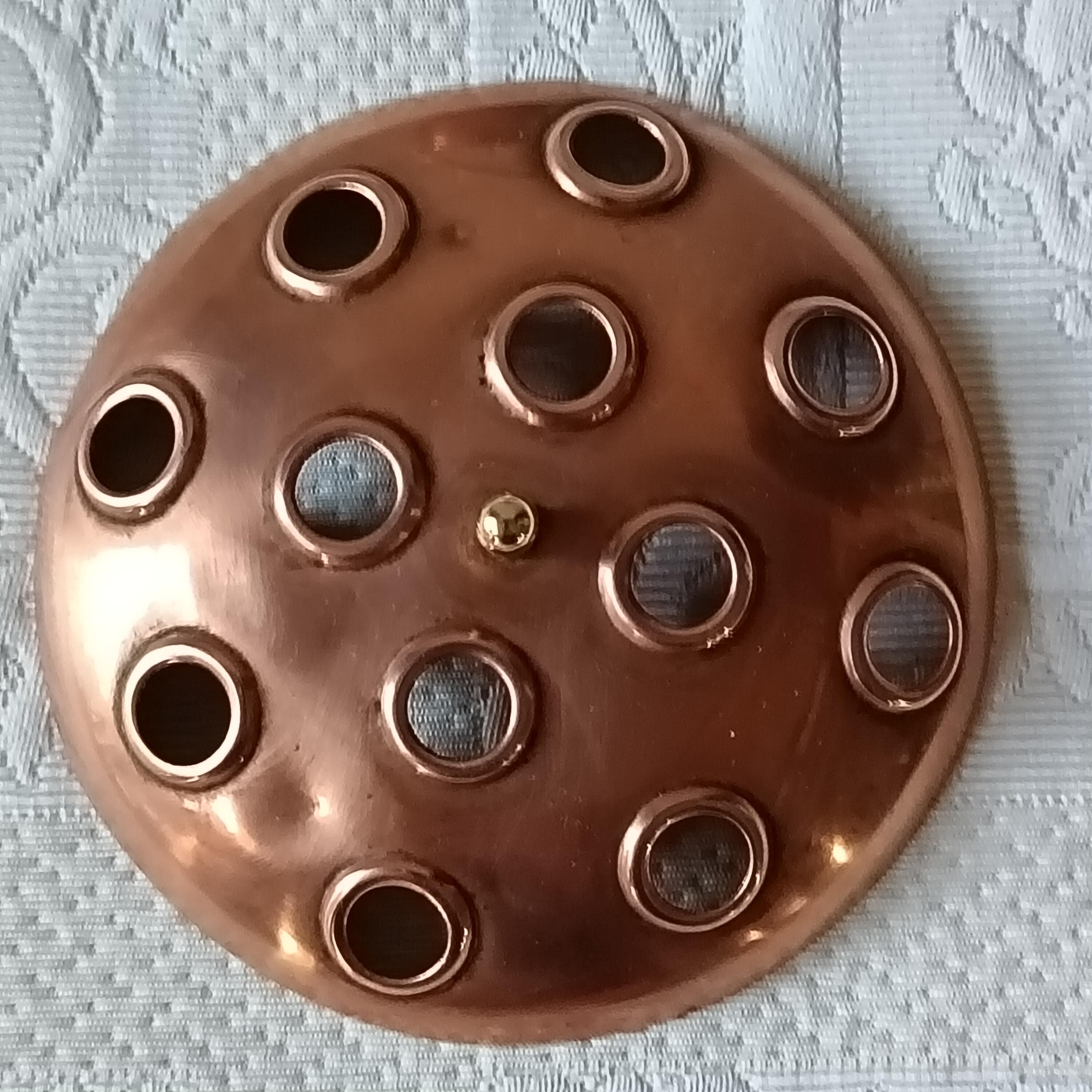 This copper and brass flower frog is perfect for displaying fresh or dried flowers. It can be used to create centerpieces and is therefore an eco-friendly alternative to foam flower frog blocks.