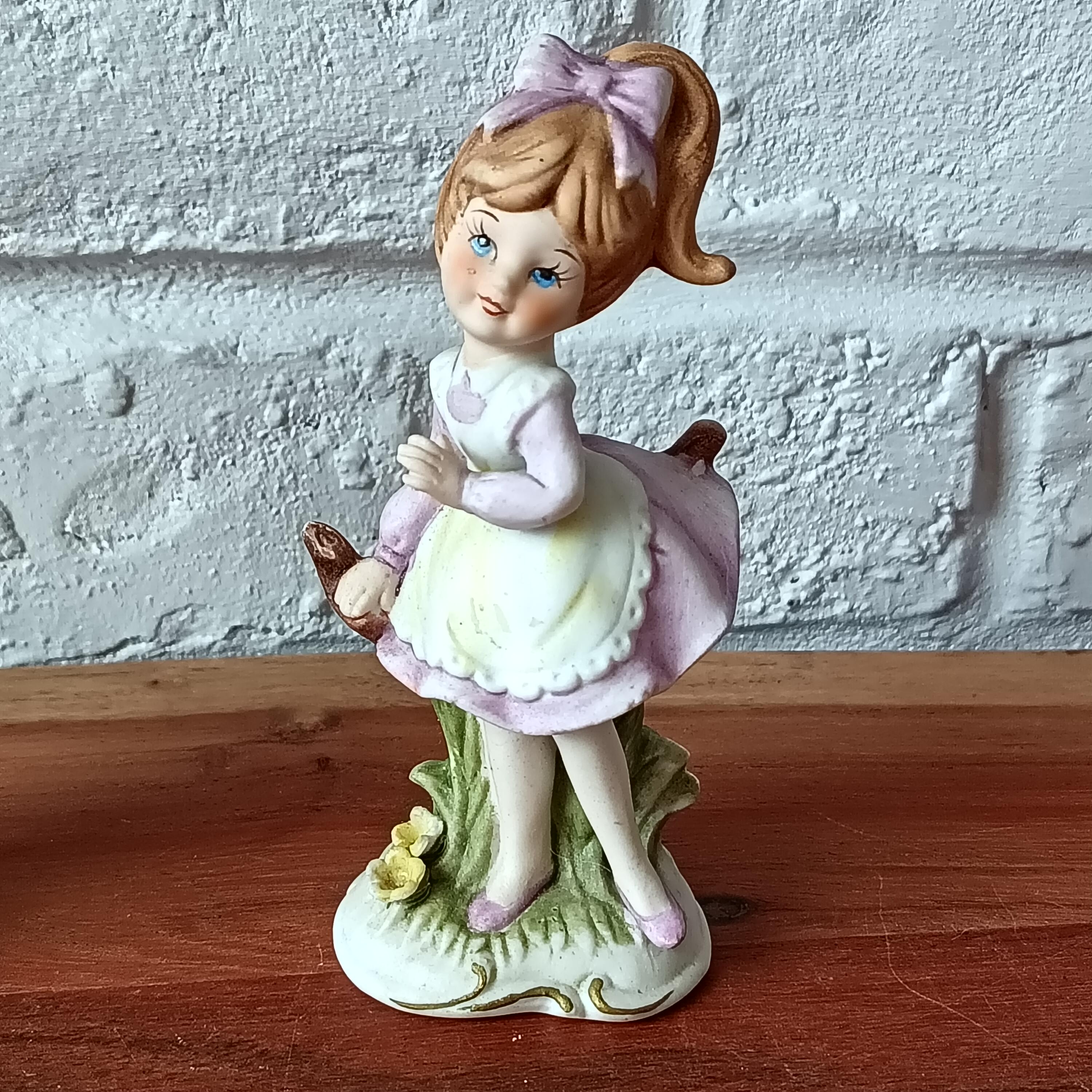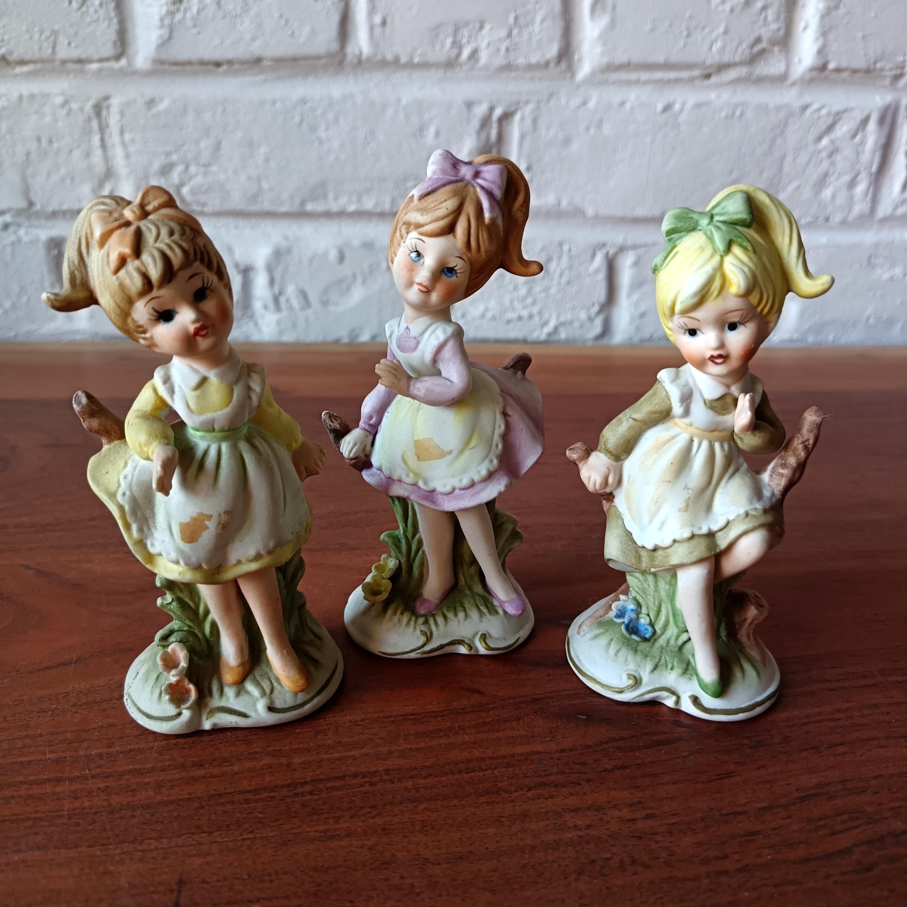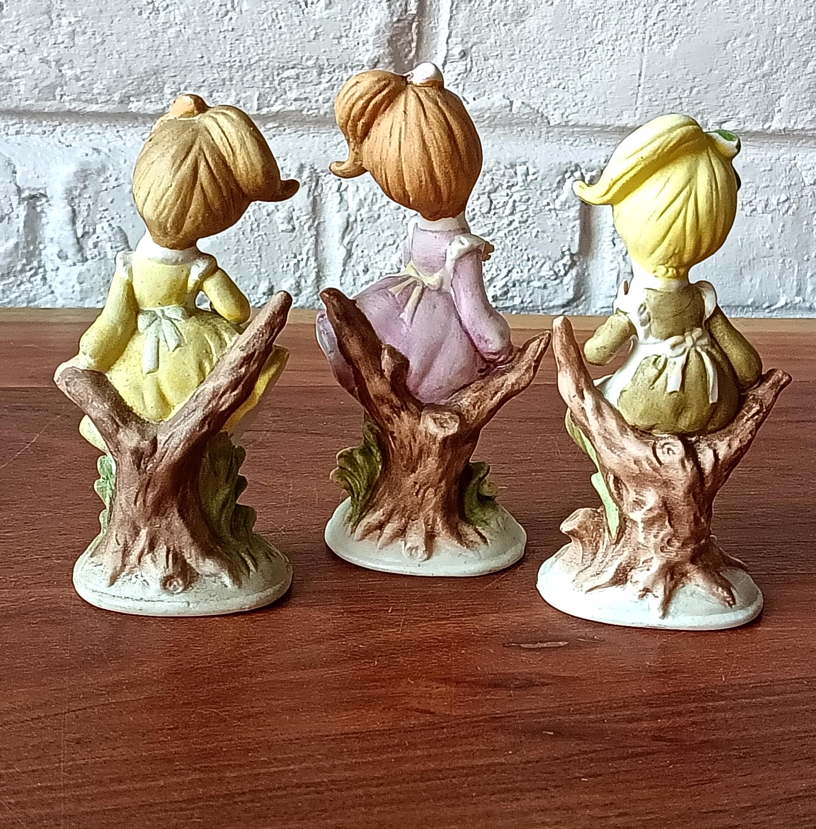 Charming set of 3 little girls, in bisque ceramic, in soft colors.