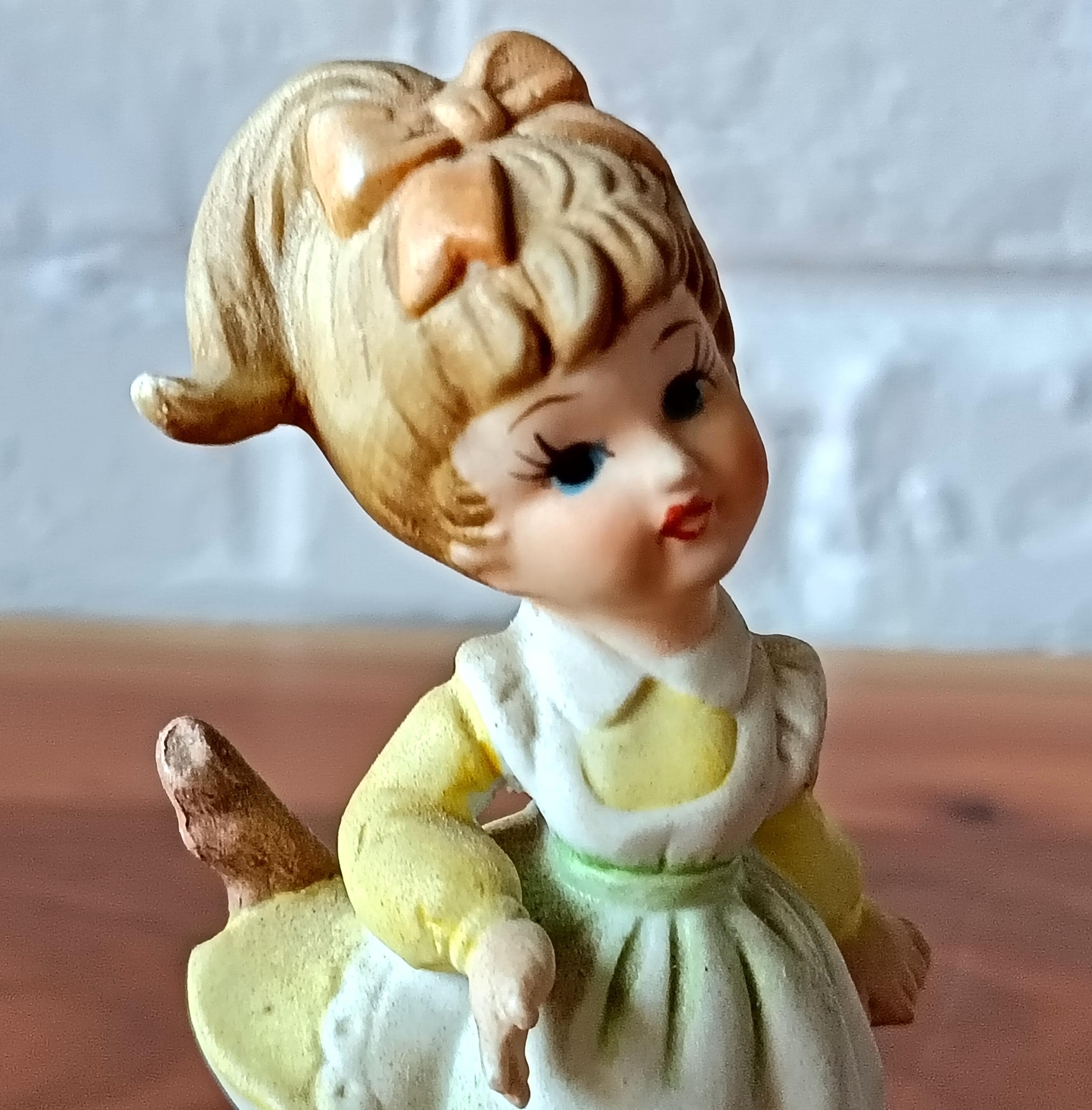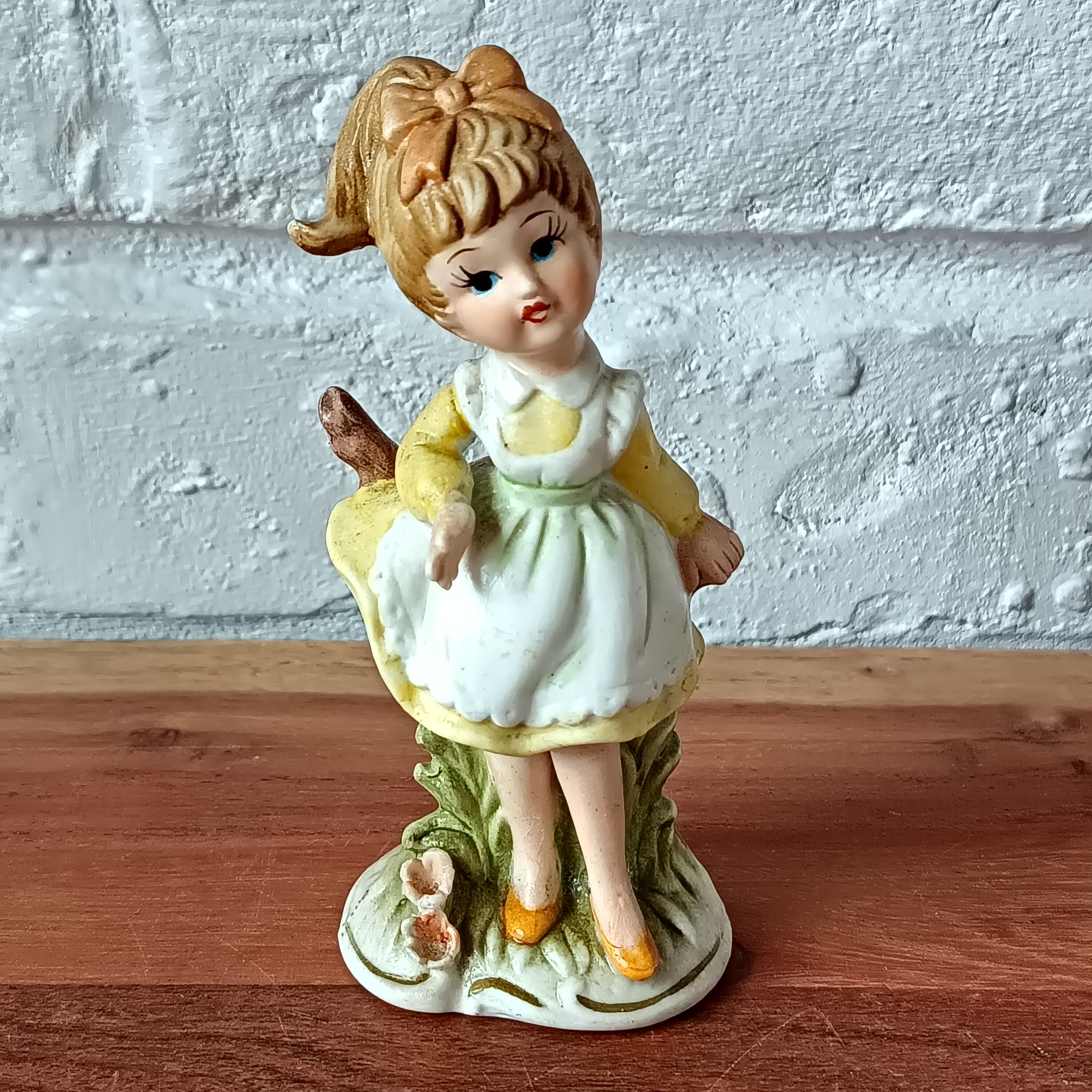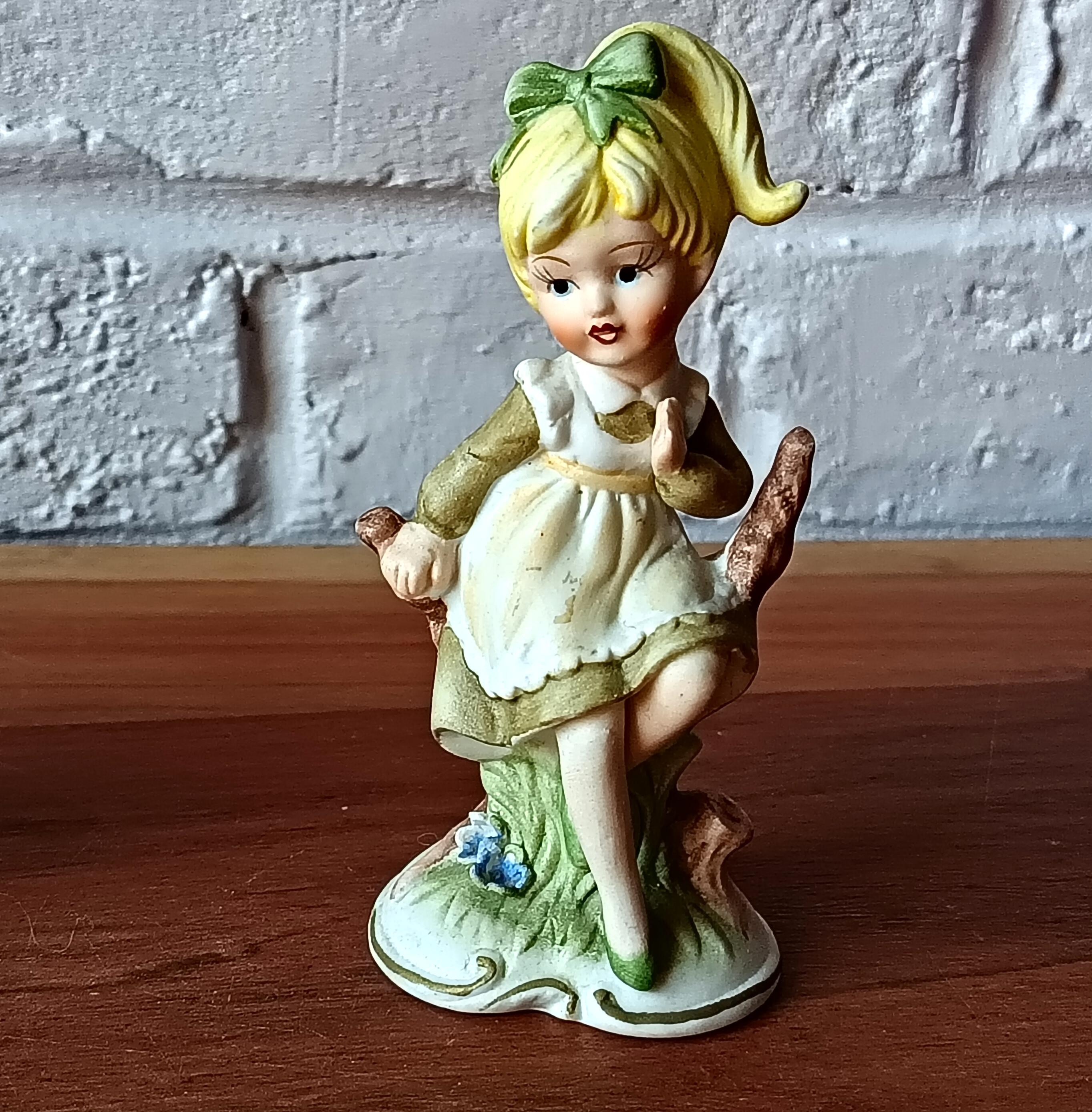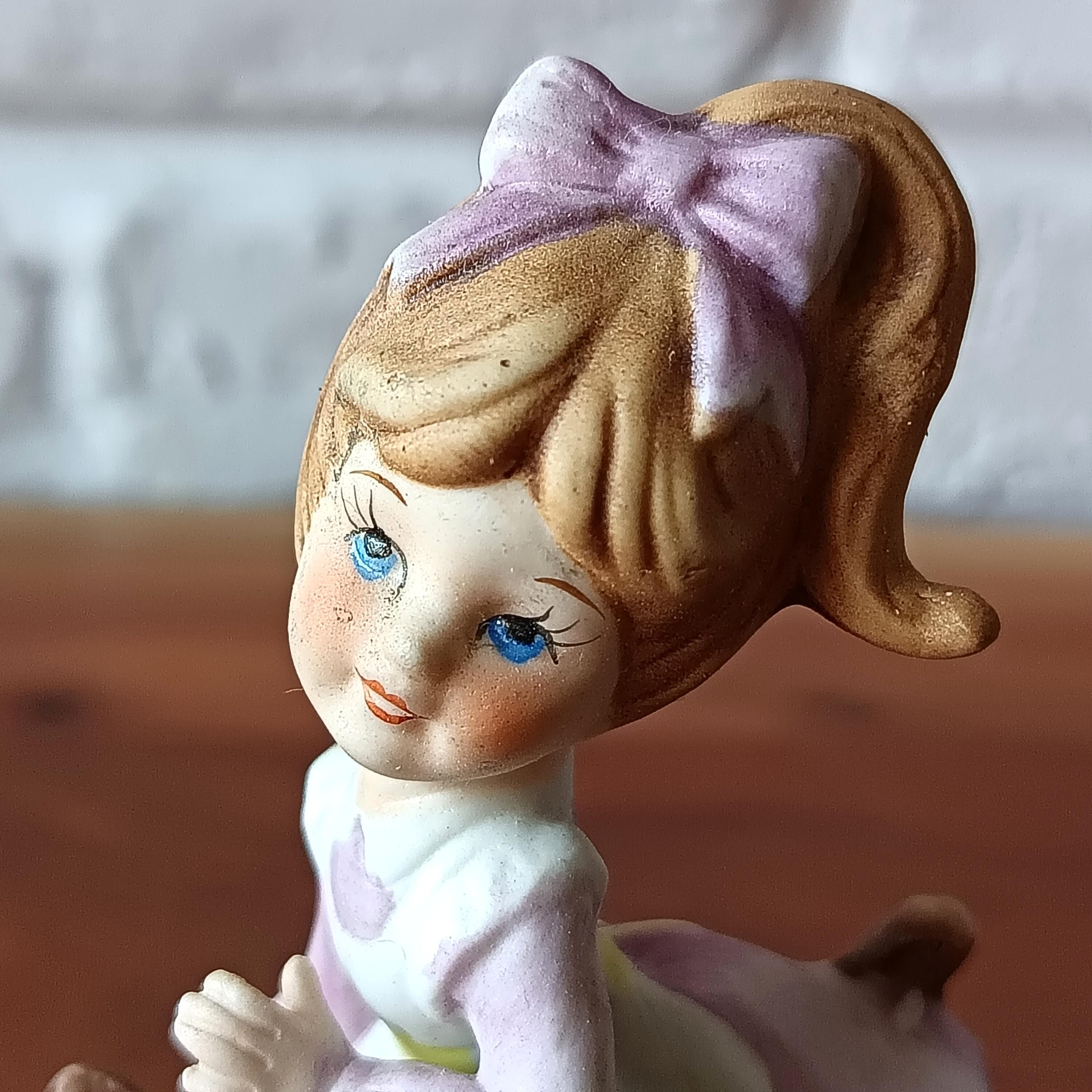 Charming set of 3 little girls, in bisque ceramic, in soft colors.