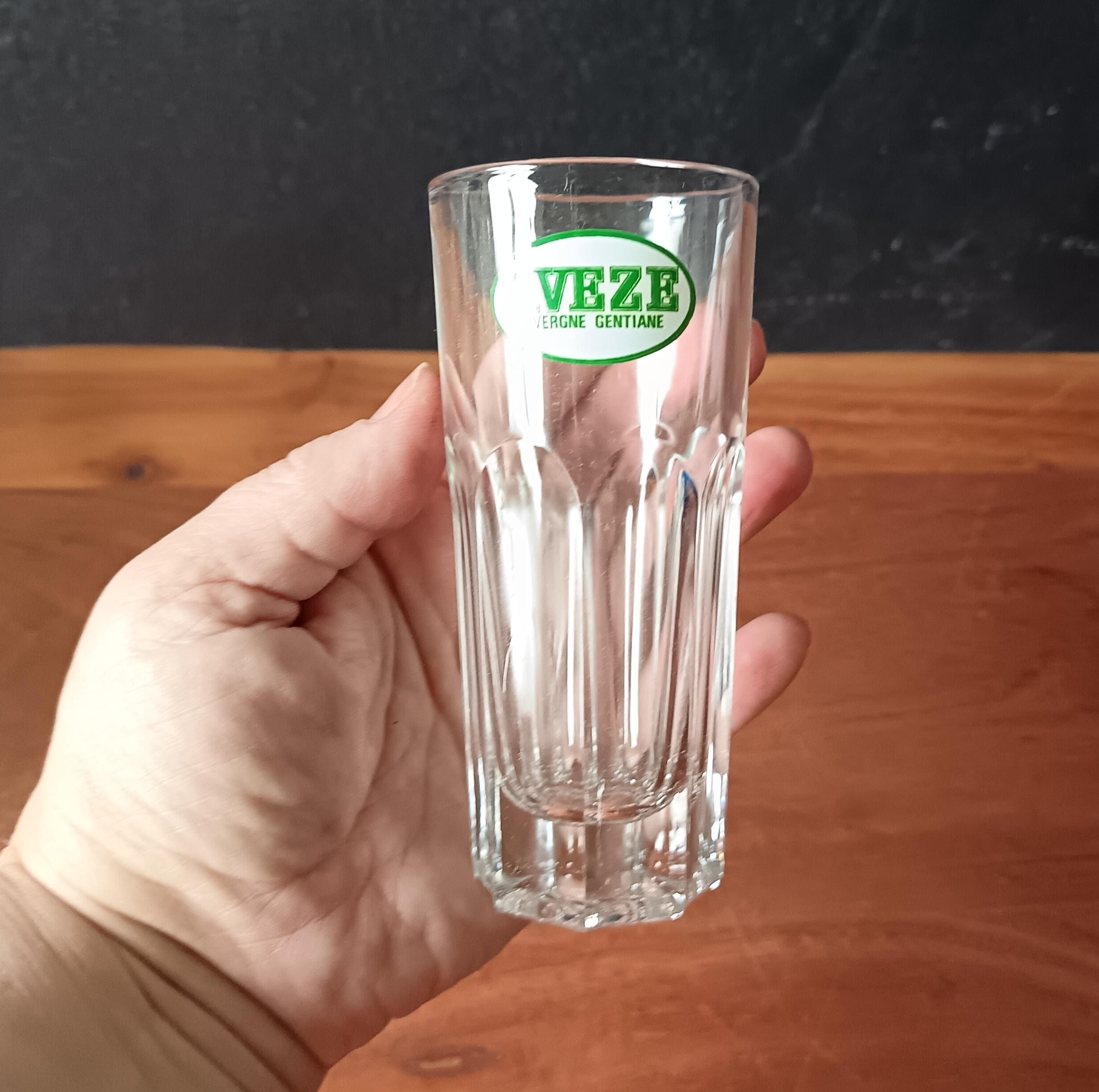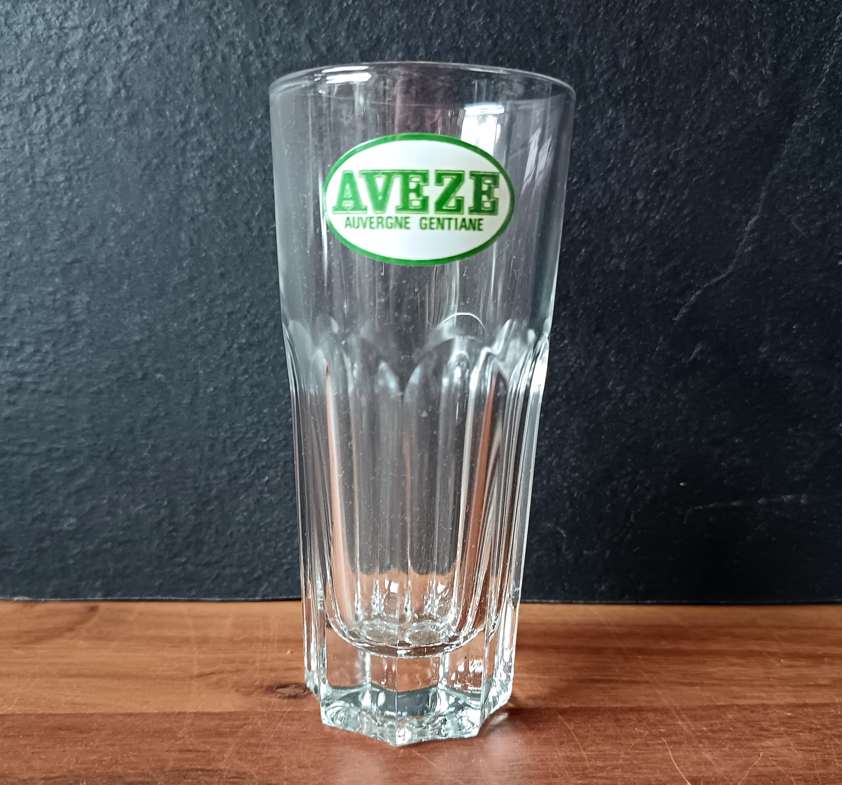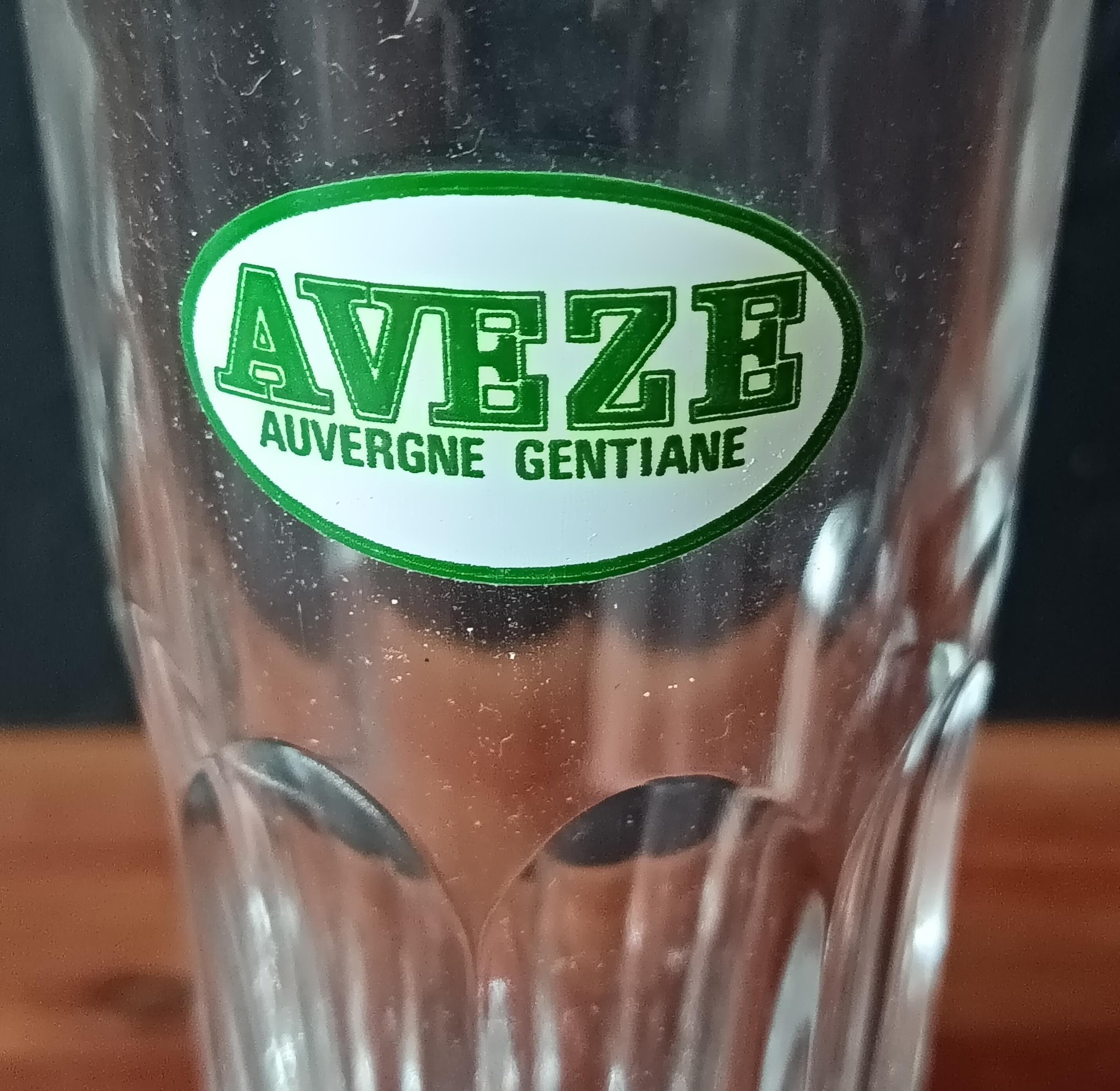 Set of 2 Aveze glasses, gentian liqueur made in Auvergne, France, 1970/80.