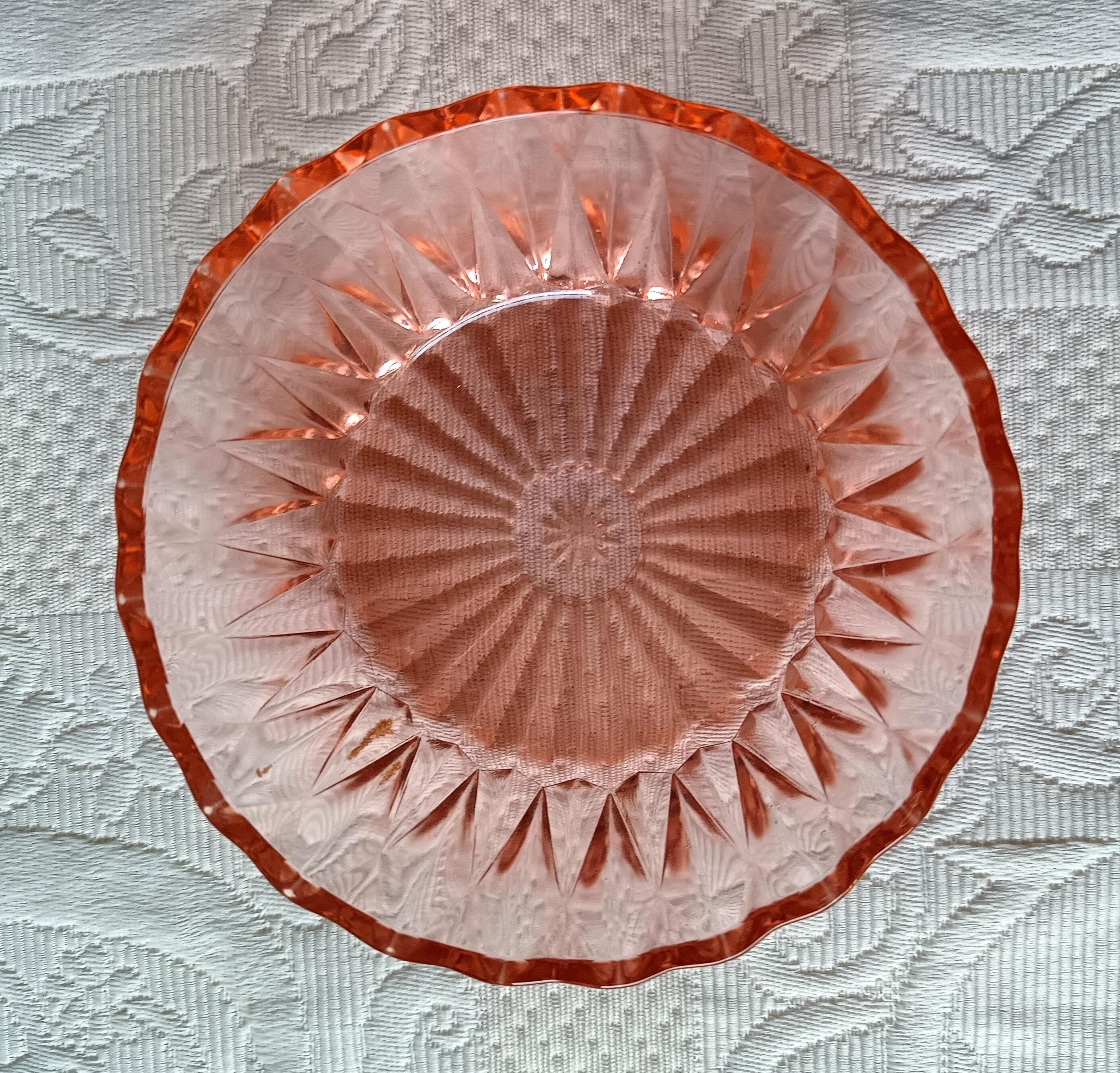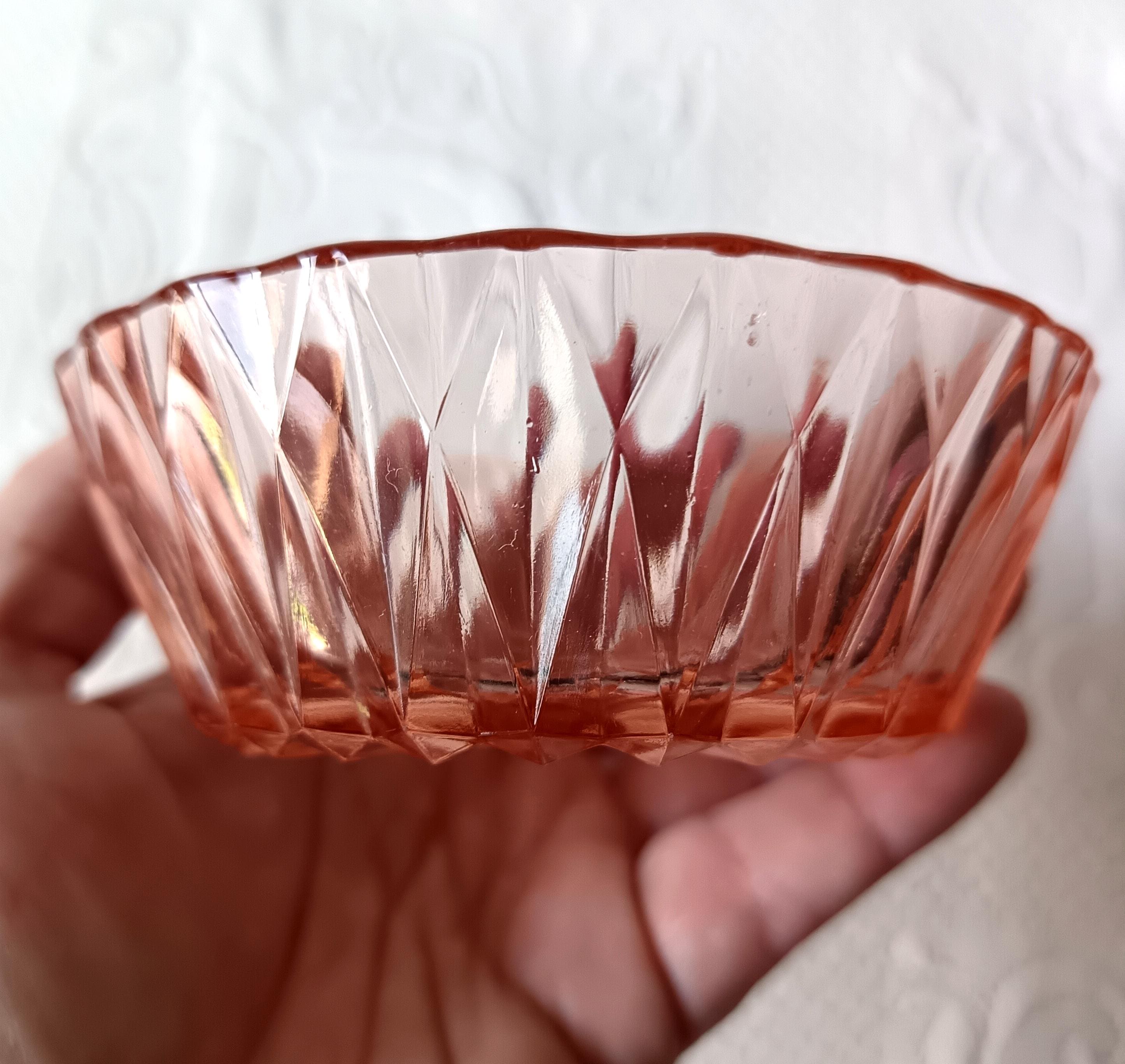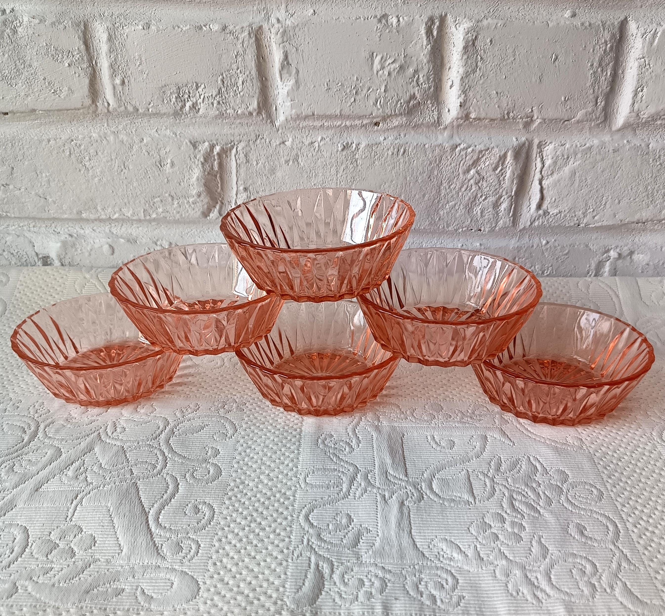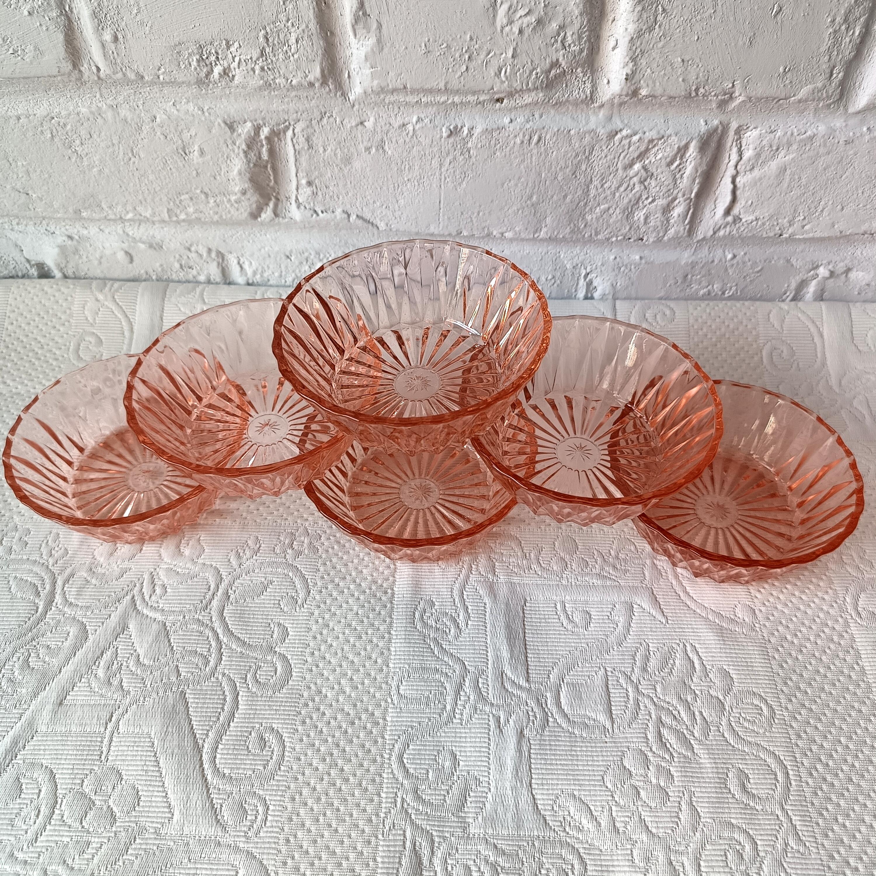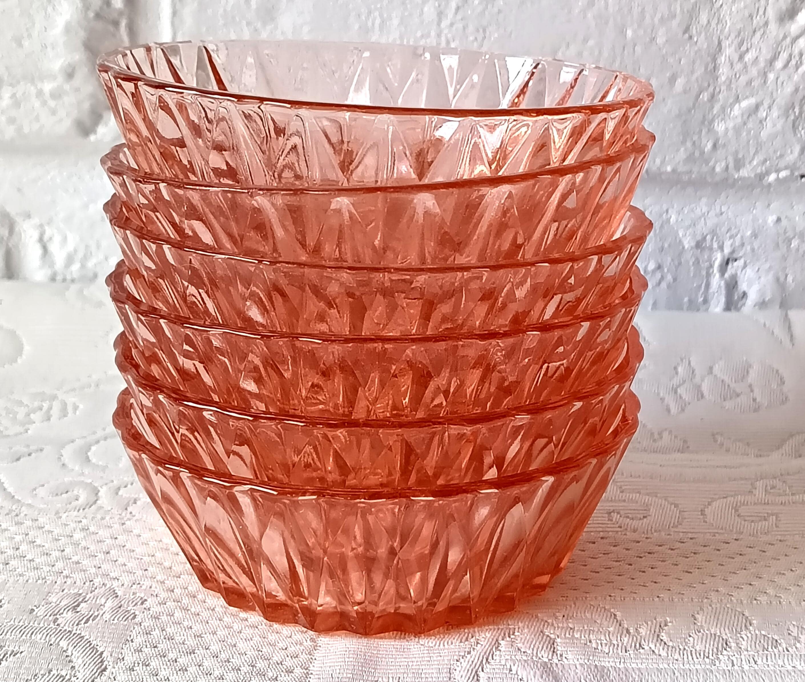 These dessert bowls, in a pretty pink pressed glass, will be perfect for a girly, shabby chic table...