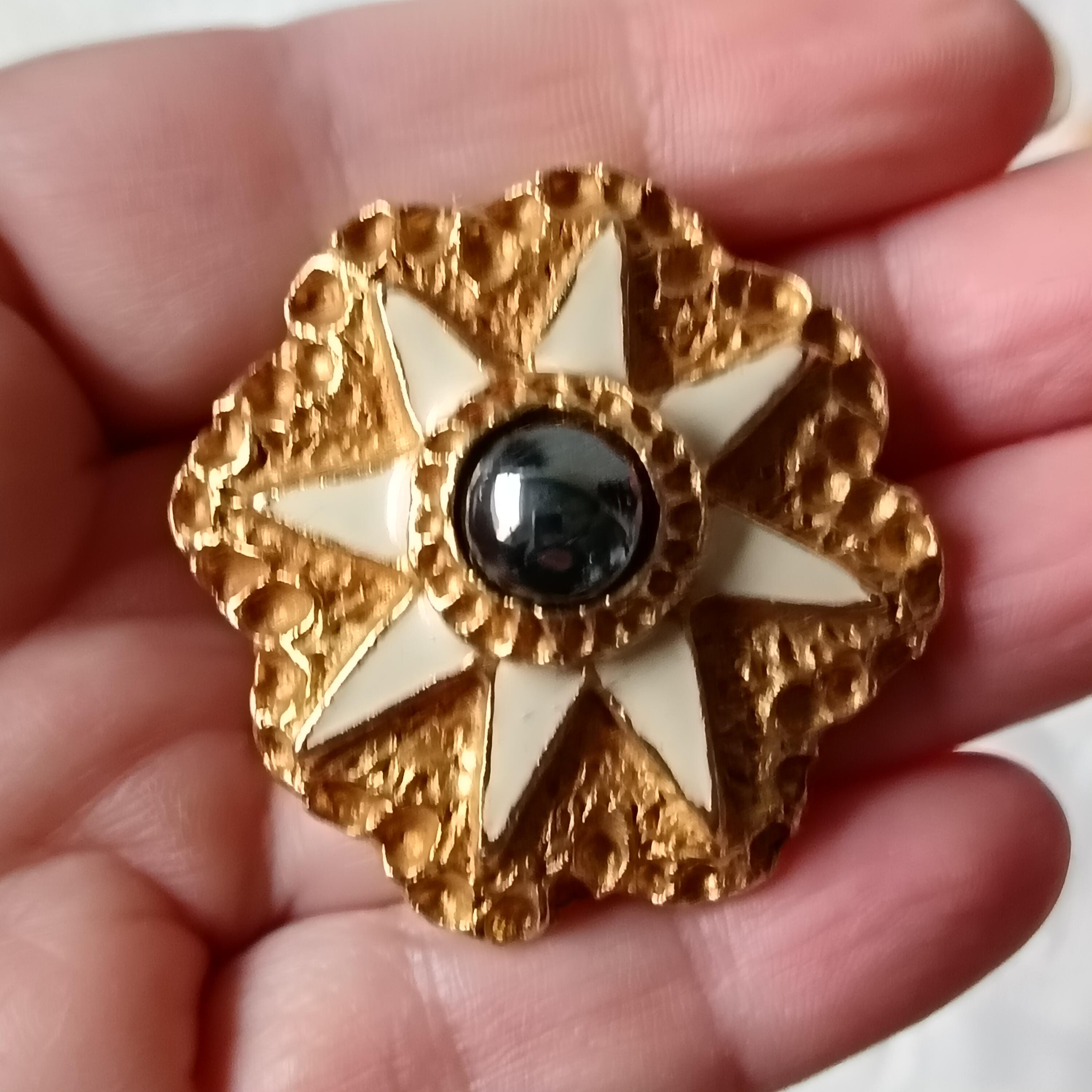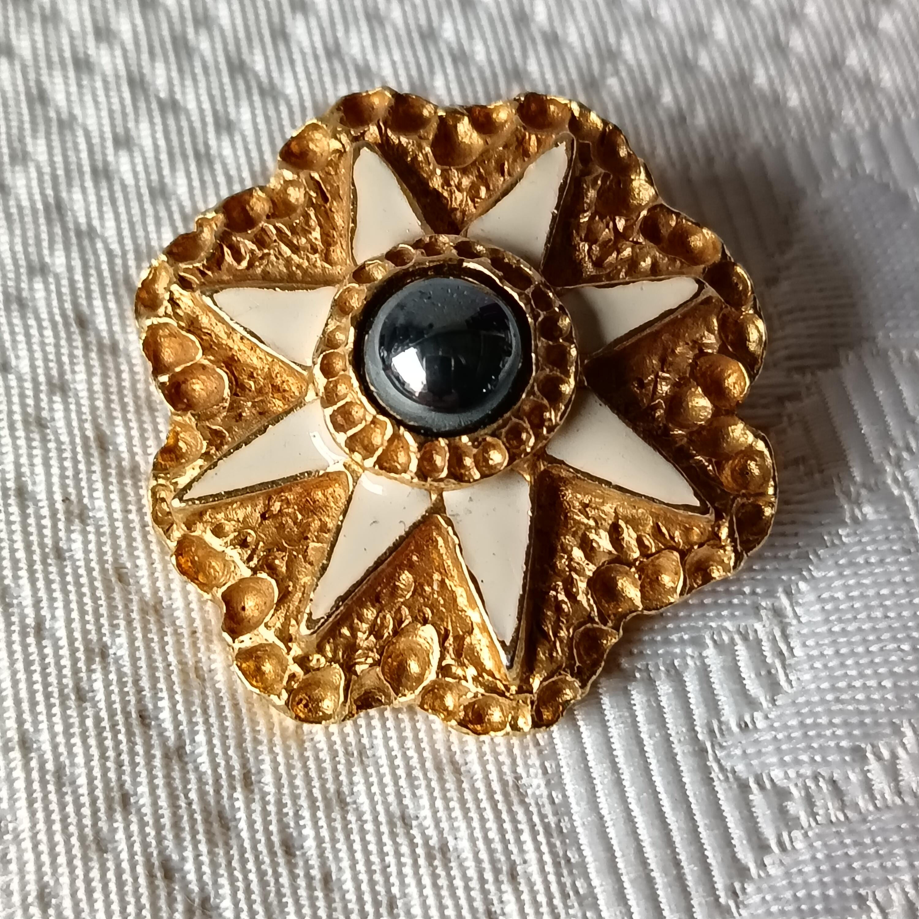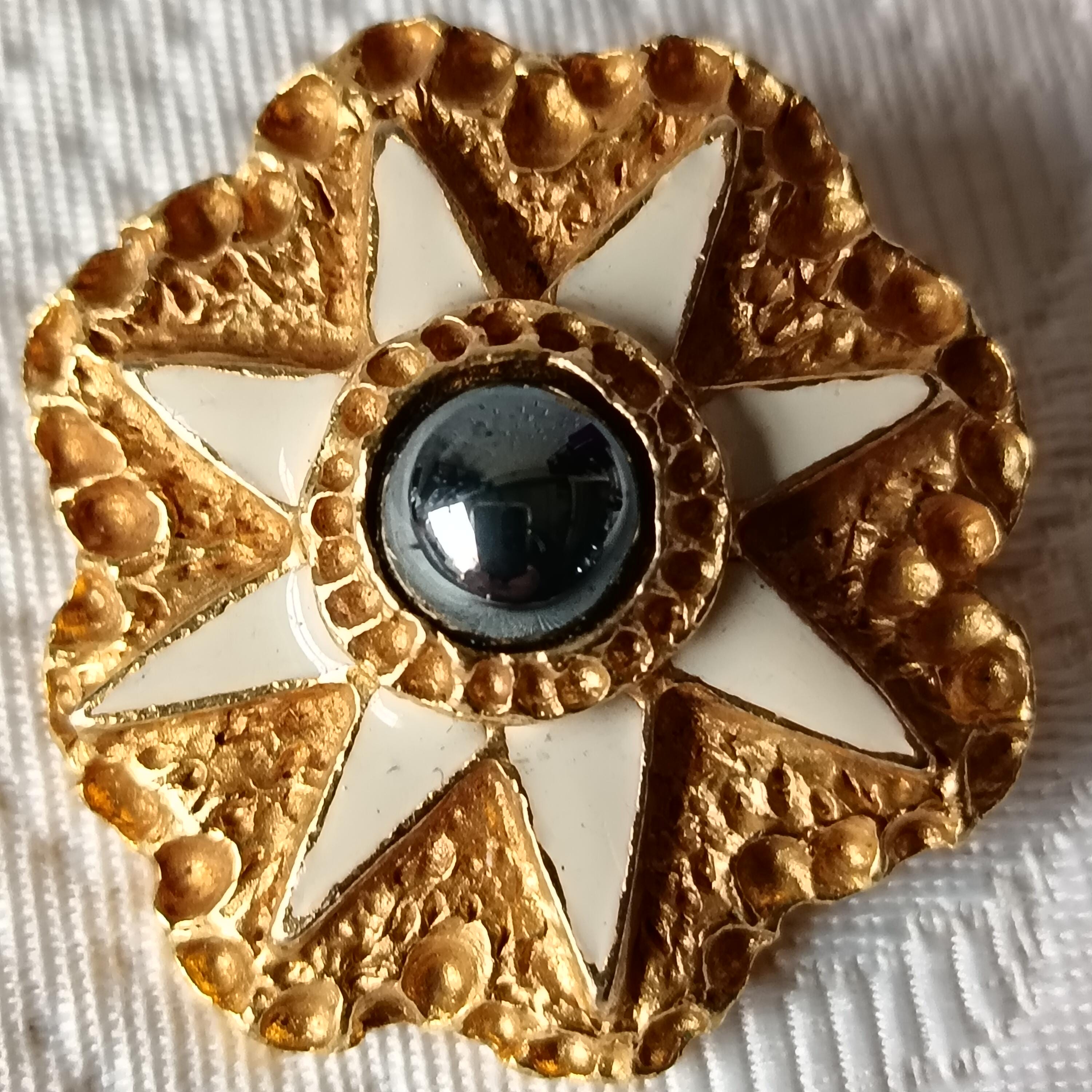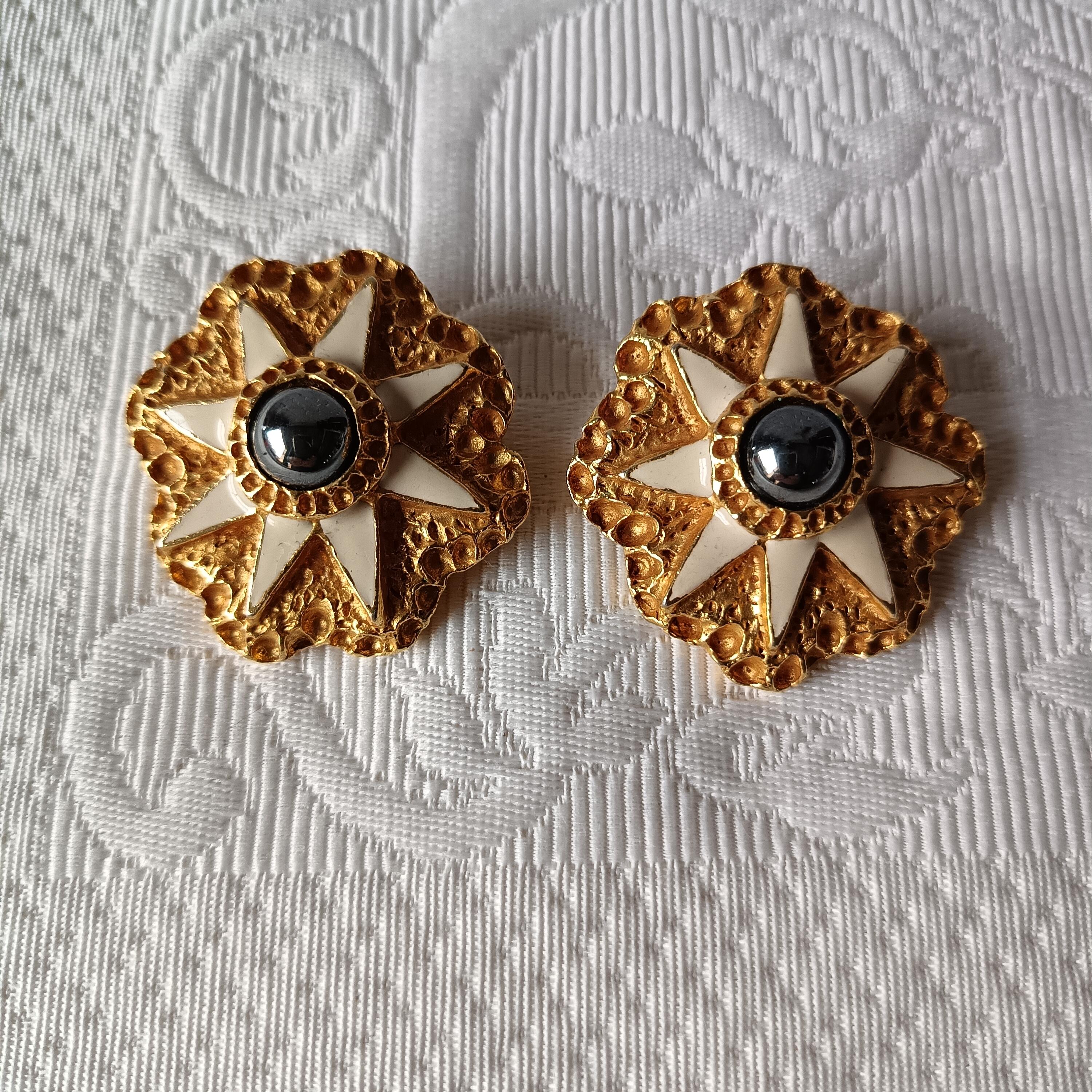 Boucles d'oreilles étoile en émail blanc et plaqué or, édition limitée Christian Lacroix Paris, collection 1994.