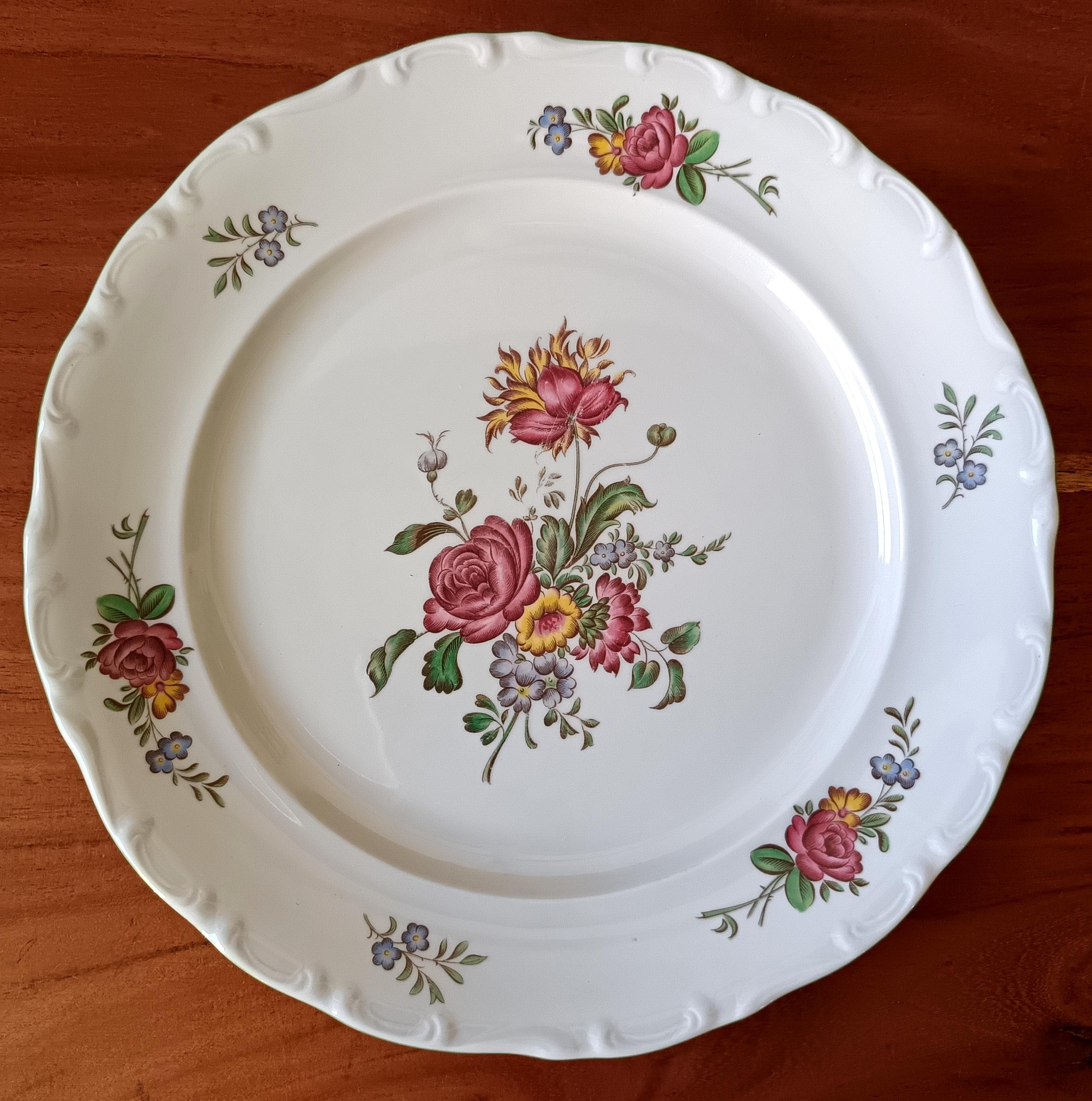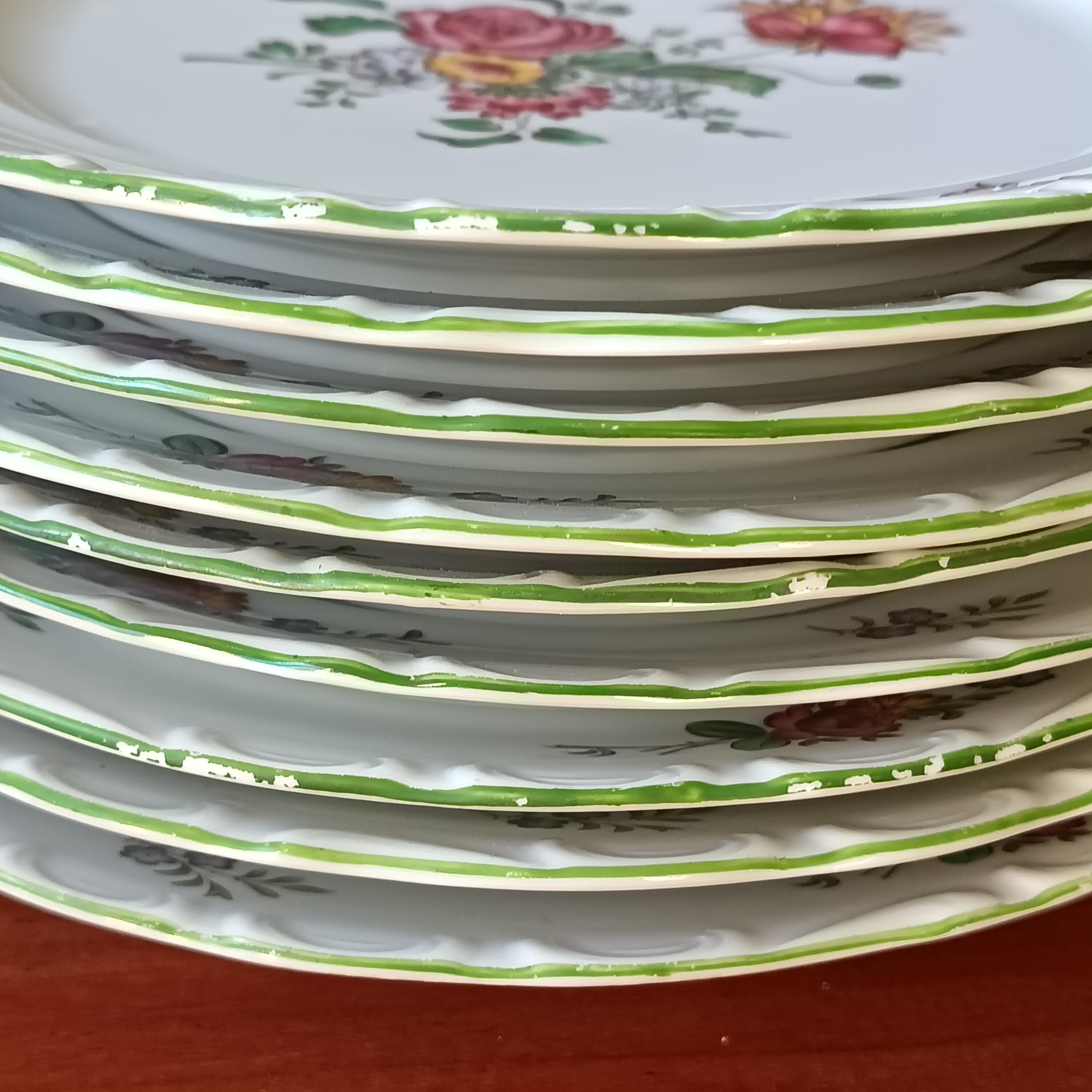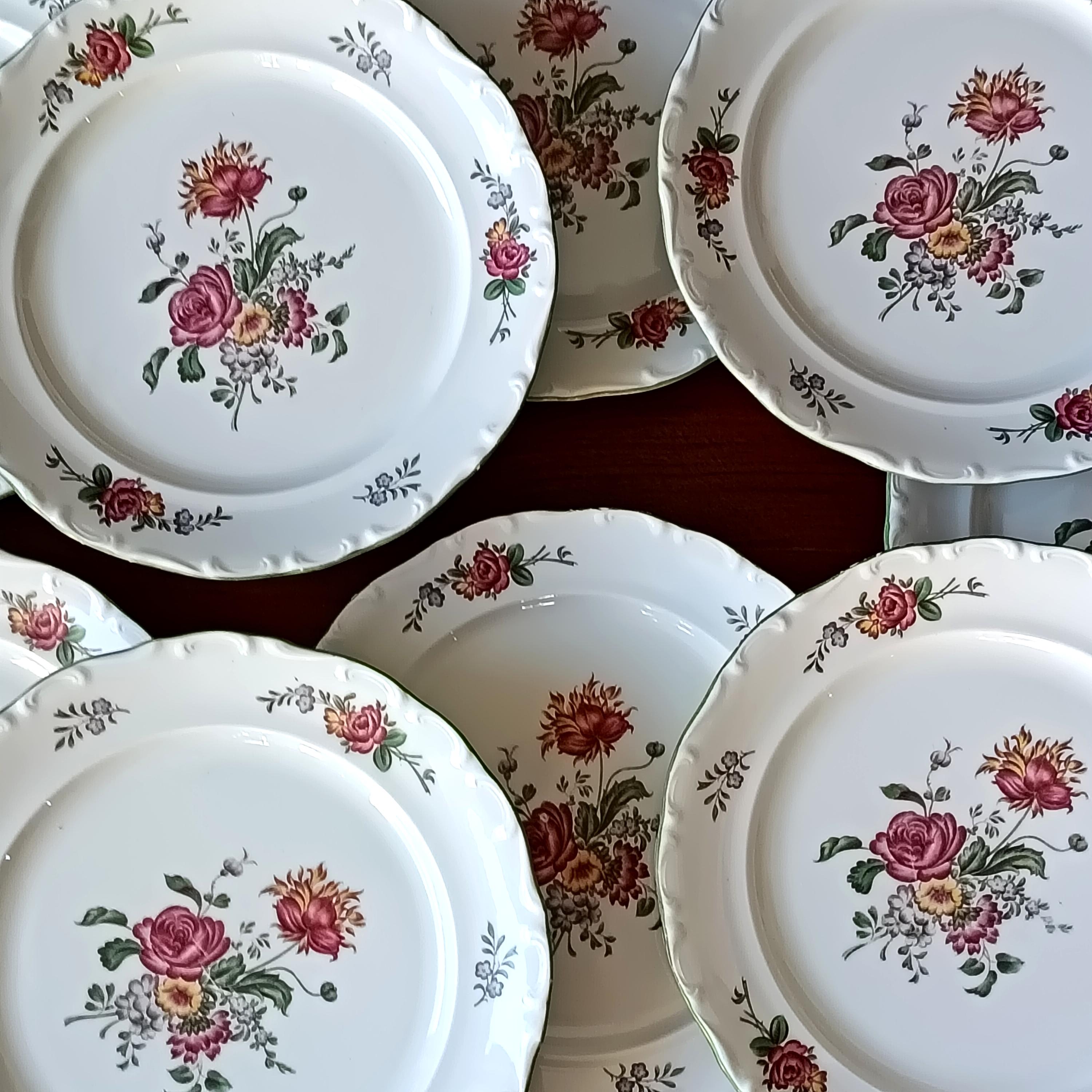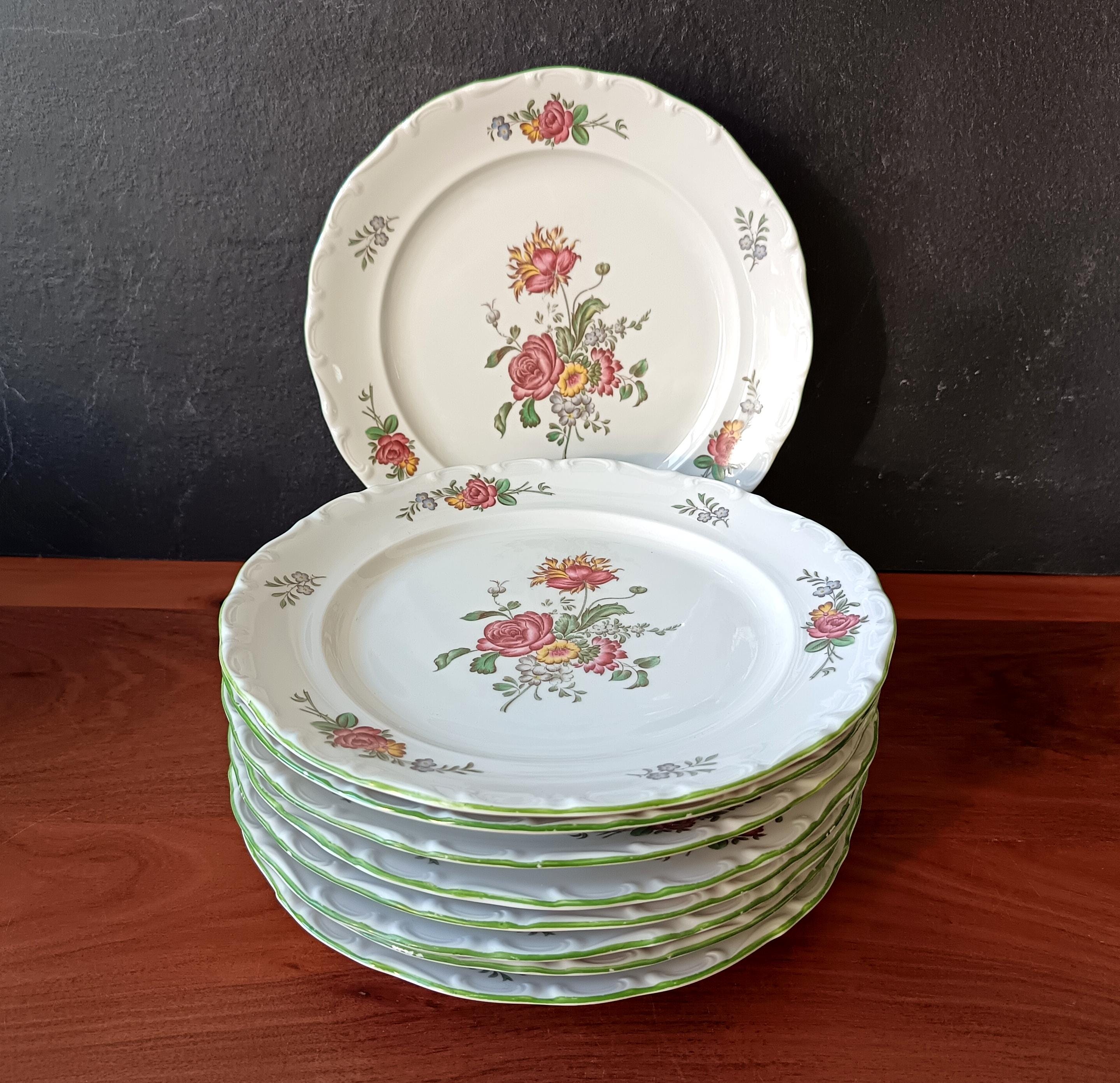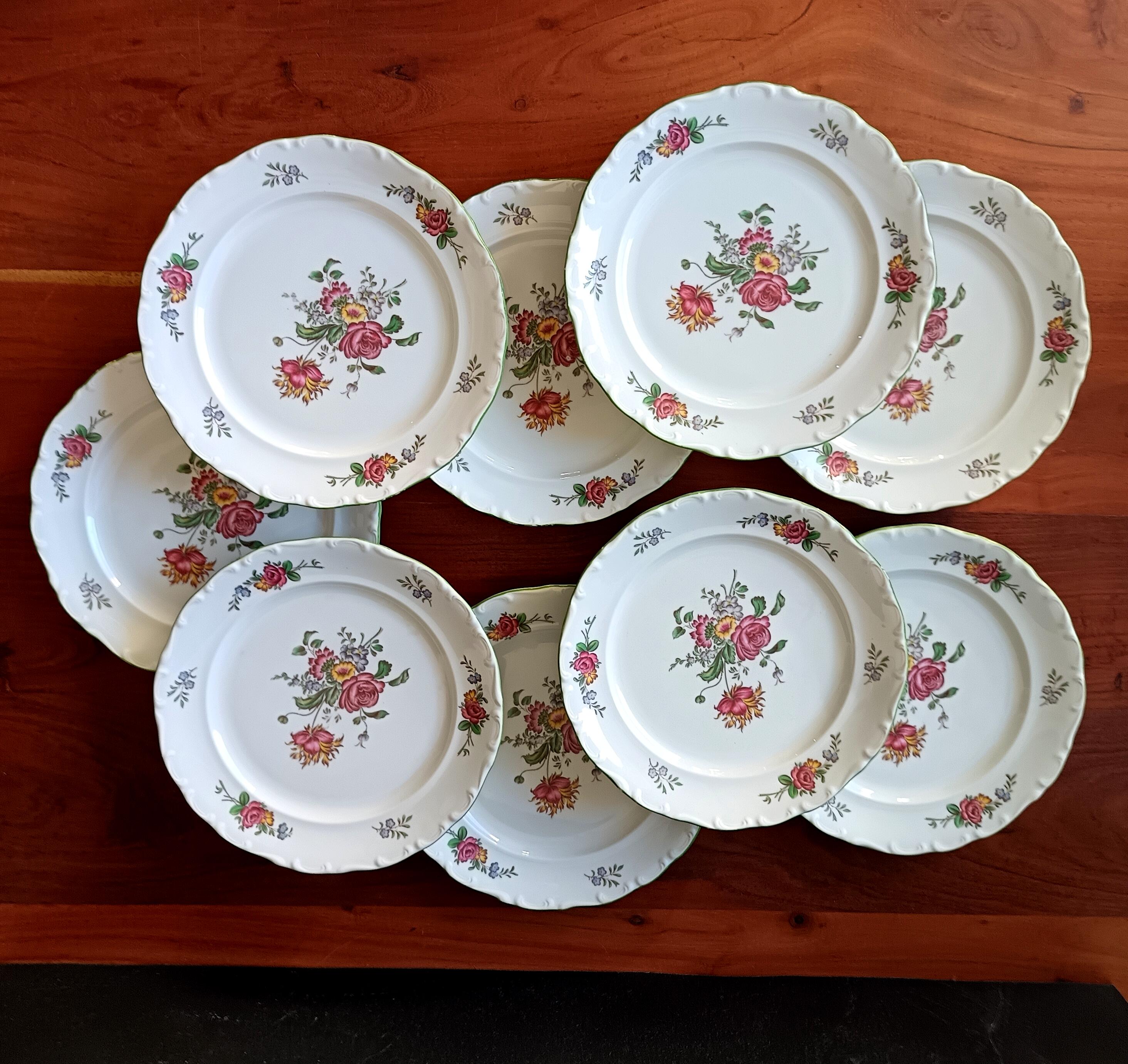9 vintage porcelain dinner plates, old Colmar pattern, from the Euro porcelain factory.