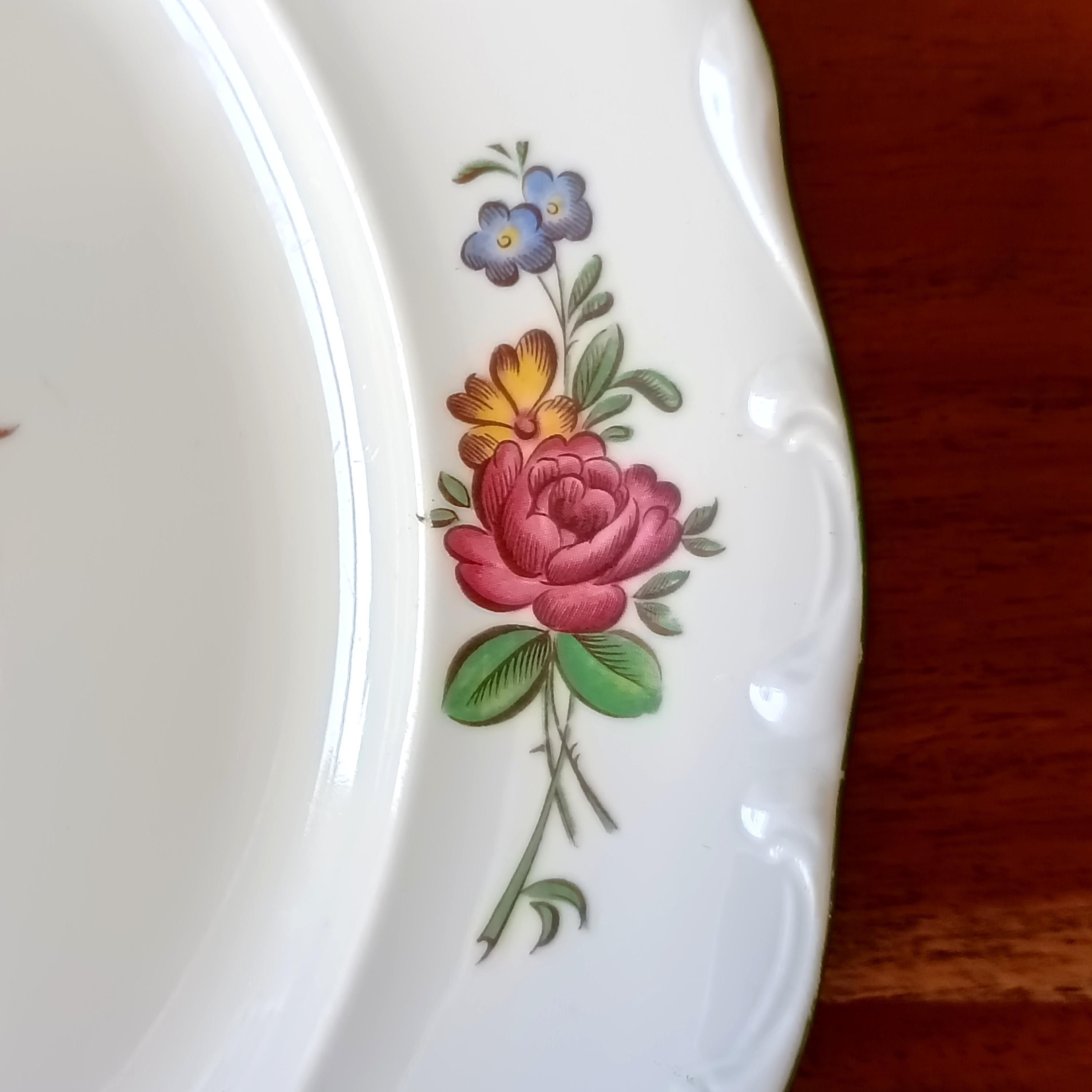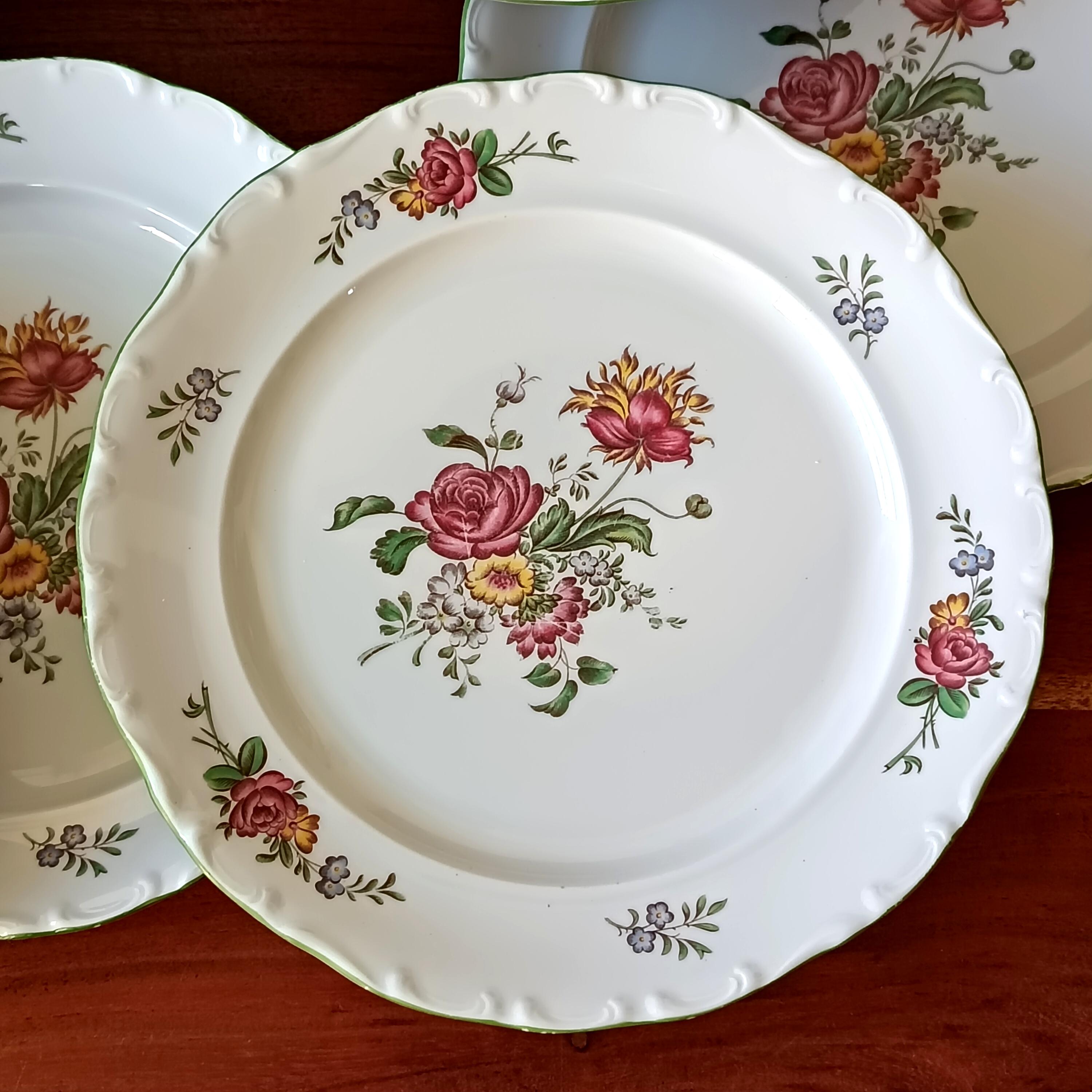 The plates have a very pretty design featuring a colorful floral composition in the center and some floral motifs on the rim.