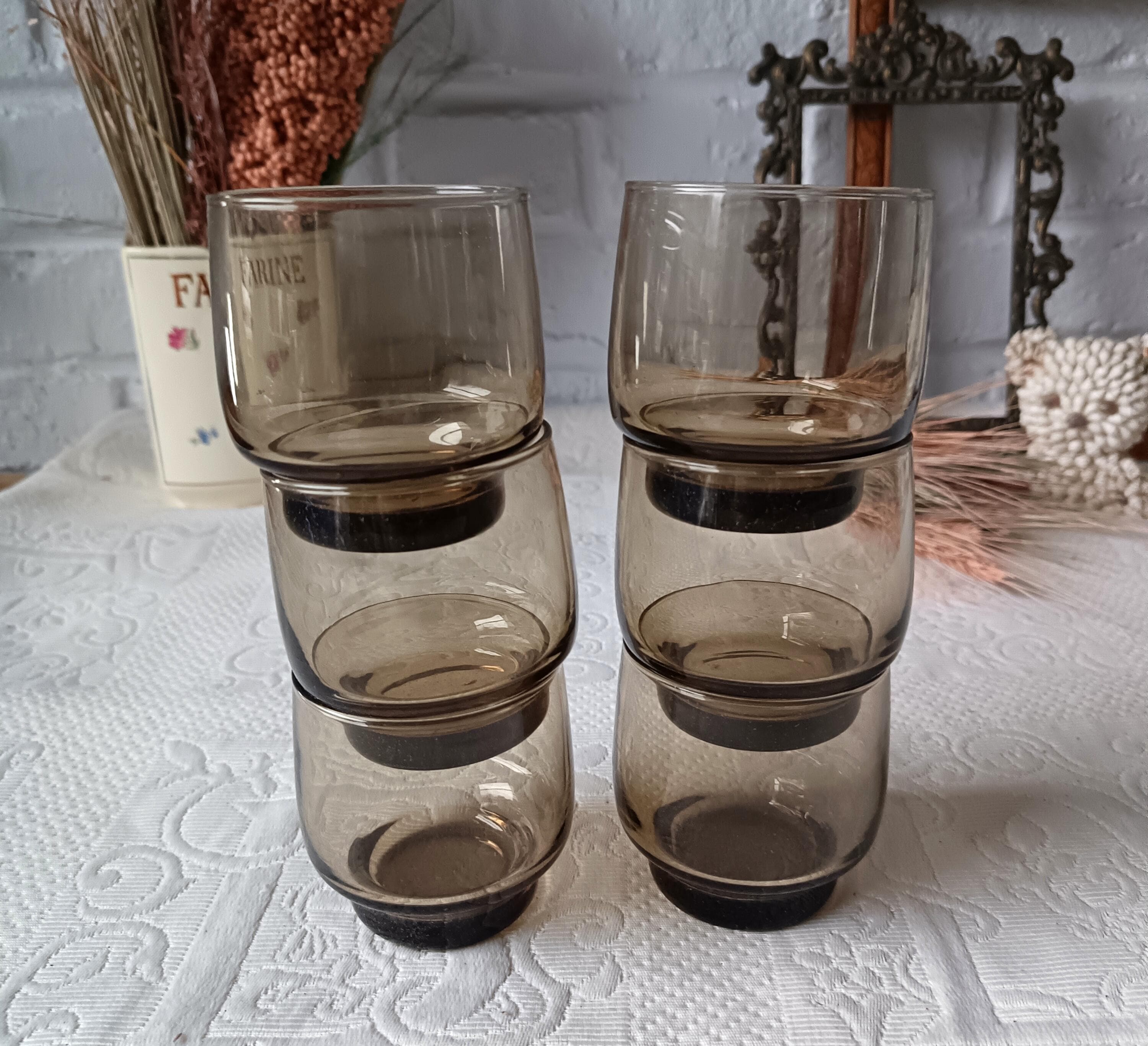 Set of vintage smoked glass water glasses from the 1970s/80s.