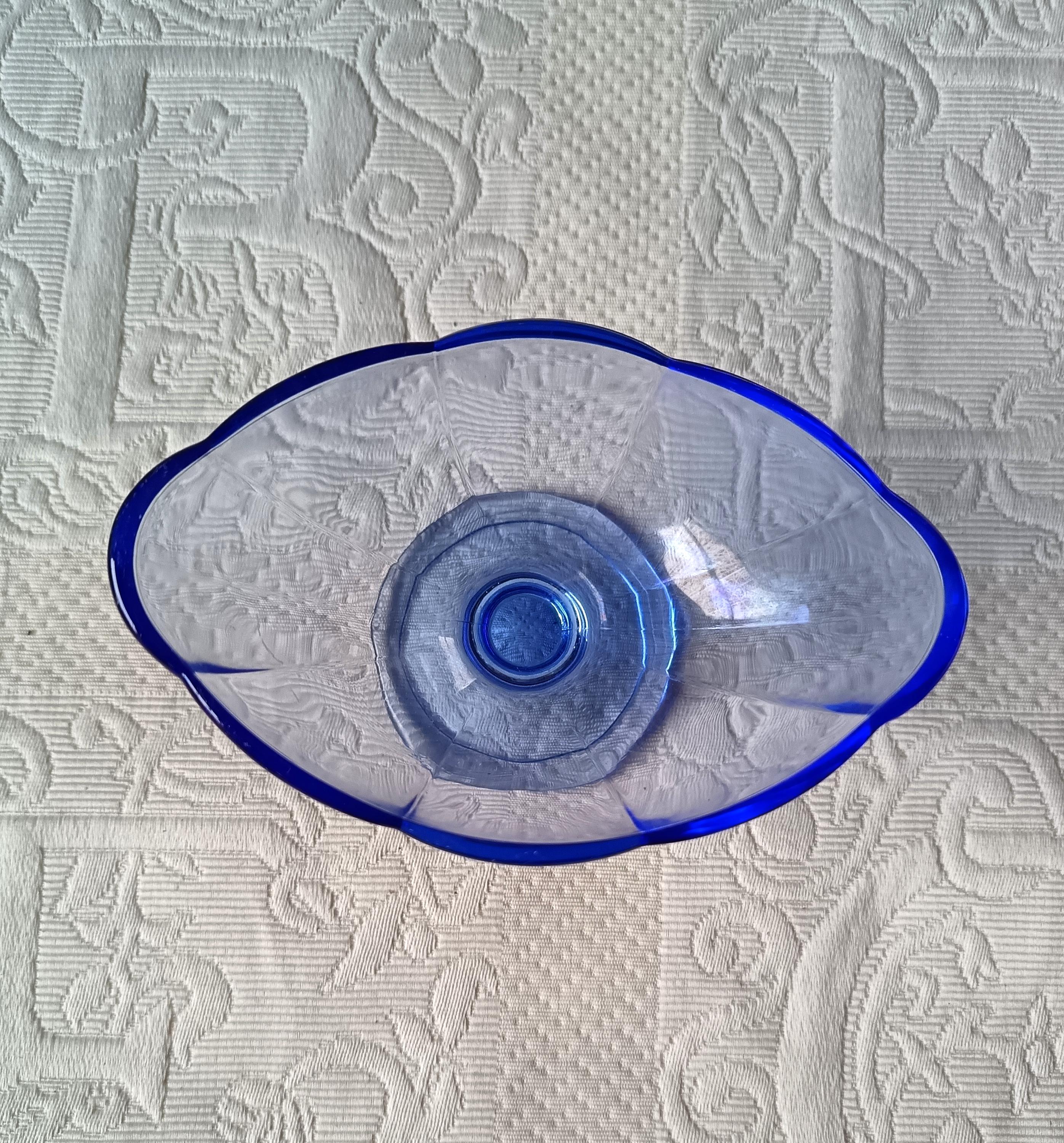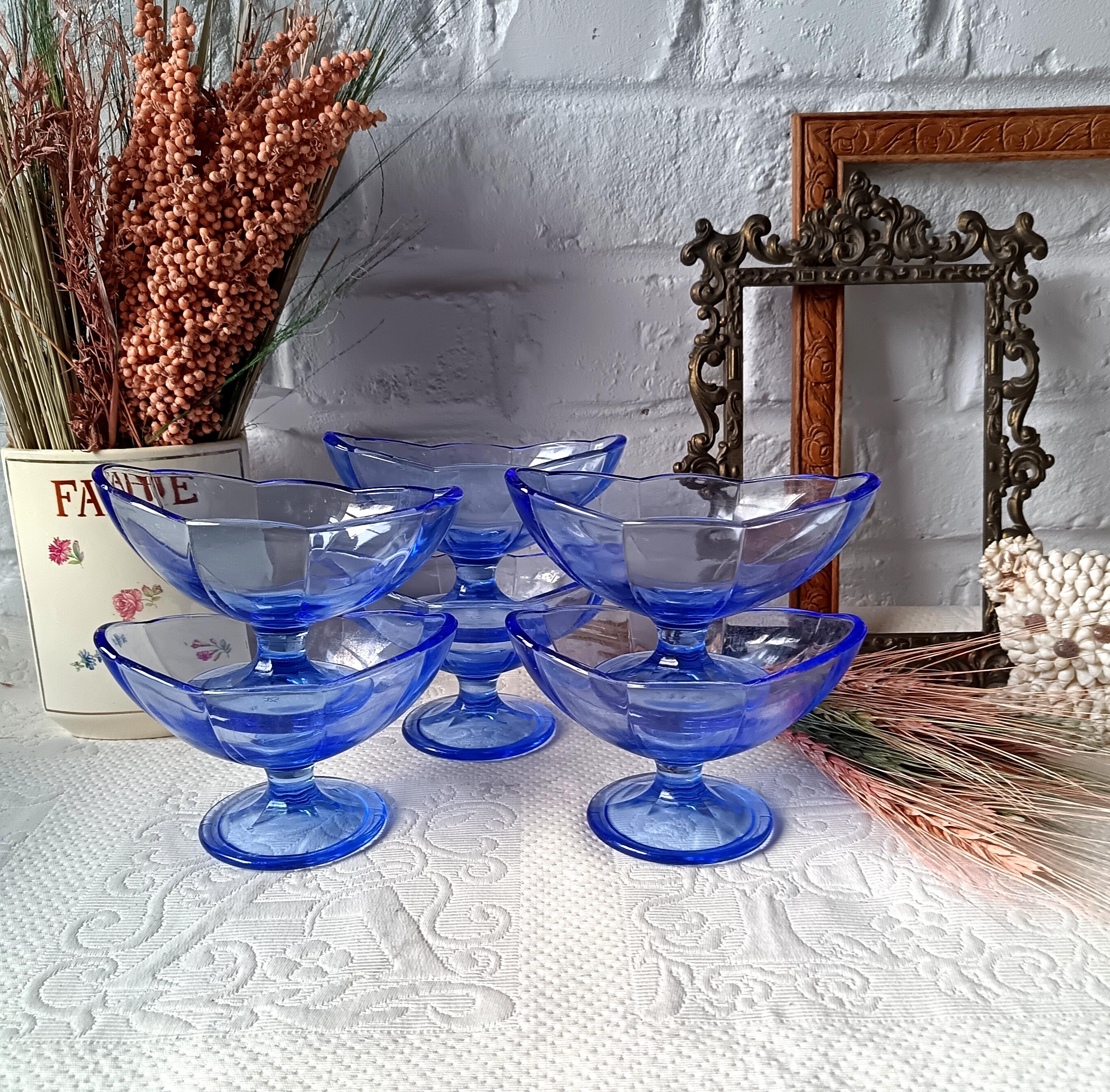6 small vintage ice cream cups, made of thick blue pressed glass.