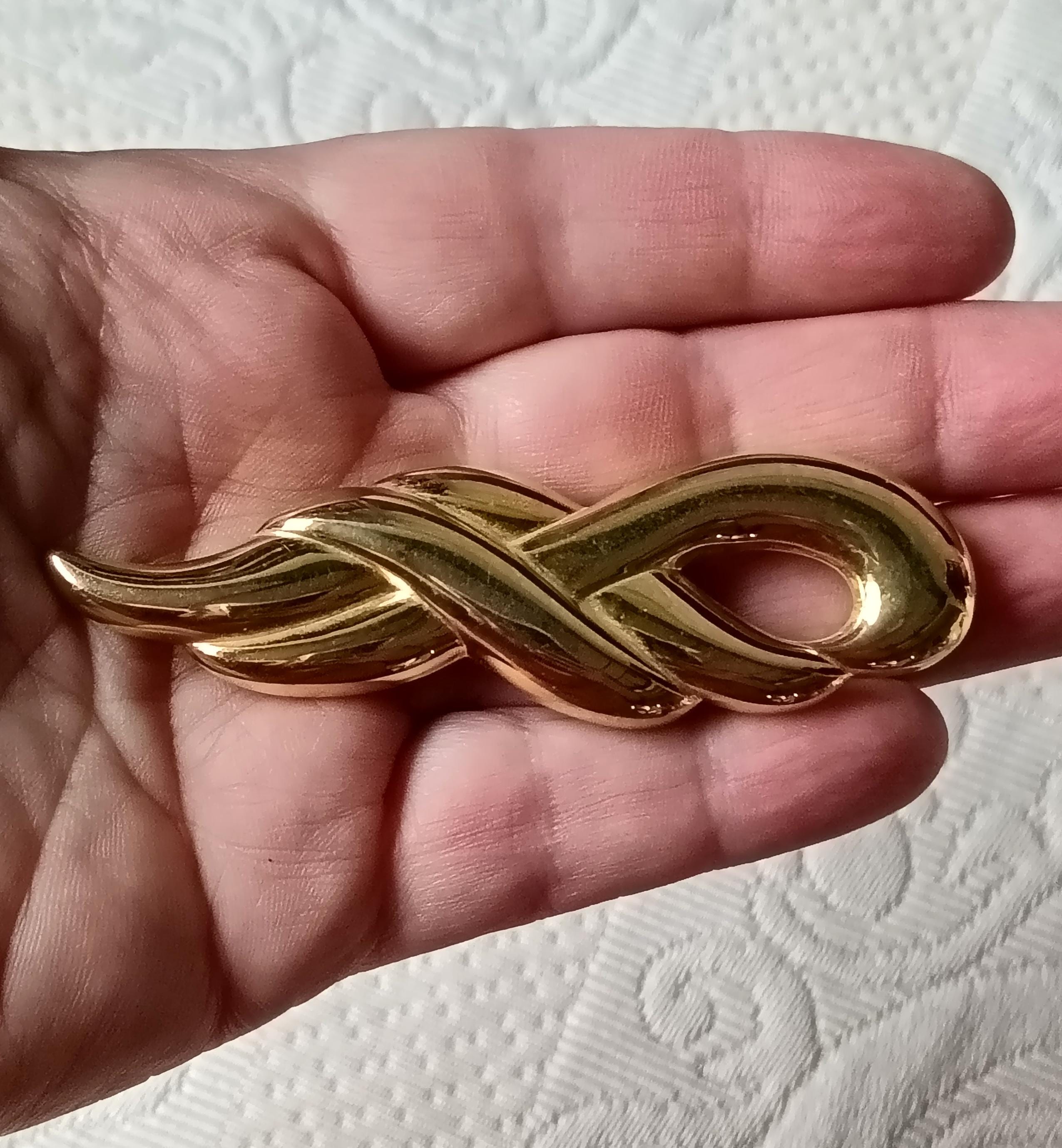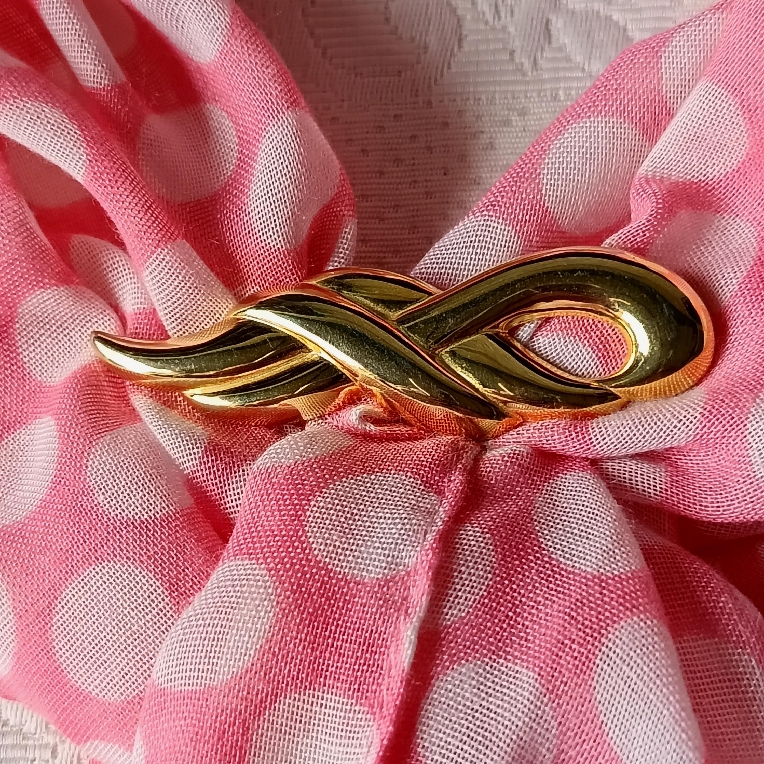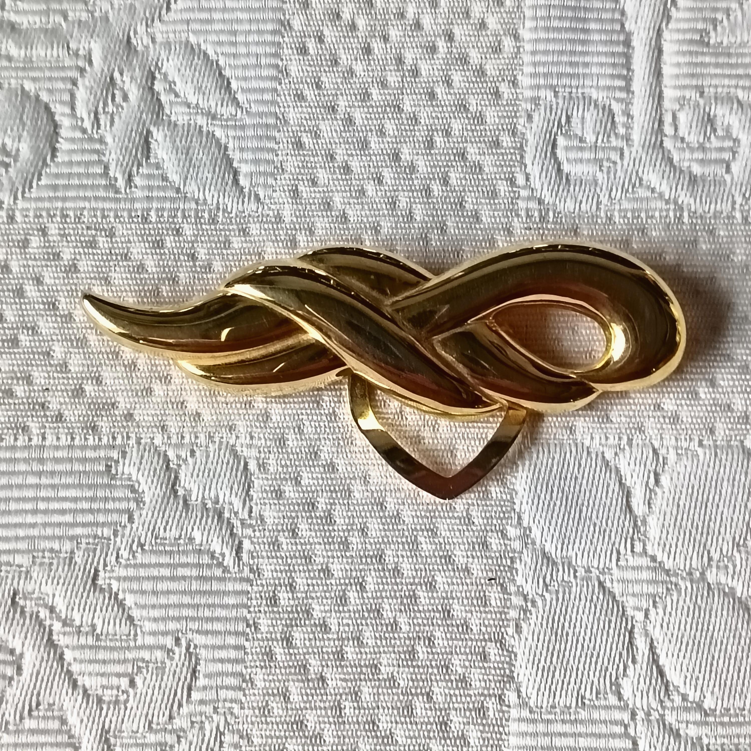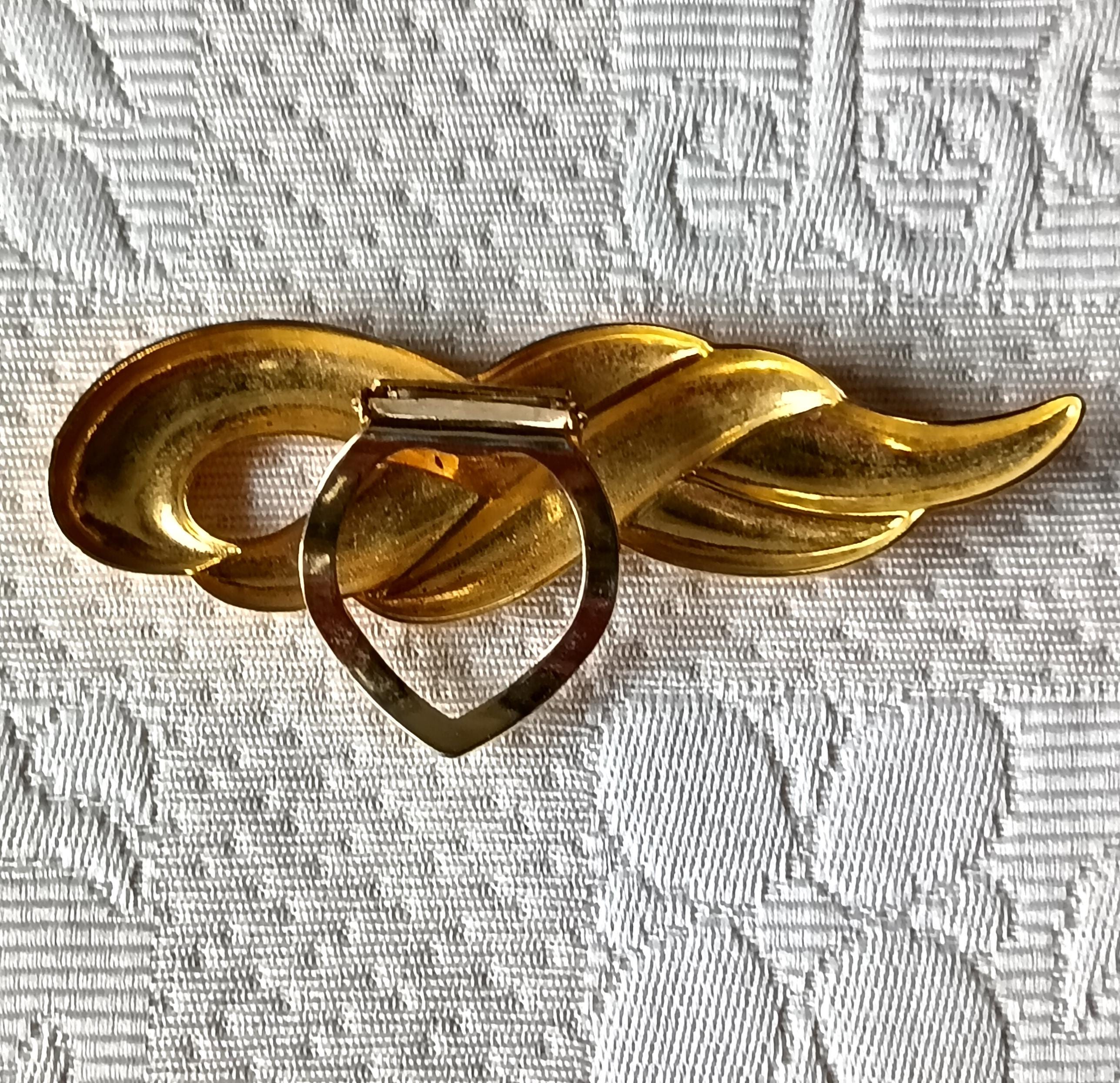 Vintage elongated gold-tone metal scarf clip, dating from the 1980s.