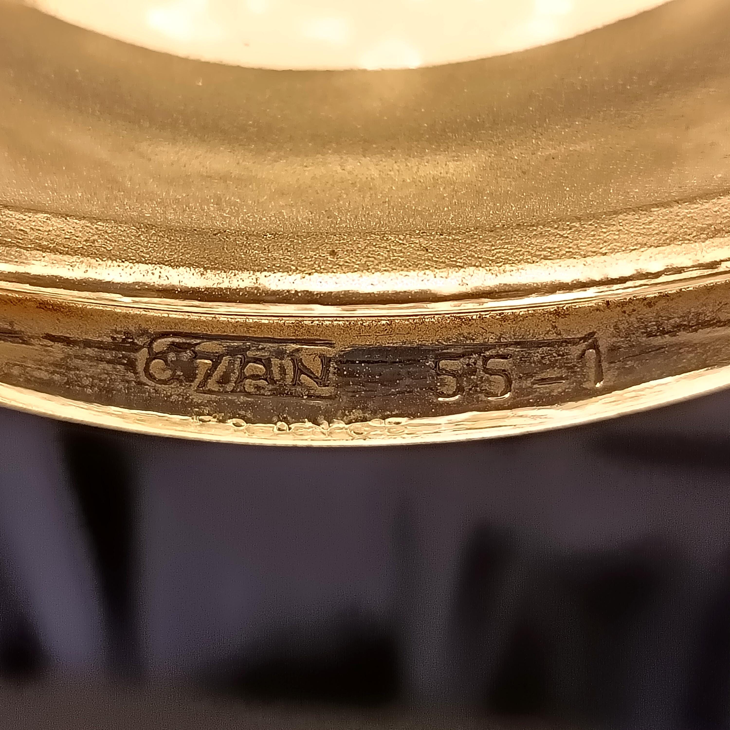 Frosted and structured surface signed ezan, it is newly electrified with a twisted wire covered in gold-colored textile, a golden tube surmounts the suspension and reinforces its chic side. The ceiling rose is in gold metal as well as the socket (requires an e14 screw bulb not included).