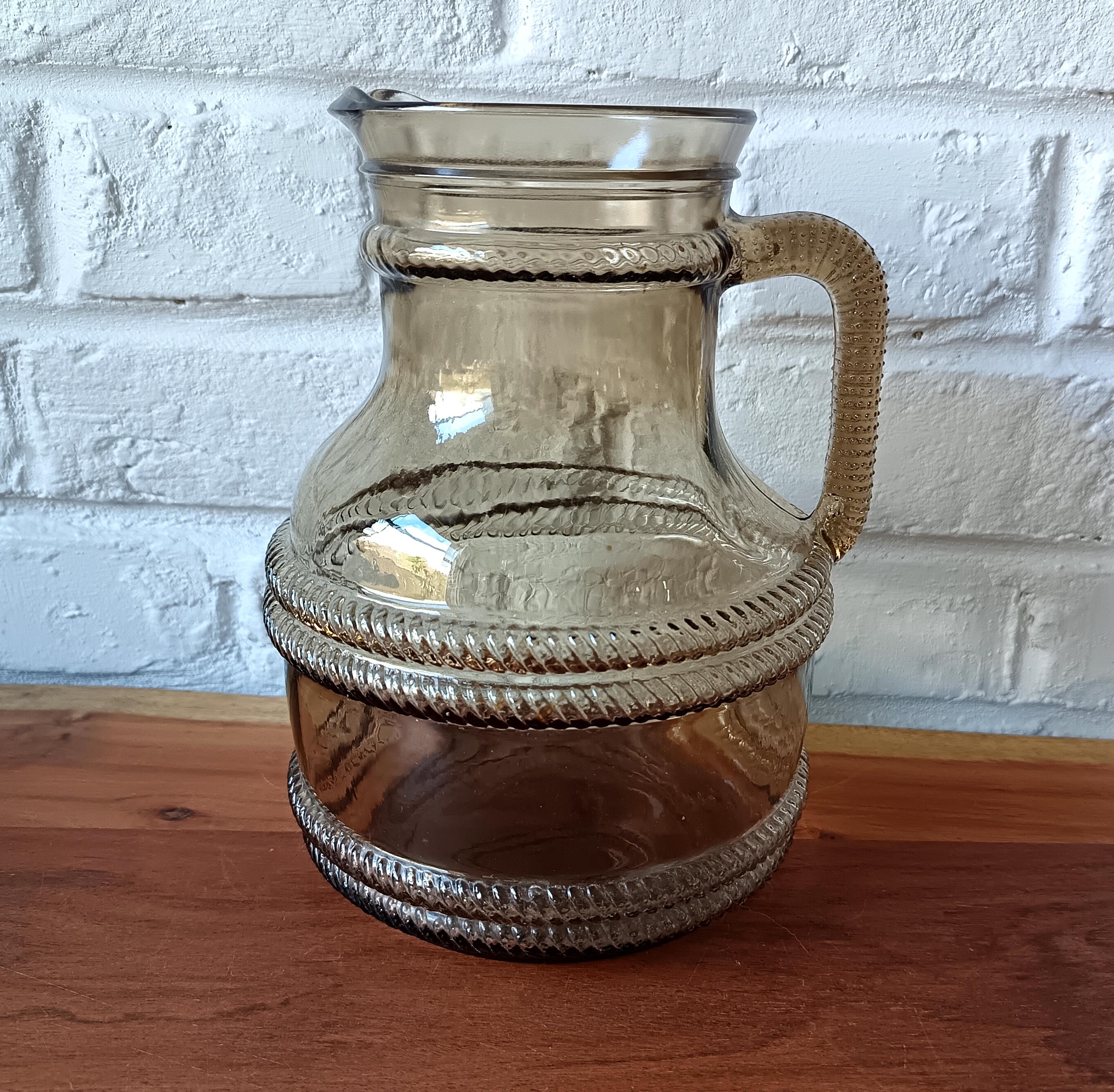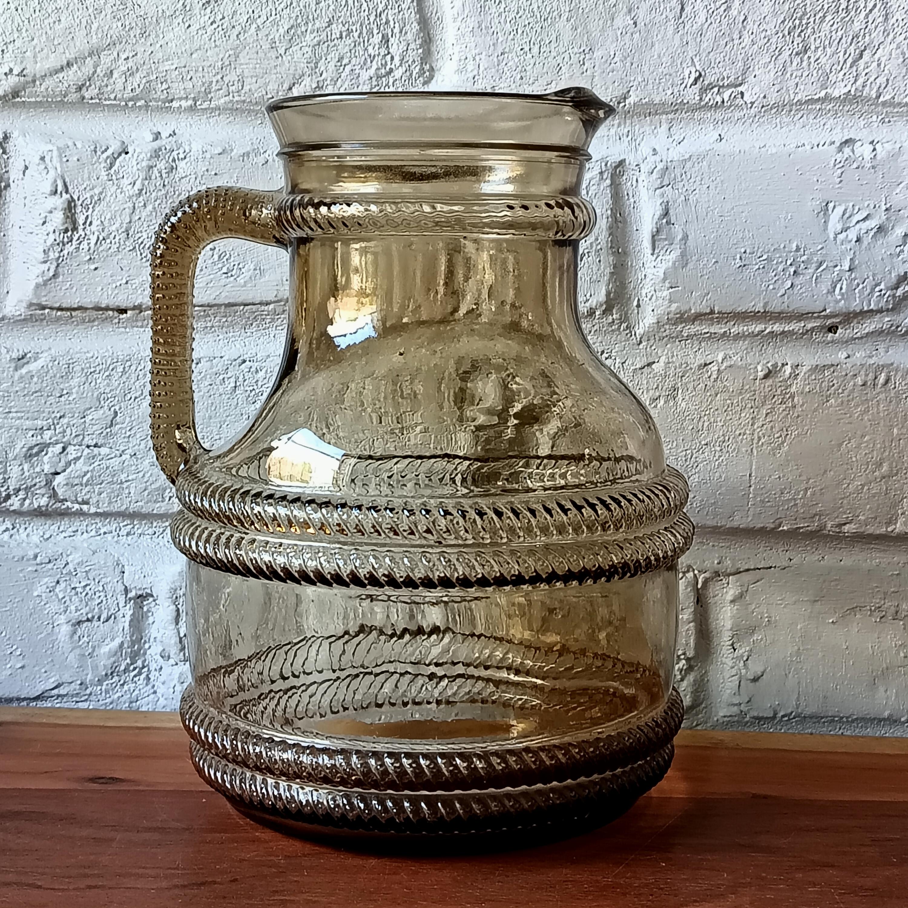 Beautiful Fidenza Vetraria smoked glass pitcher, easily handled thanks to its small handle.