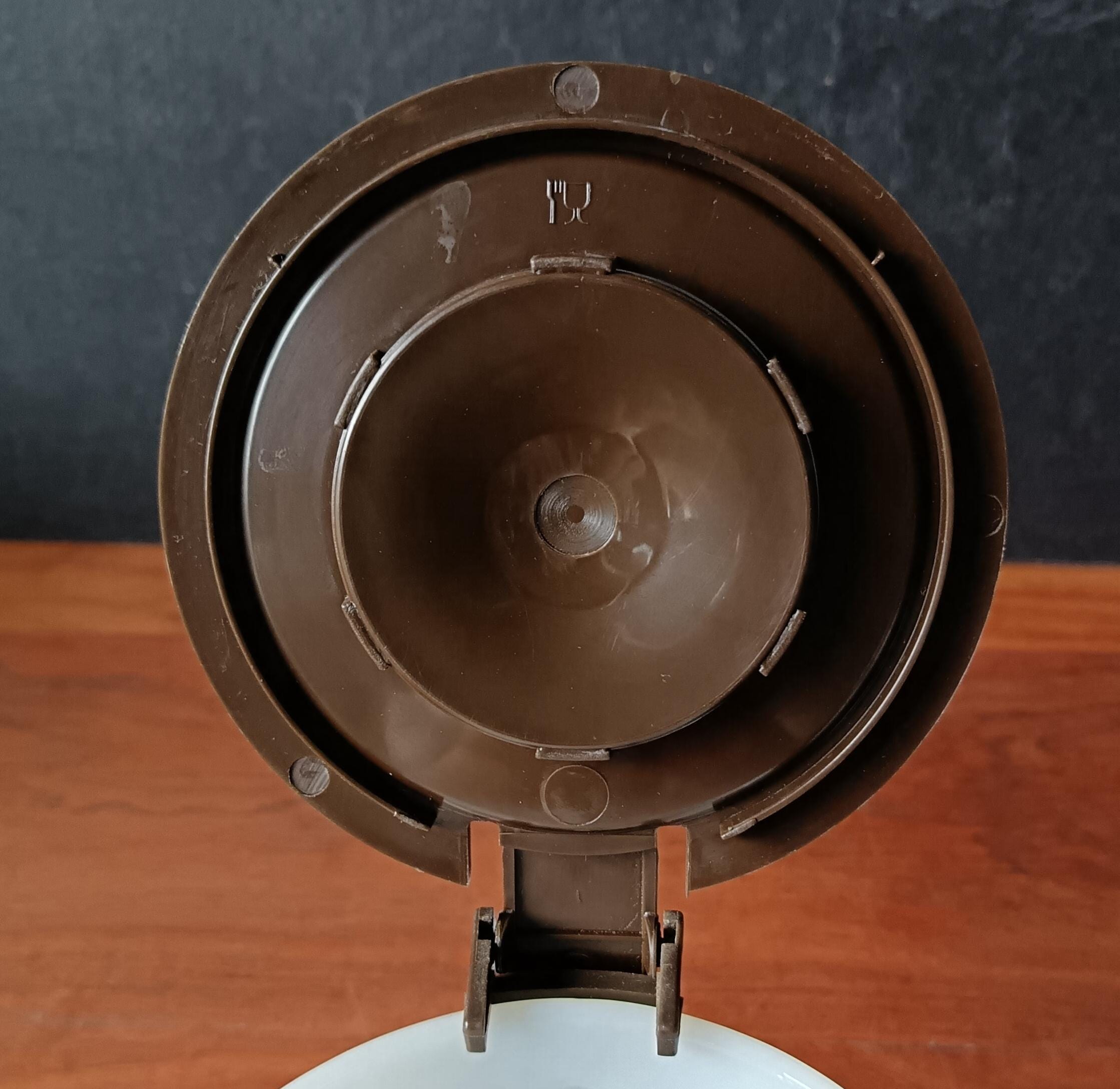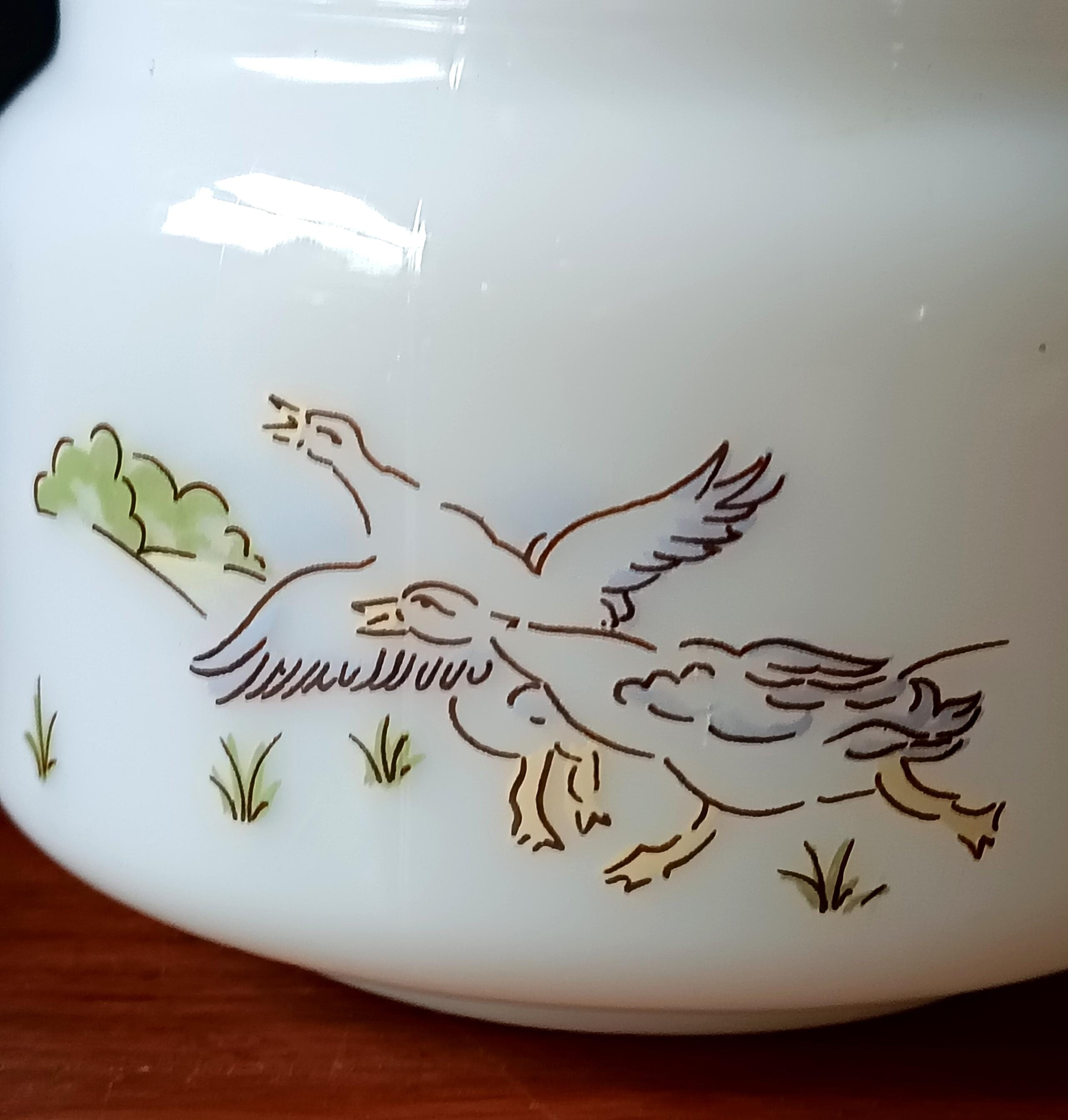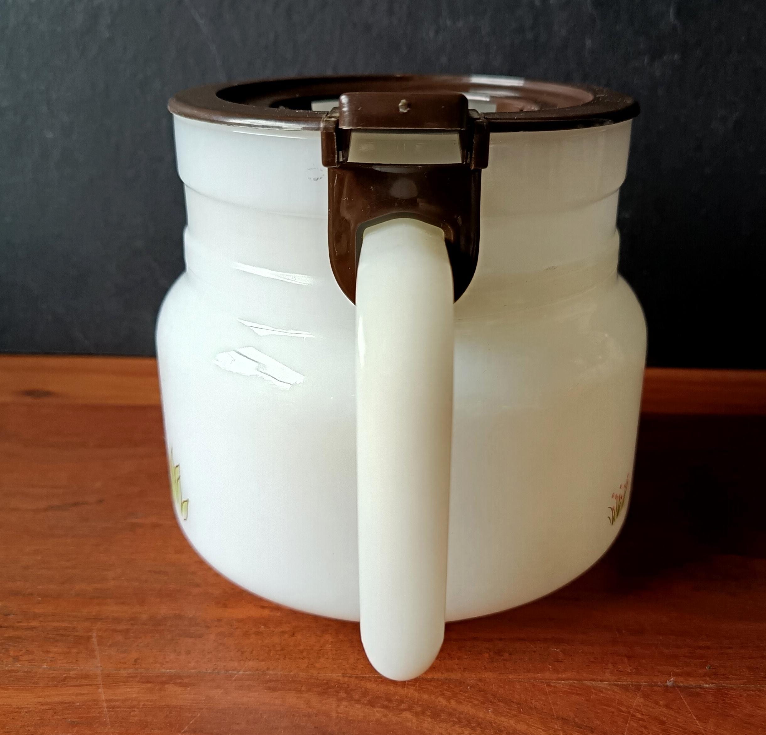 This vintage Arcopal glass milk coffee maker with lid is a universal carafe.