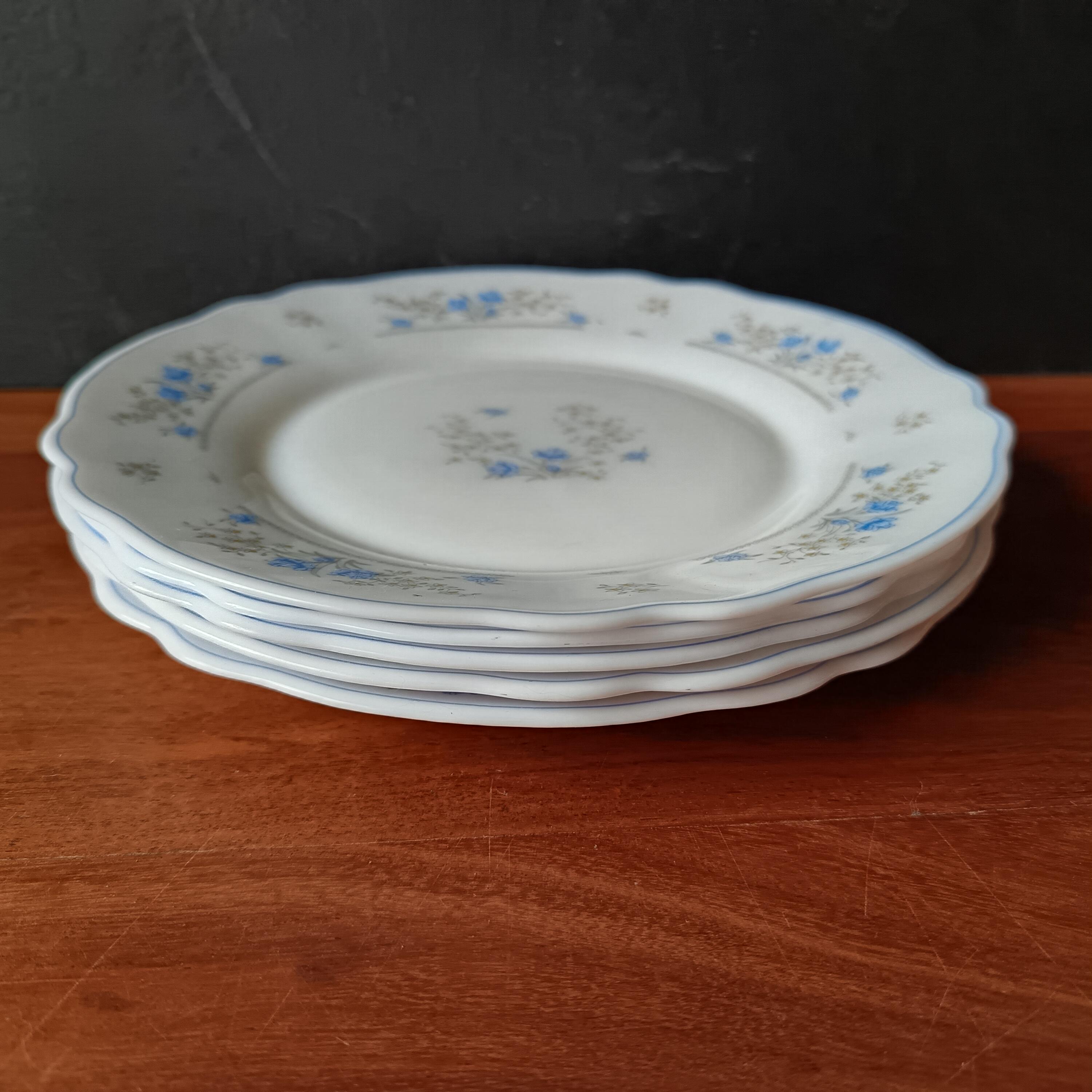 5 vintage ARCOPAL brand milk glass dessert plates from the Arques glassworks, they date from the 80s.