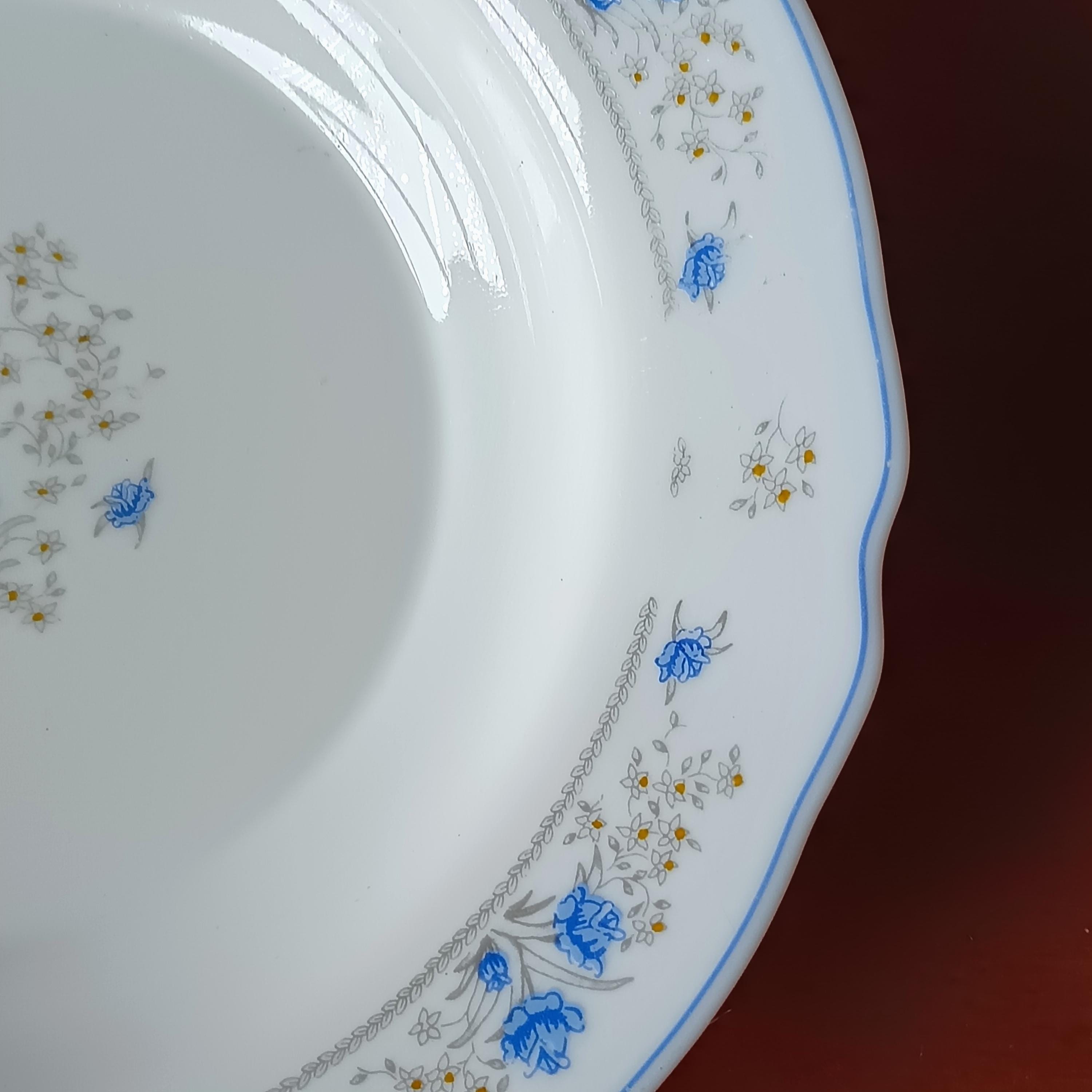 Il est de couleur blanche avec un délicat motif de petites fleurs, il s'agit du motif "Romantique" de Arcopal France.