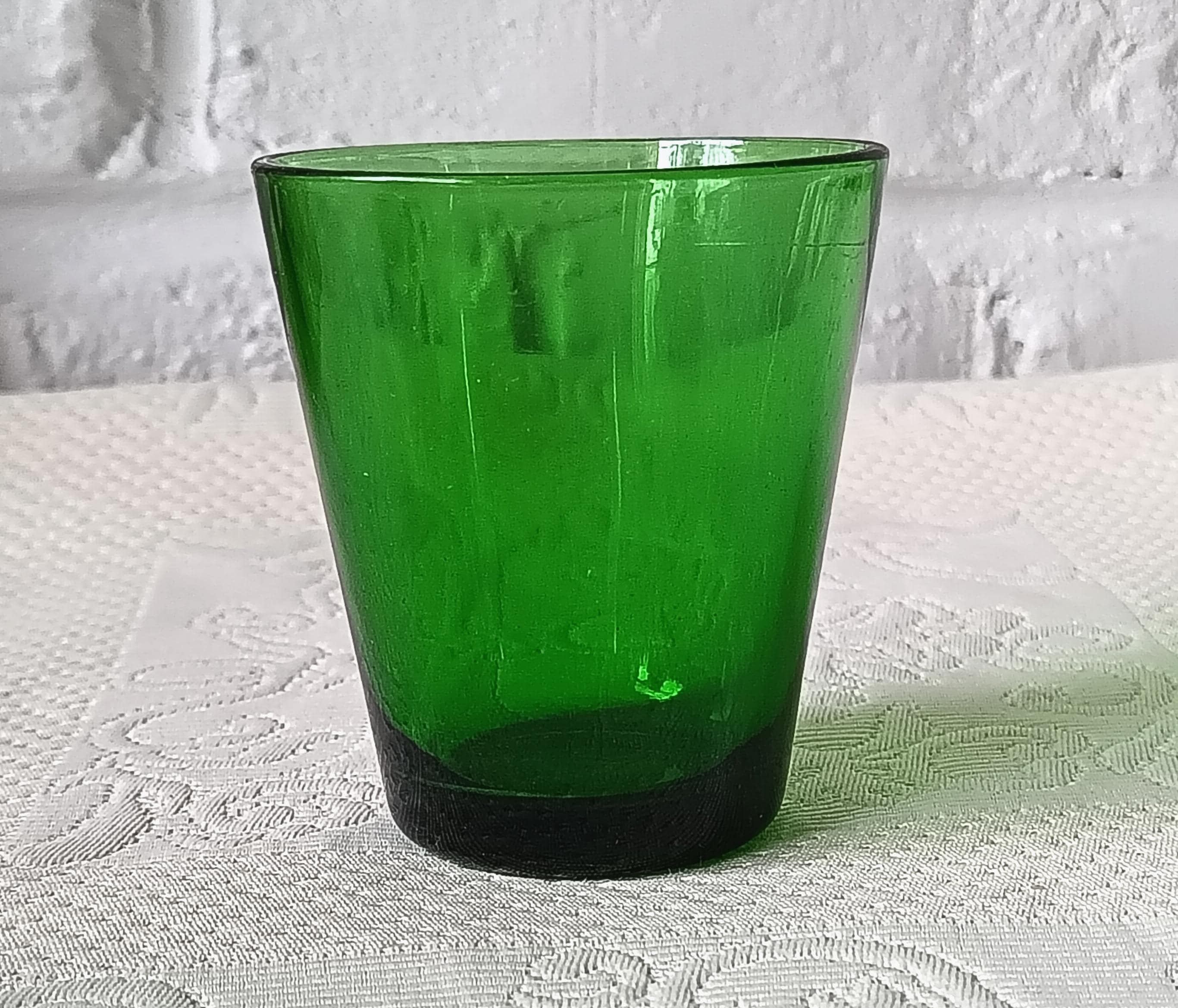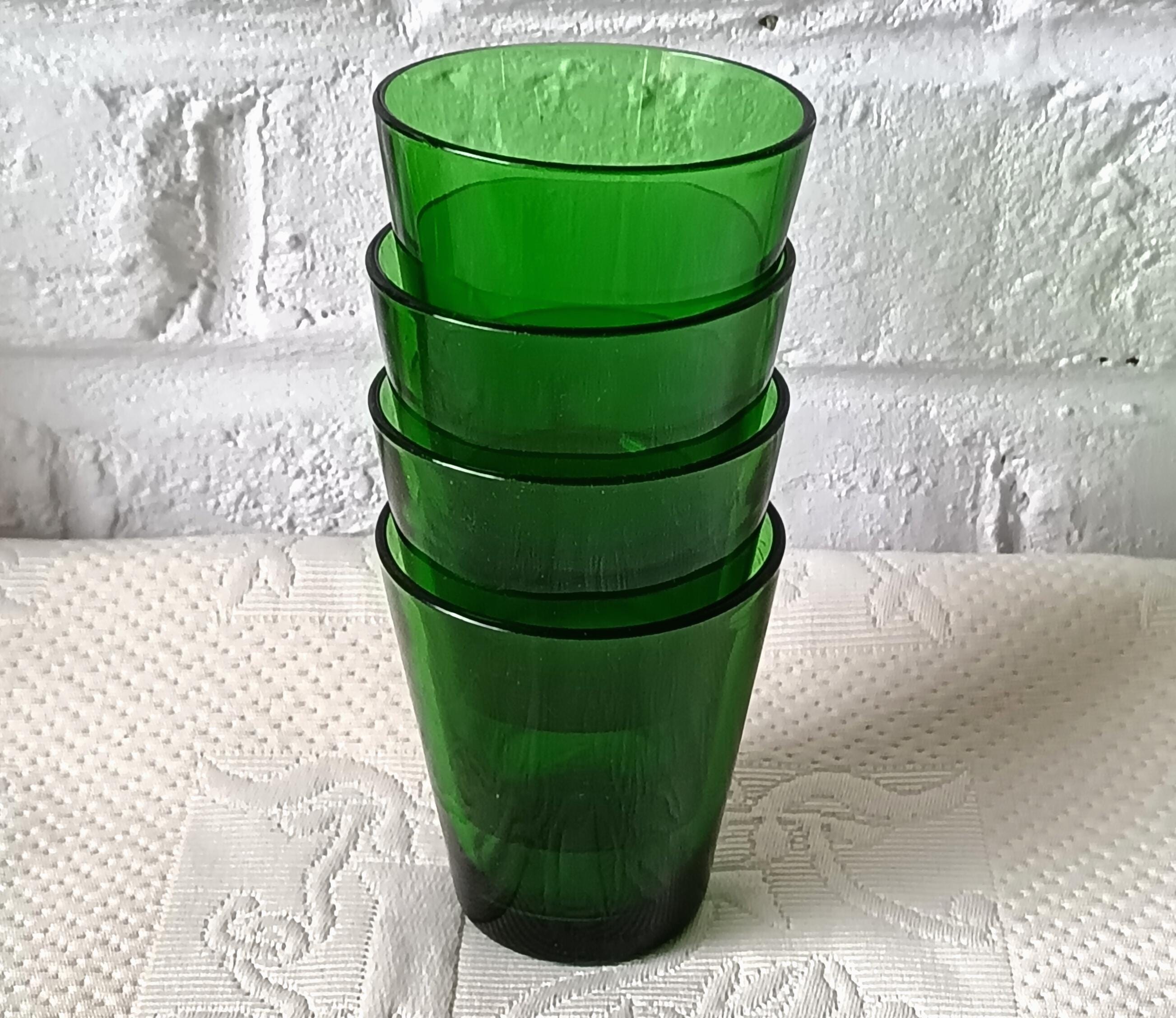Highly decorative, 4 glasses from the 70s in a very pretty emerald green color, made of tempered glass, very robust.