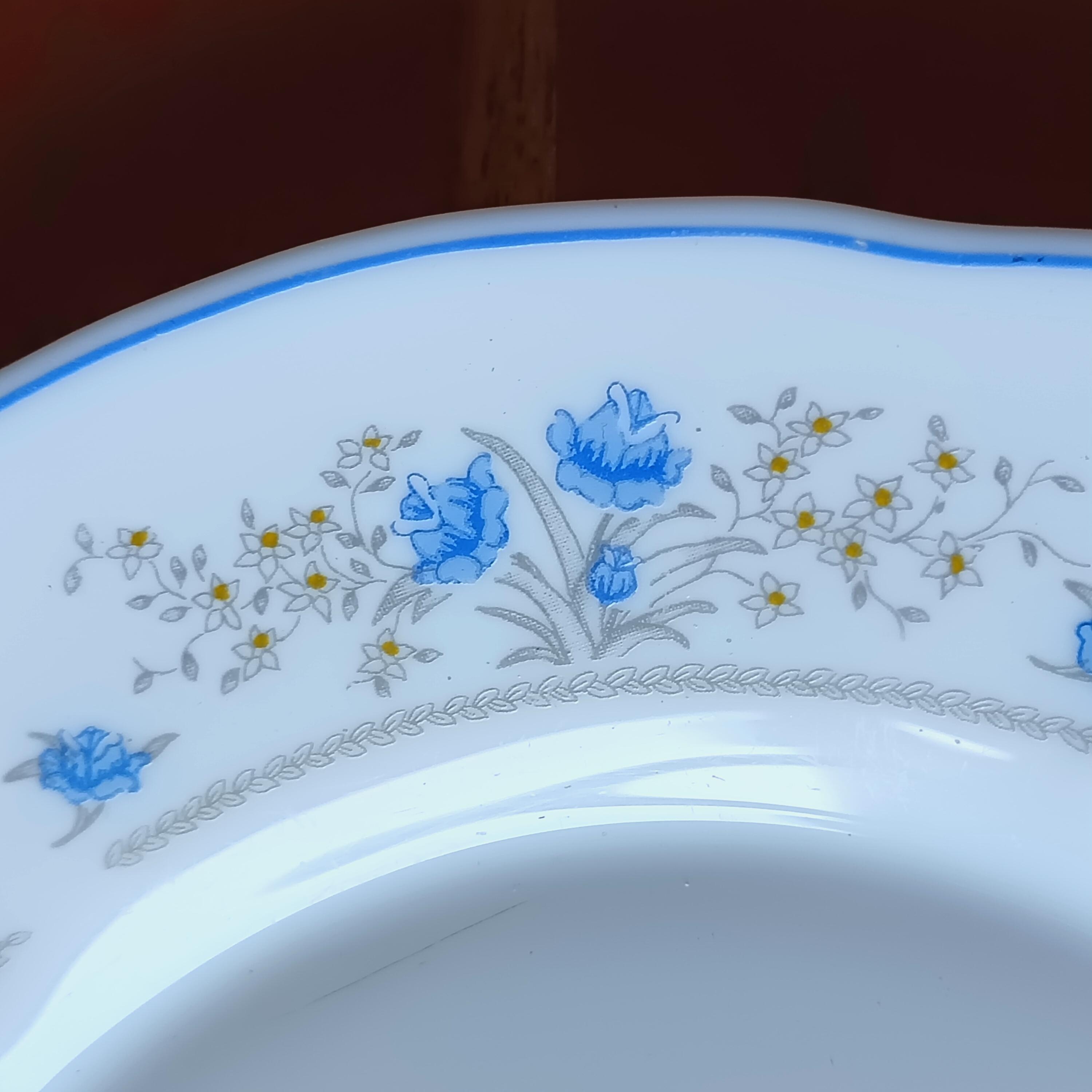They are white in color with a delicate pattern of small flowers, this is the "Romantic" pattern from Arcopal France.