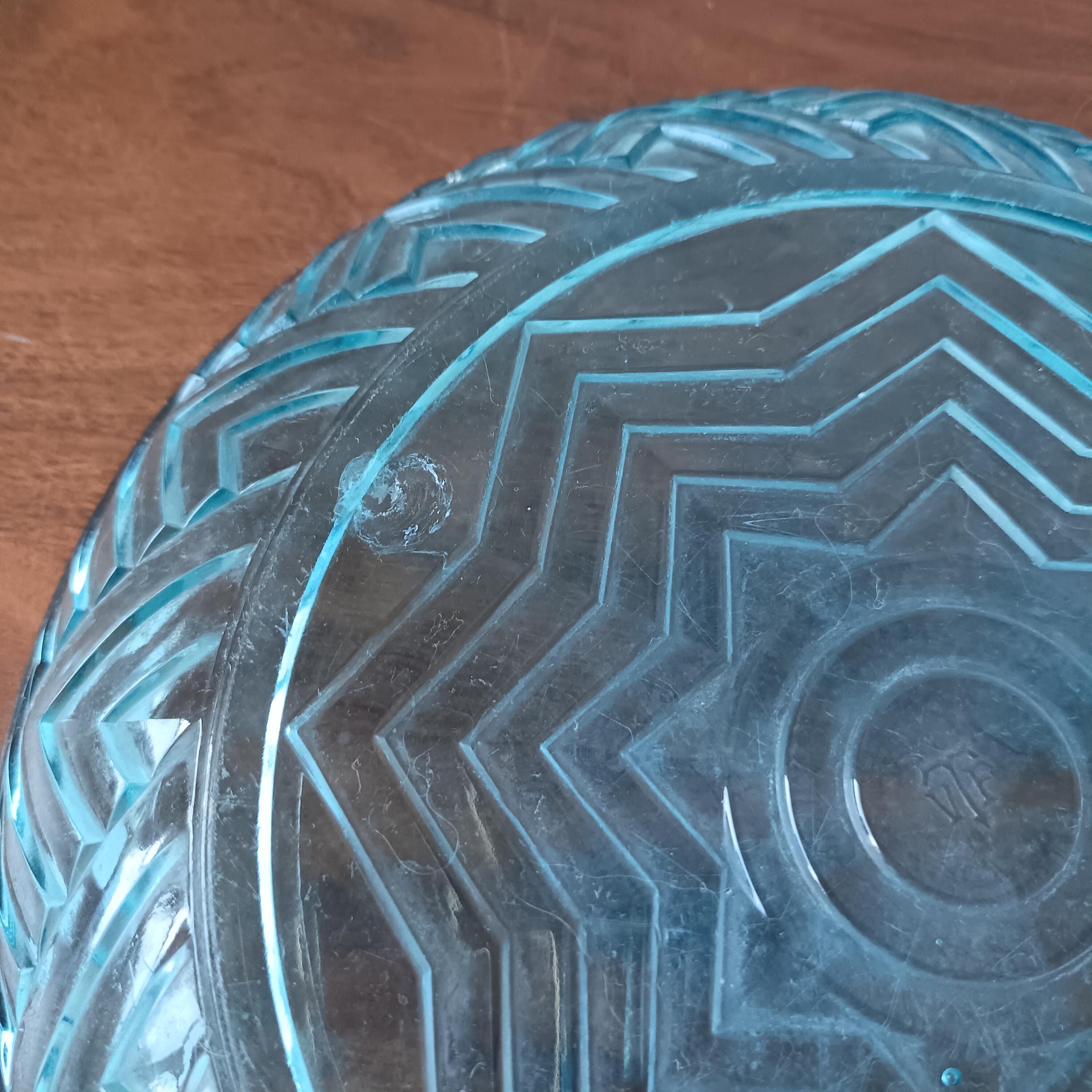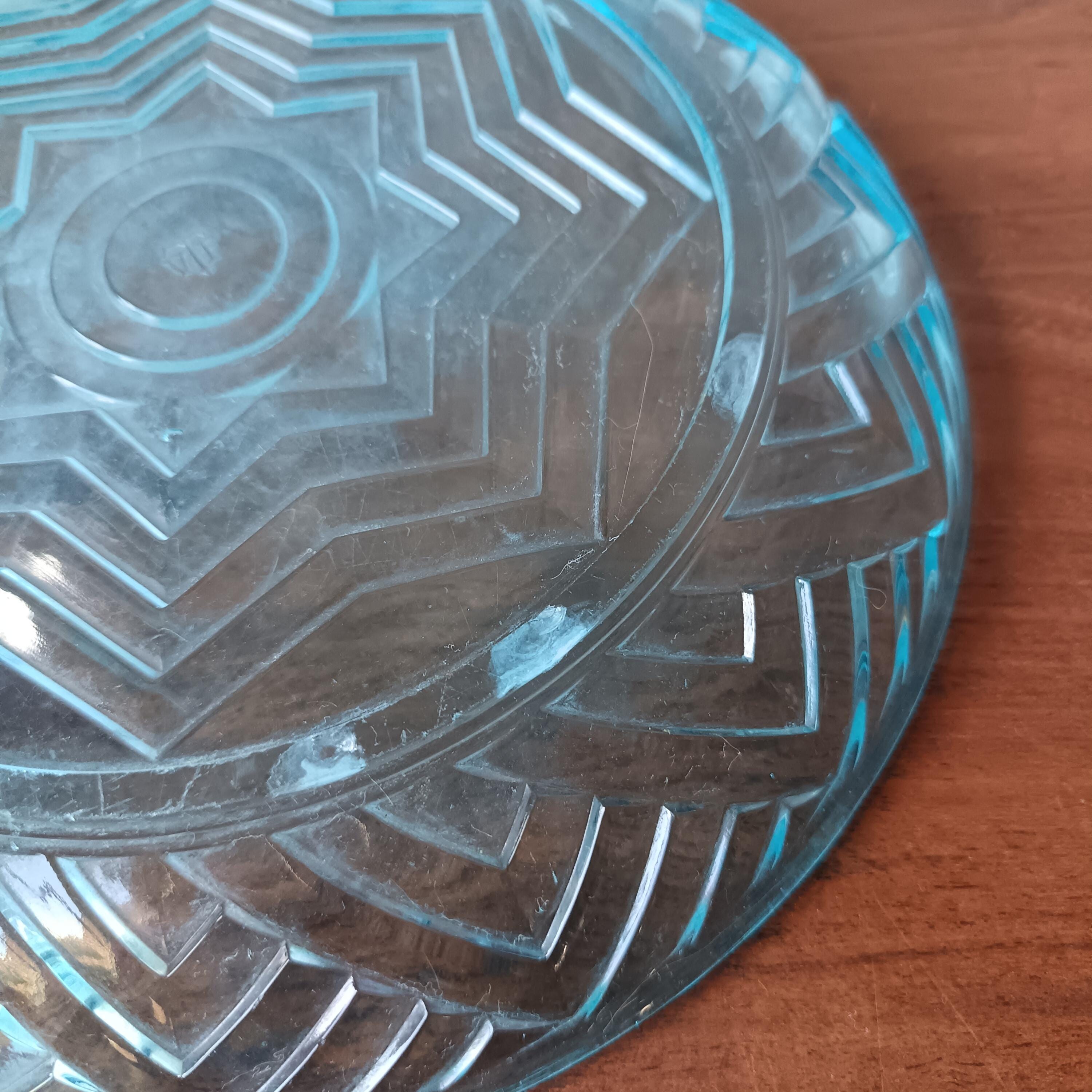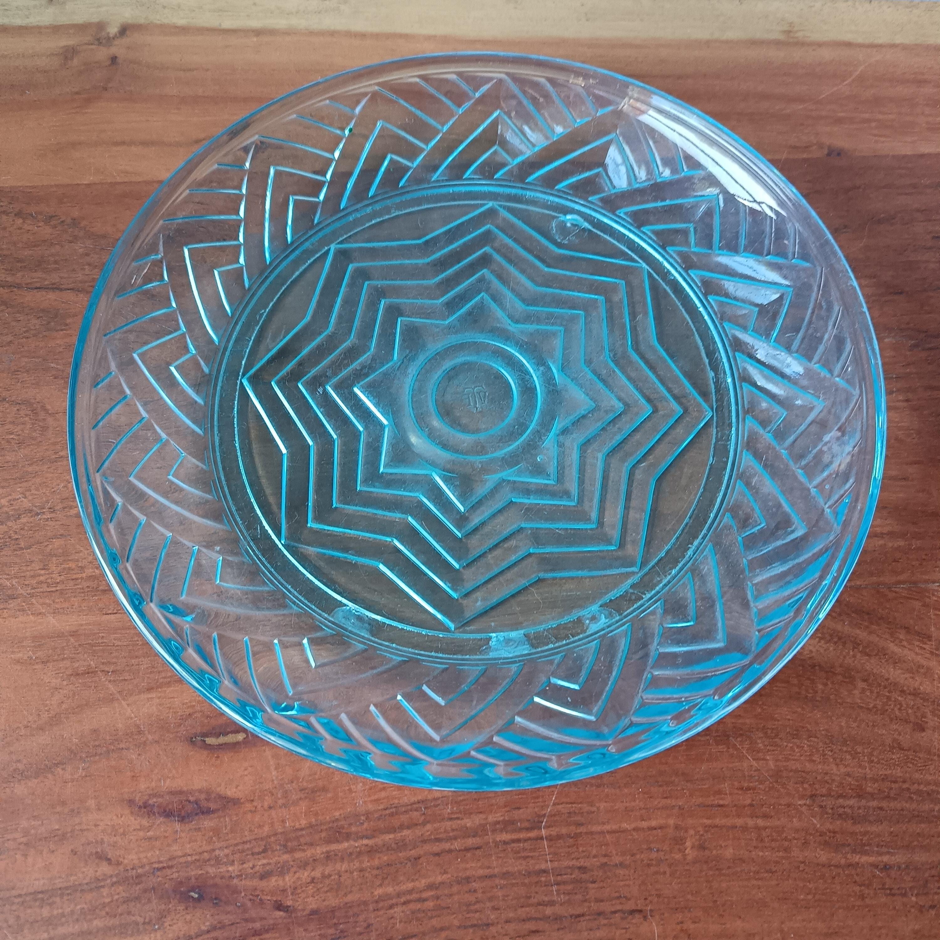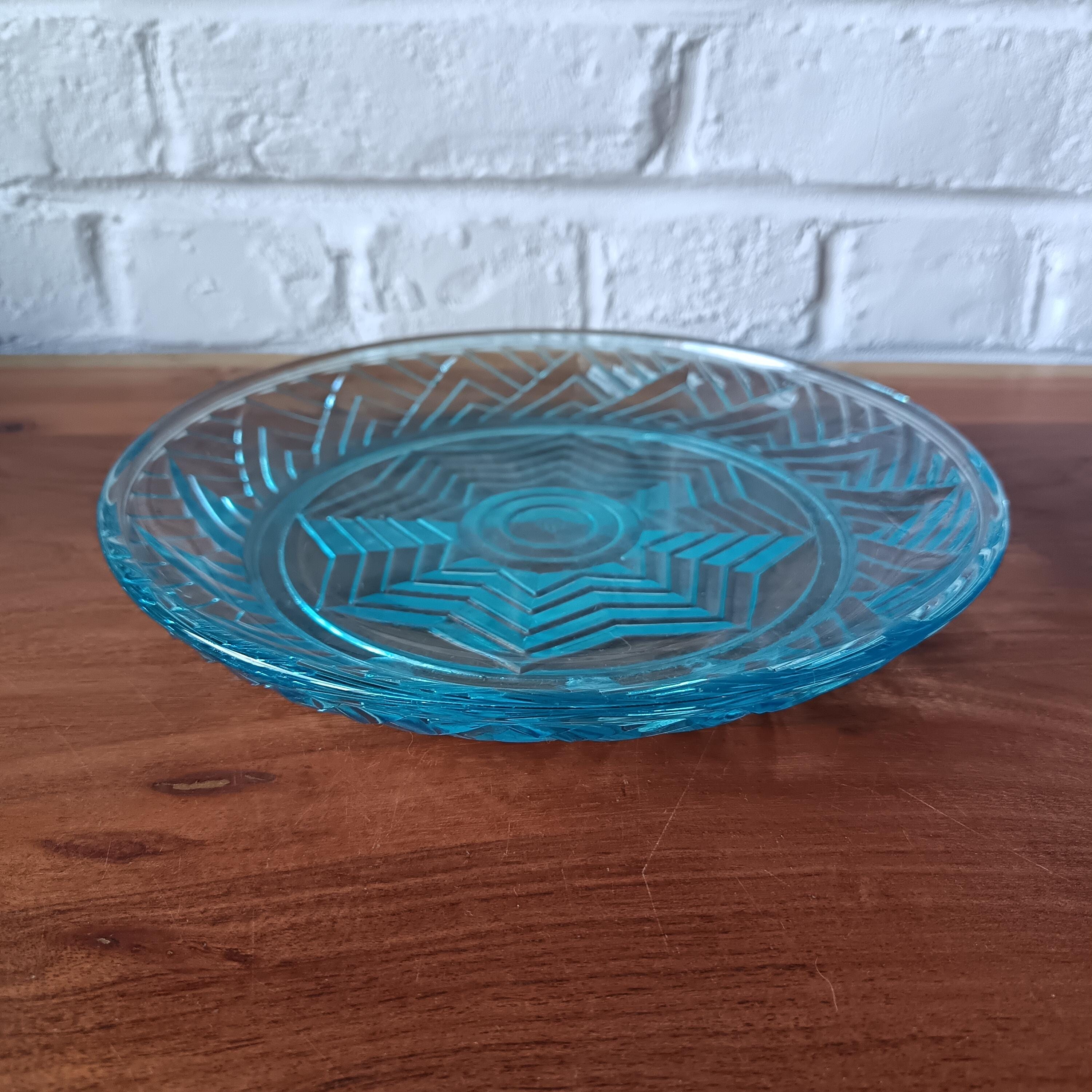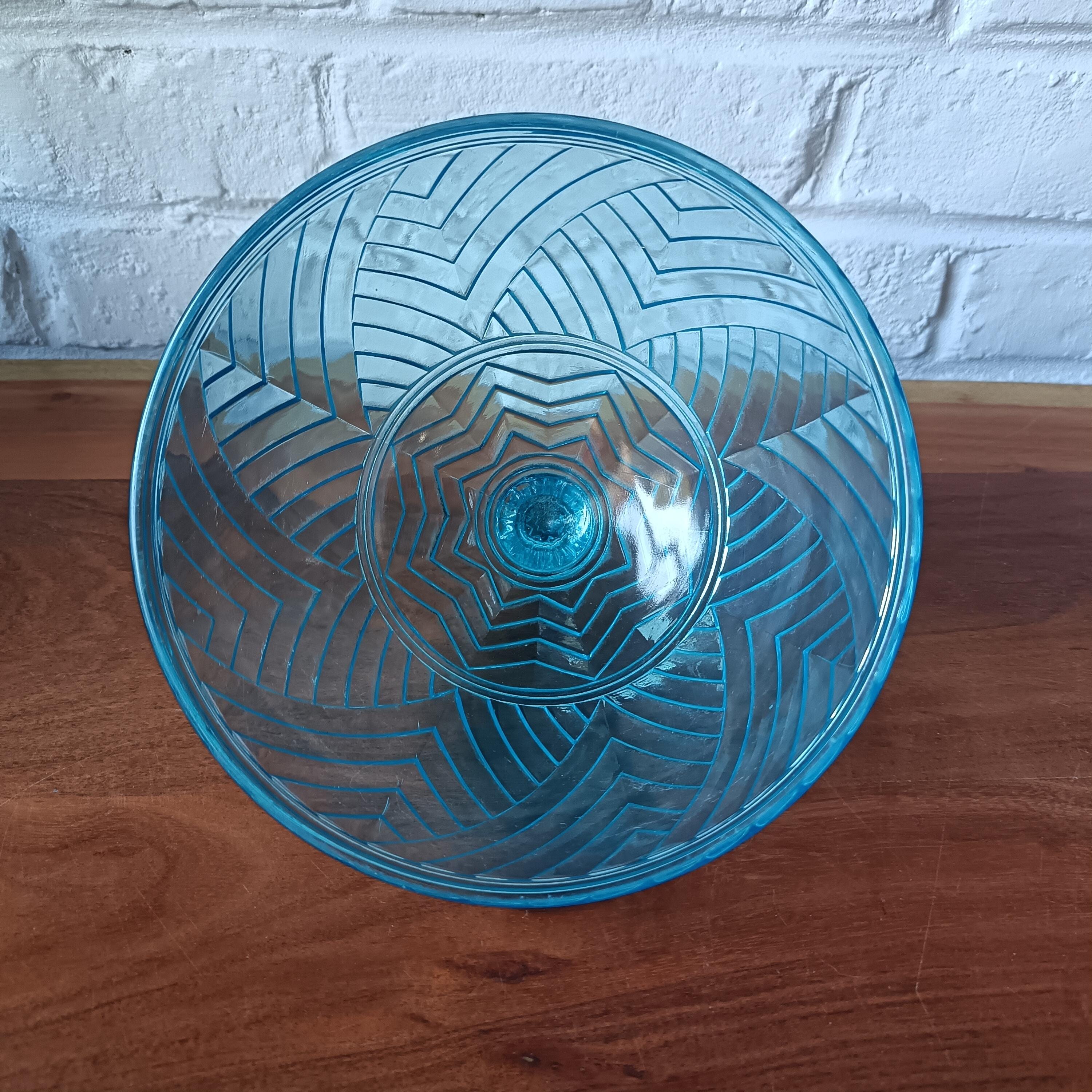 Turquoise glass dish with cloche from the 1940s/50s.