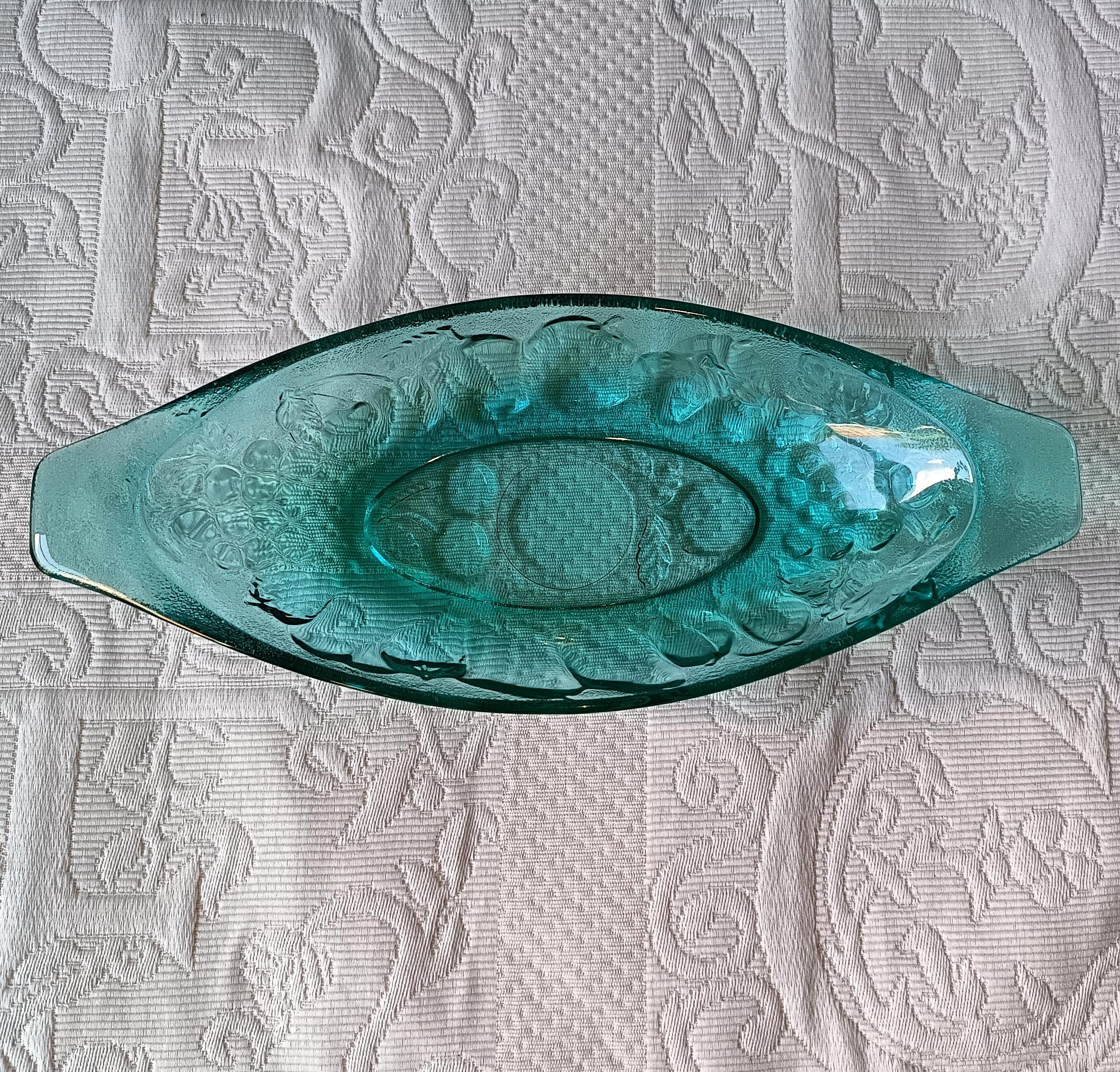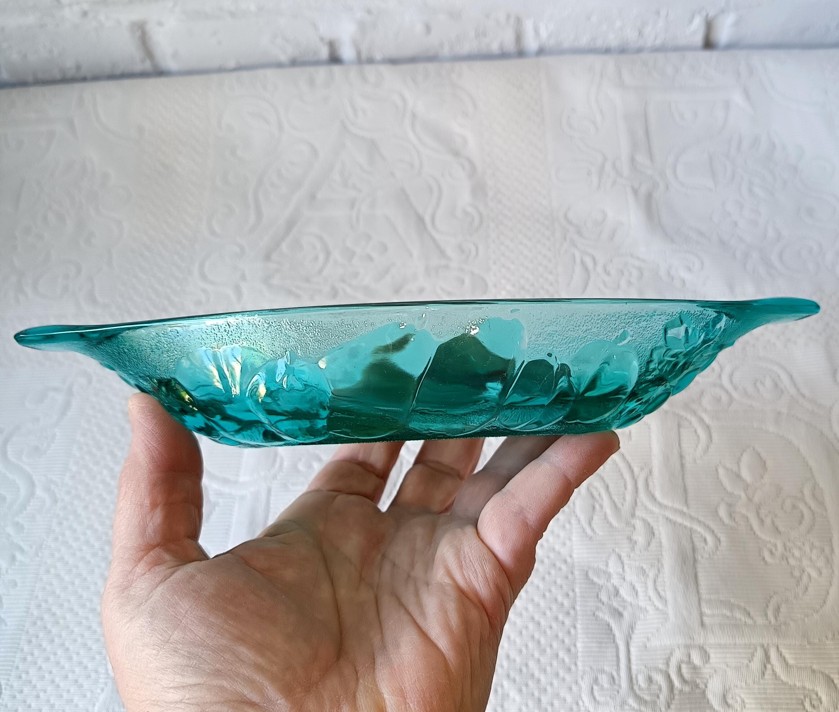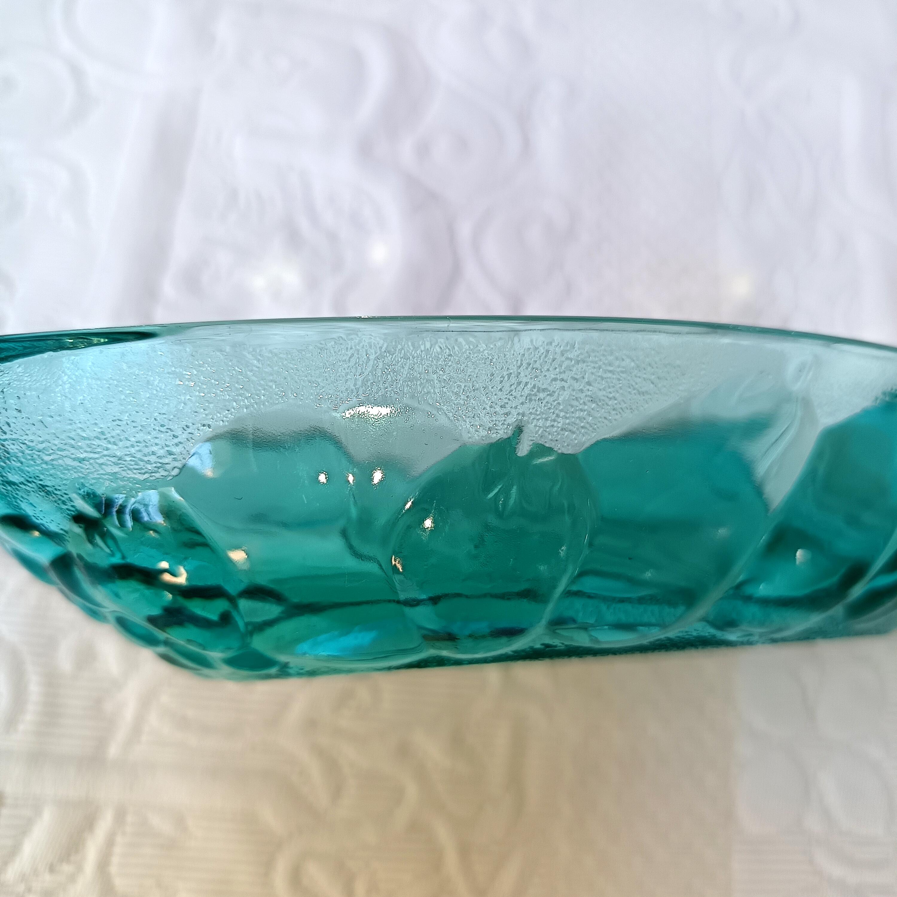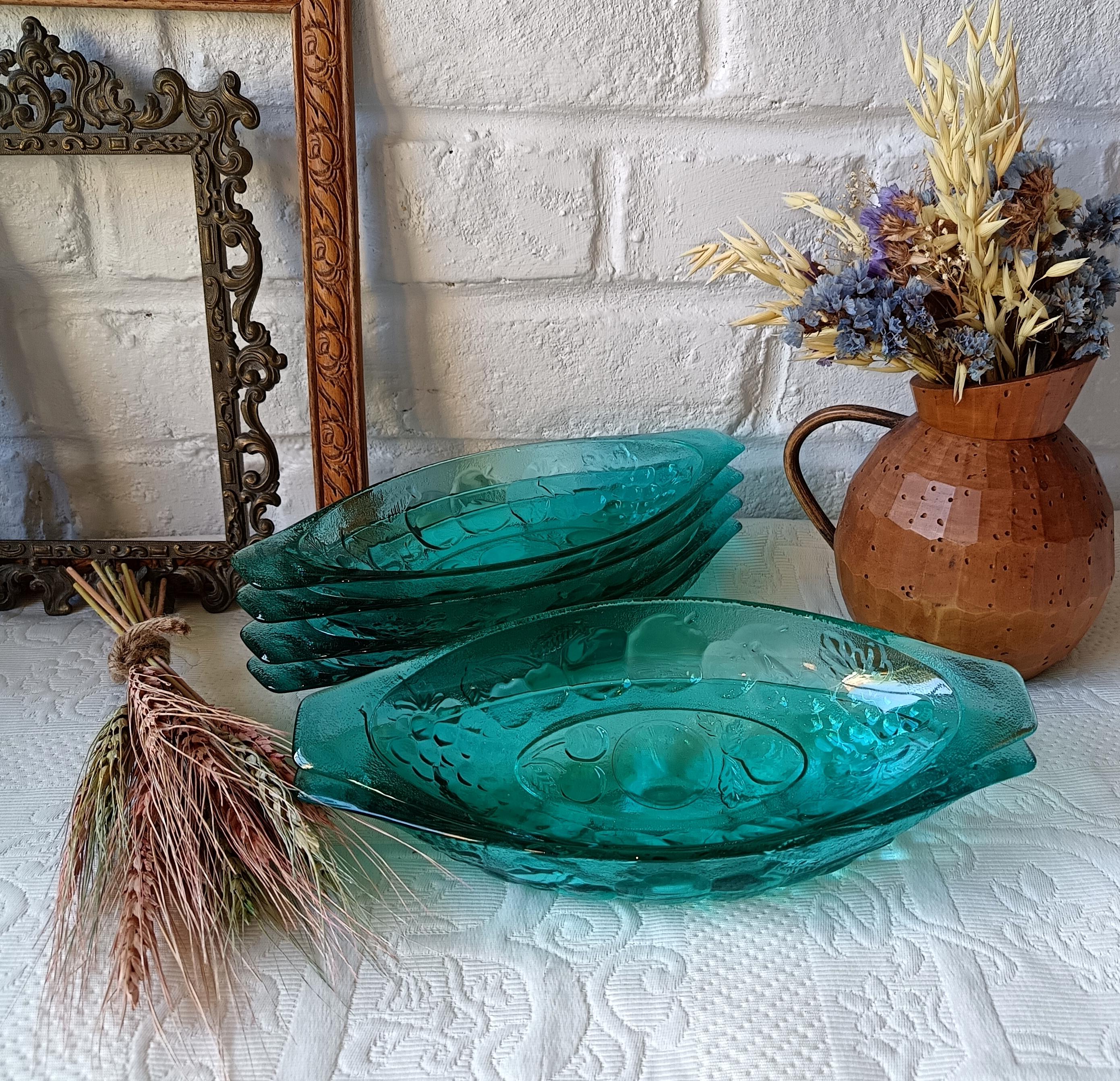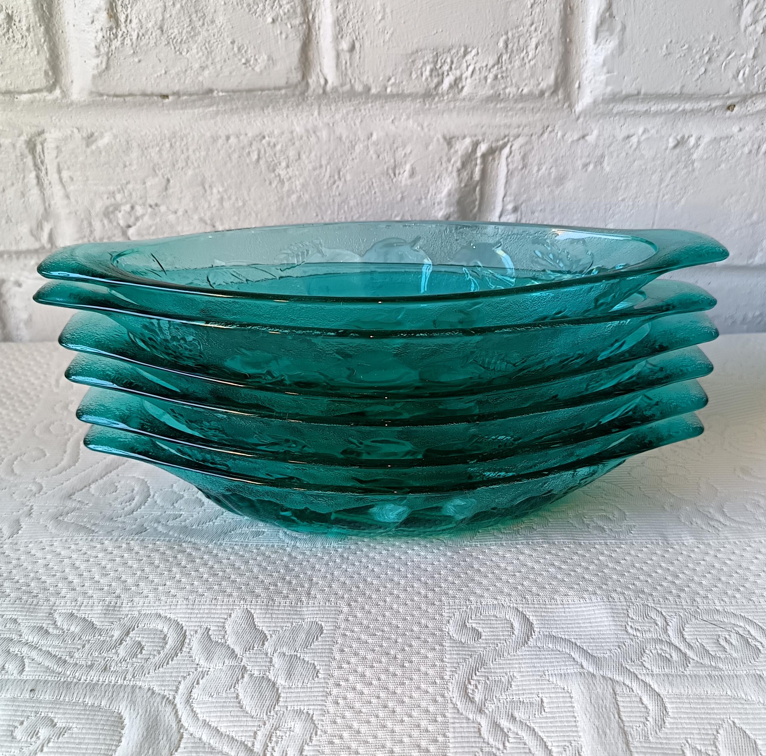 6 vintage Luminarc "gourmande" model ice cream cups, made of pressed glass, thick and heavy, in a beautiful turquoise color.