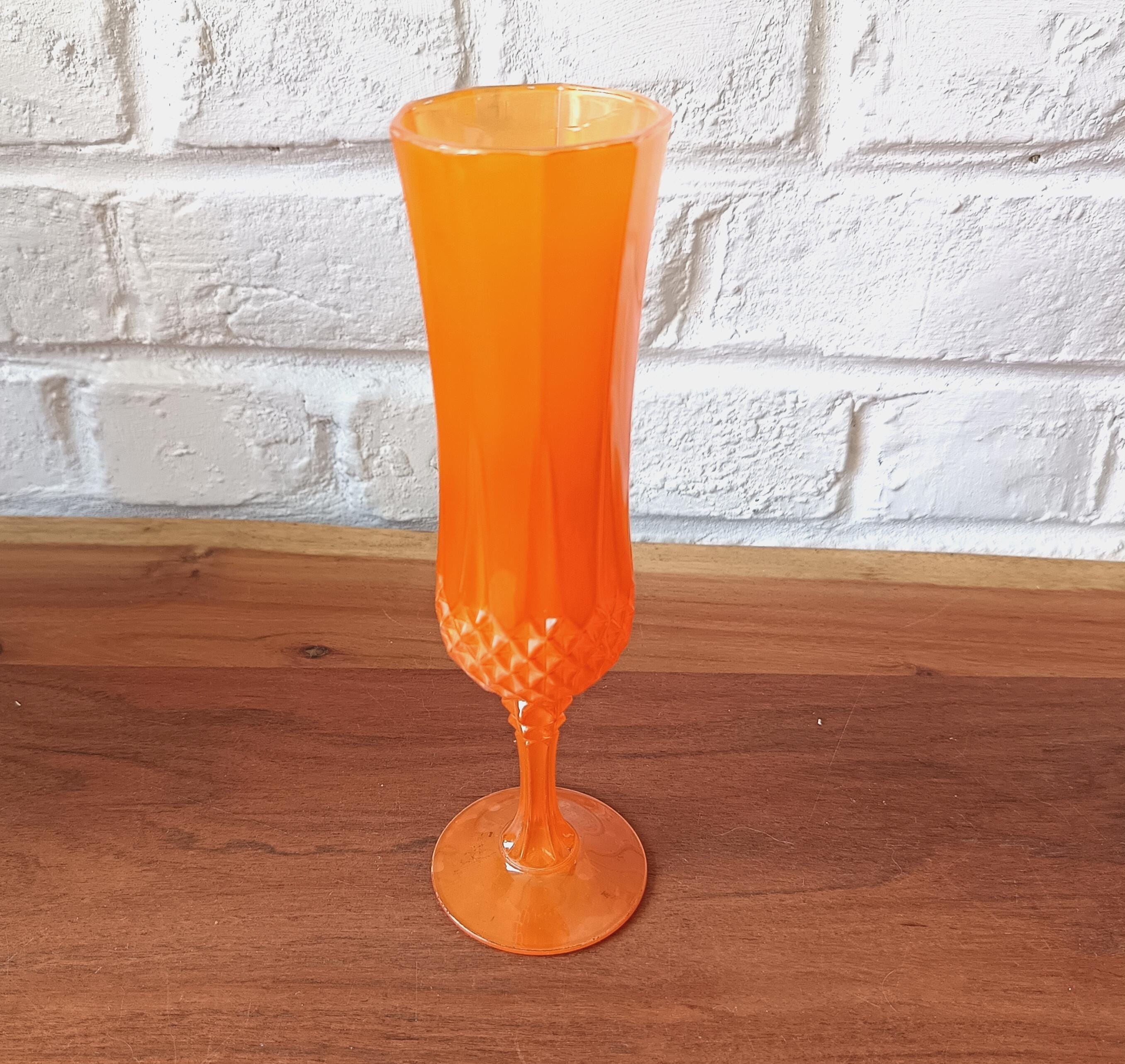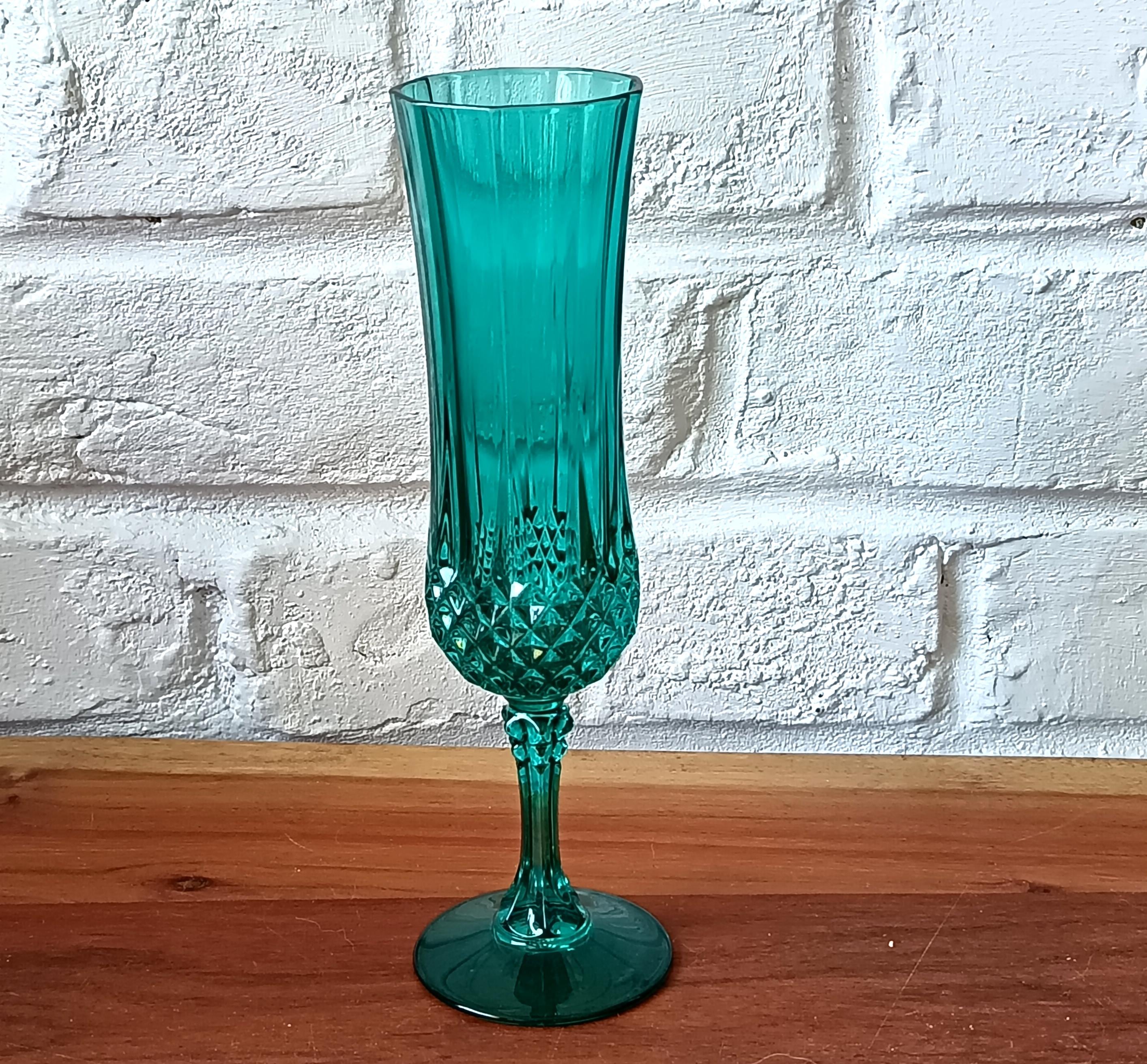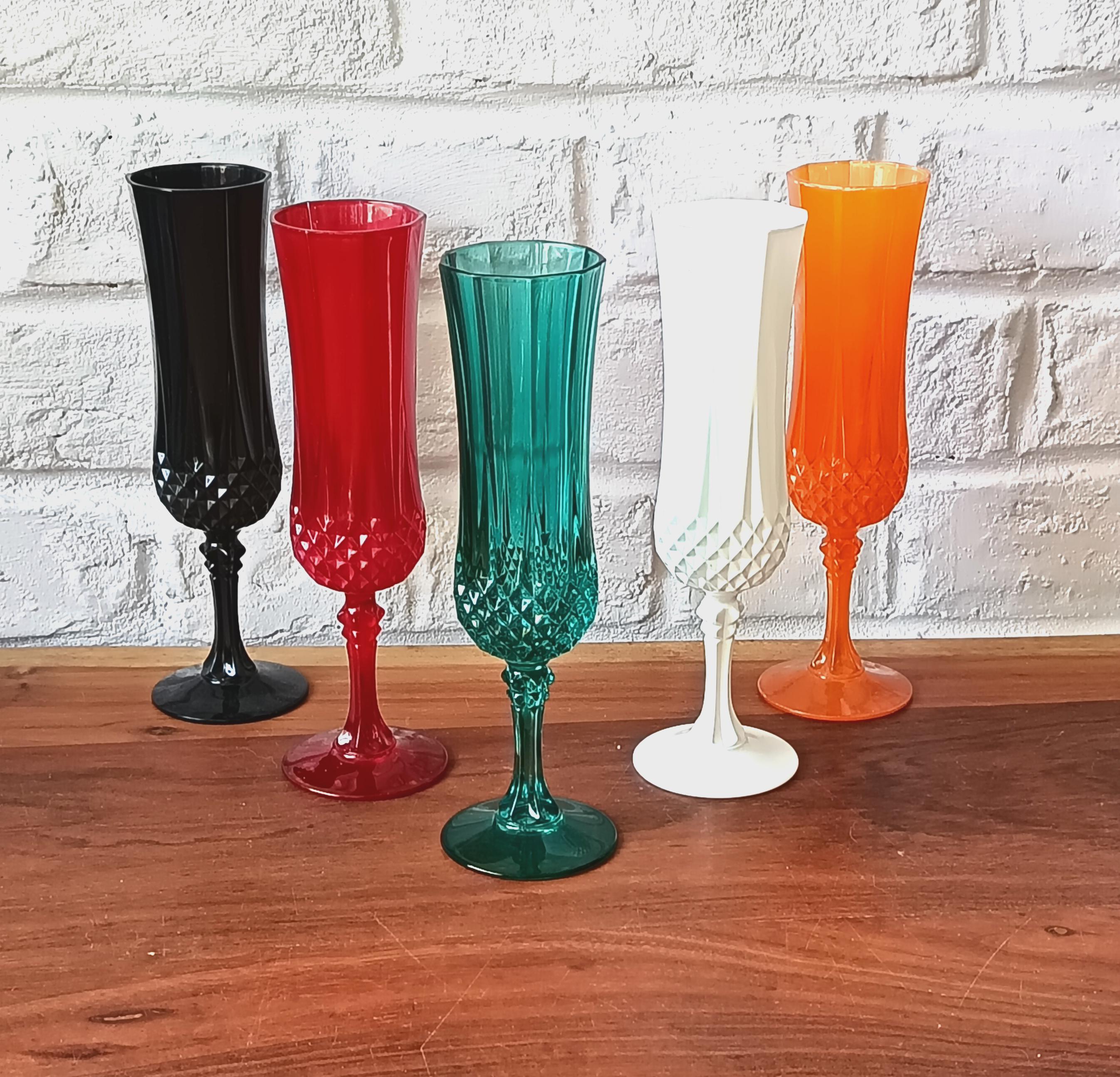 5 magnificent flutes, of the Longchamp model by Cristal d'Arques. In 5 different colours: orange, red, turquoise, white, black.