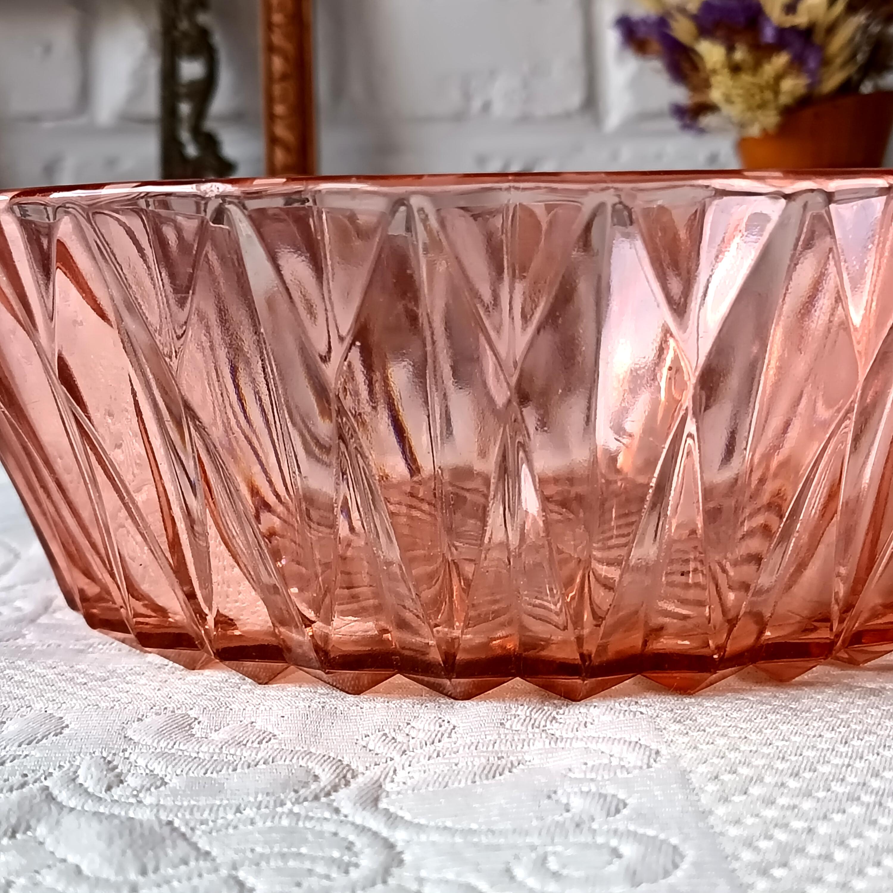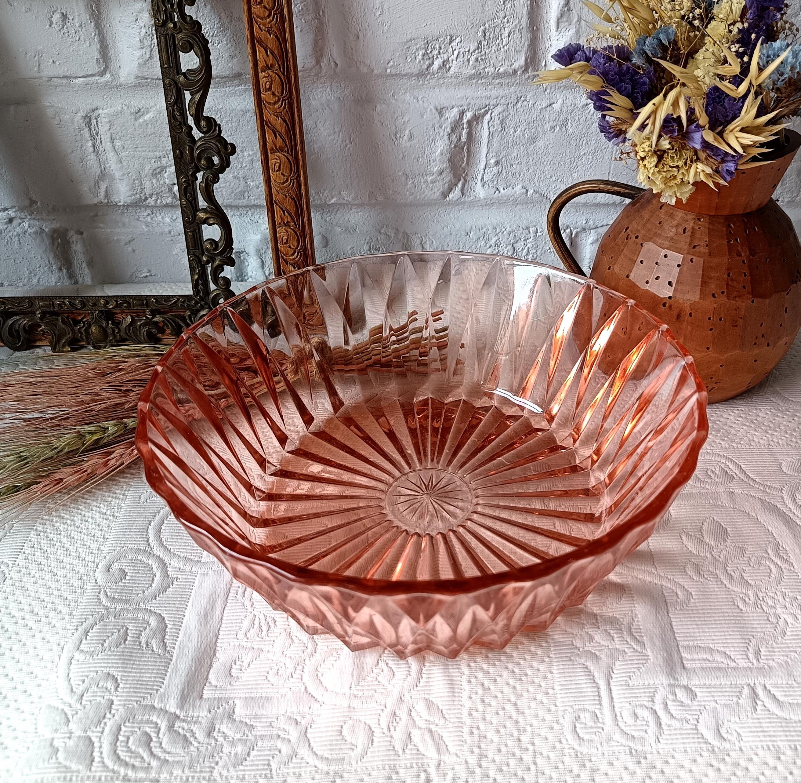 Vintage French pink molded glass salad bowl from the 1960s