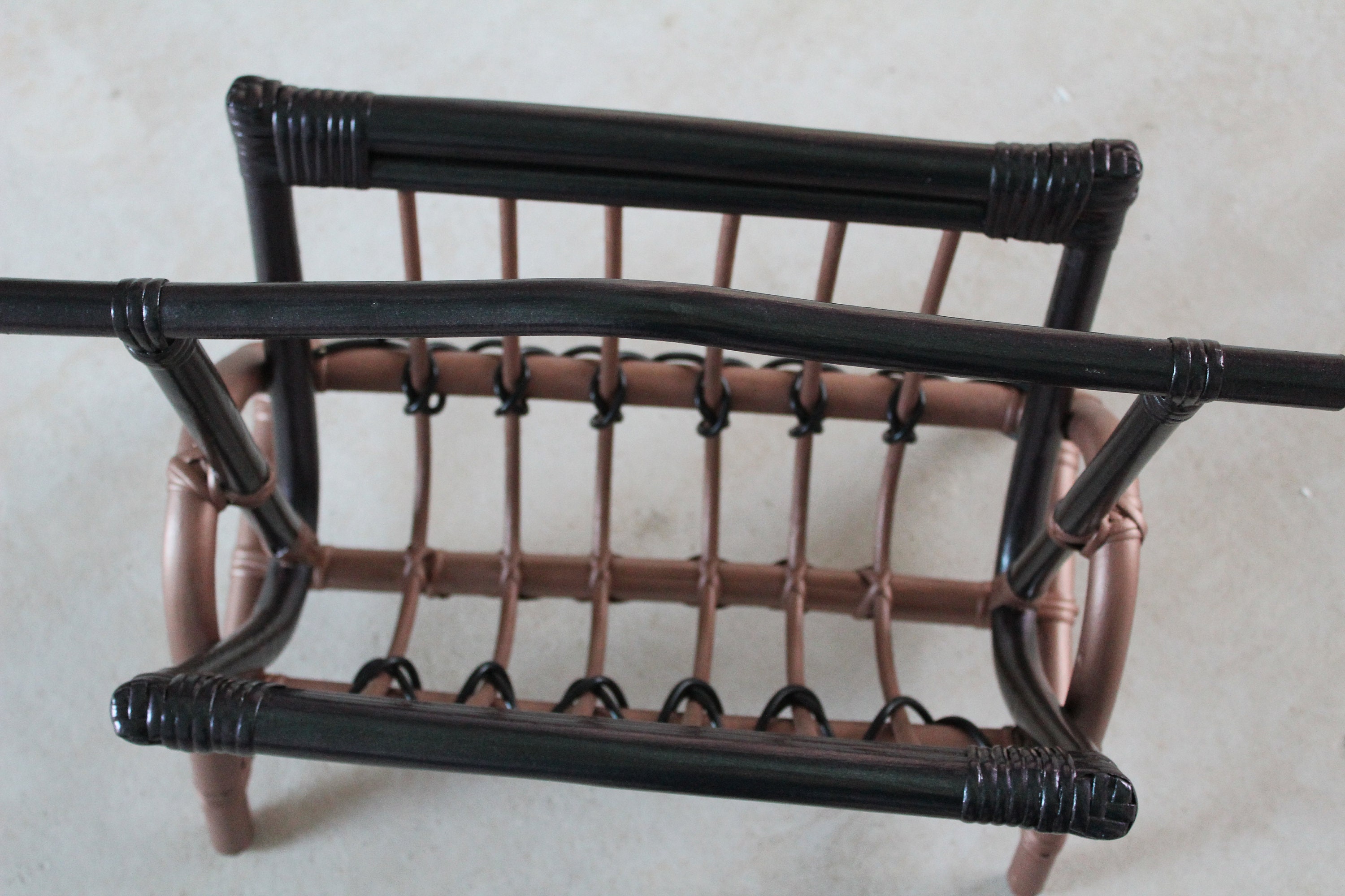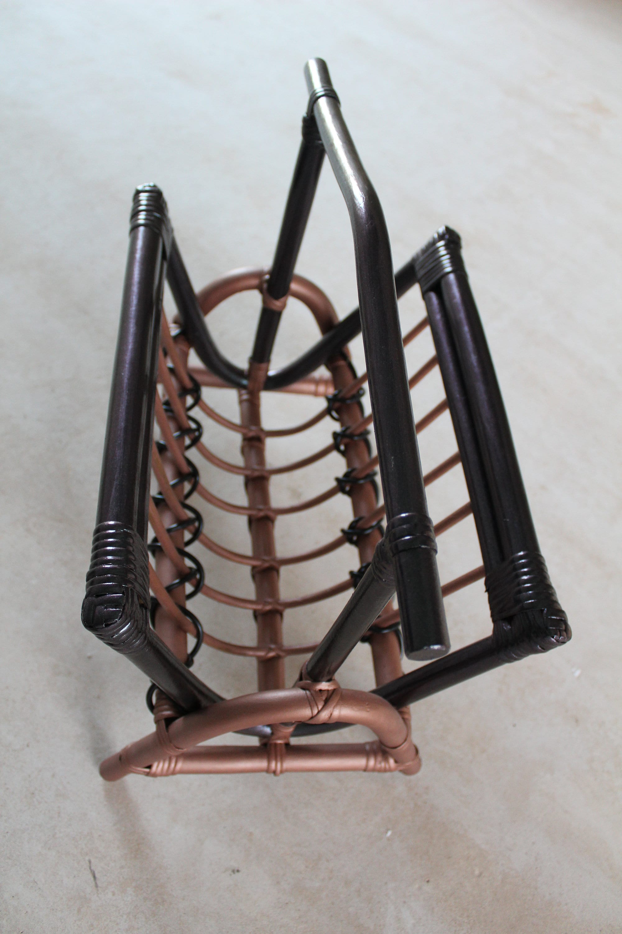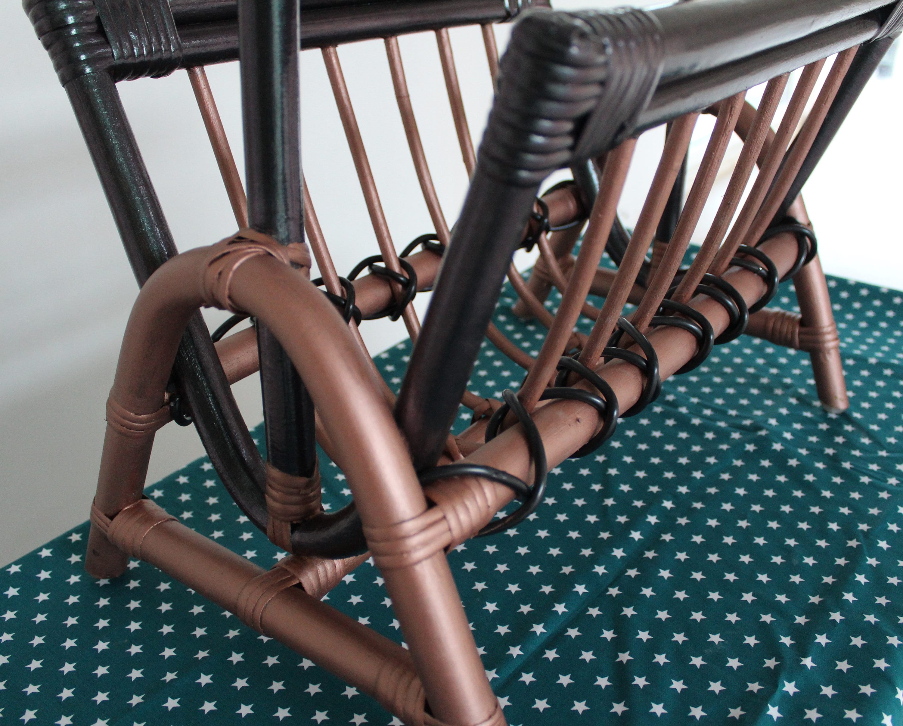 Beautiful rattan magazine rack, completely renovated, copper and black