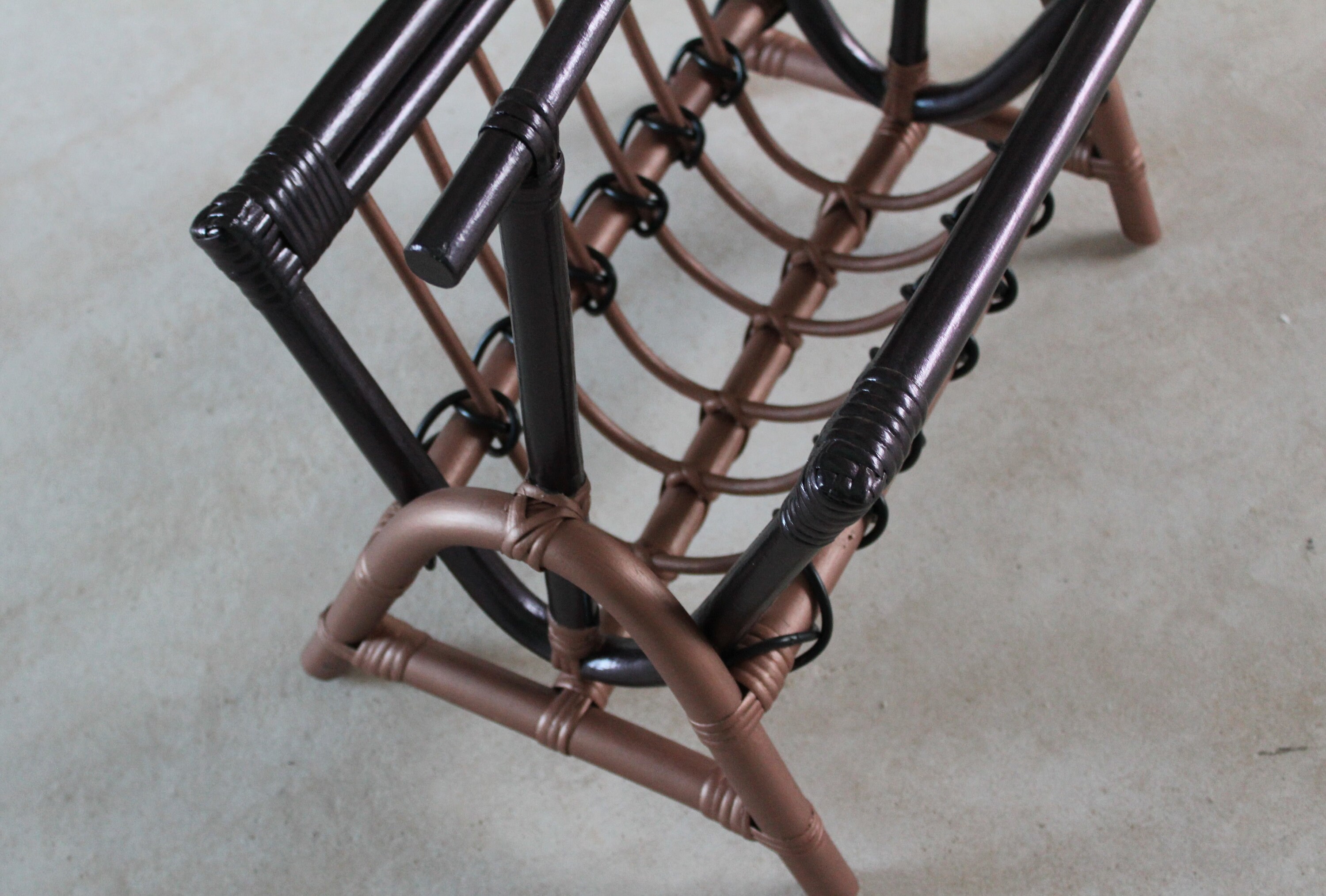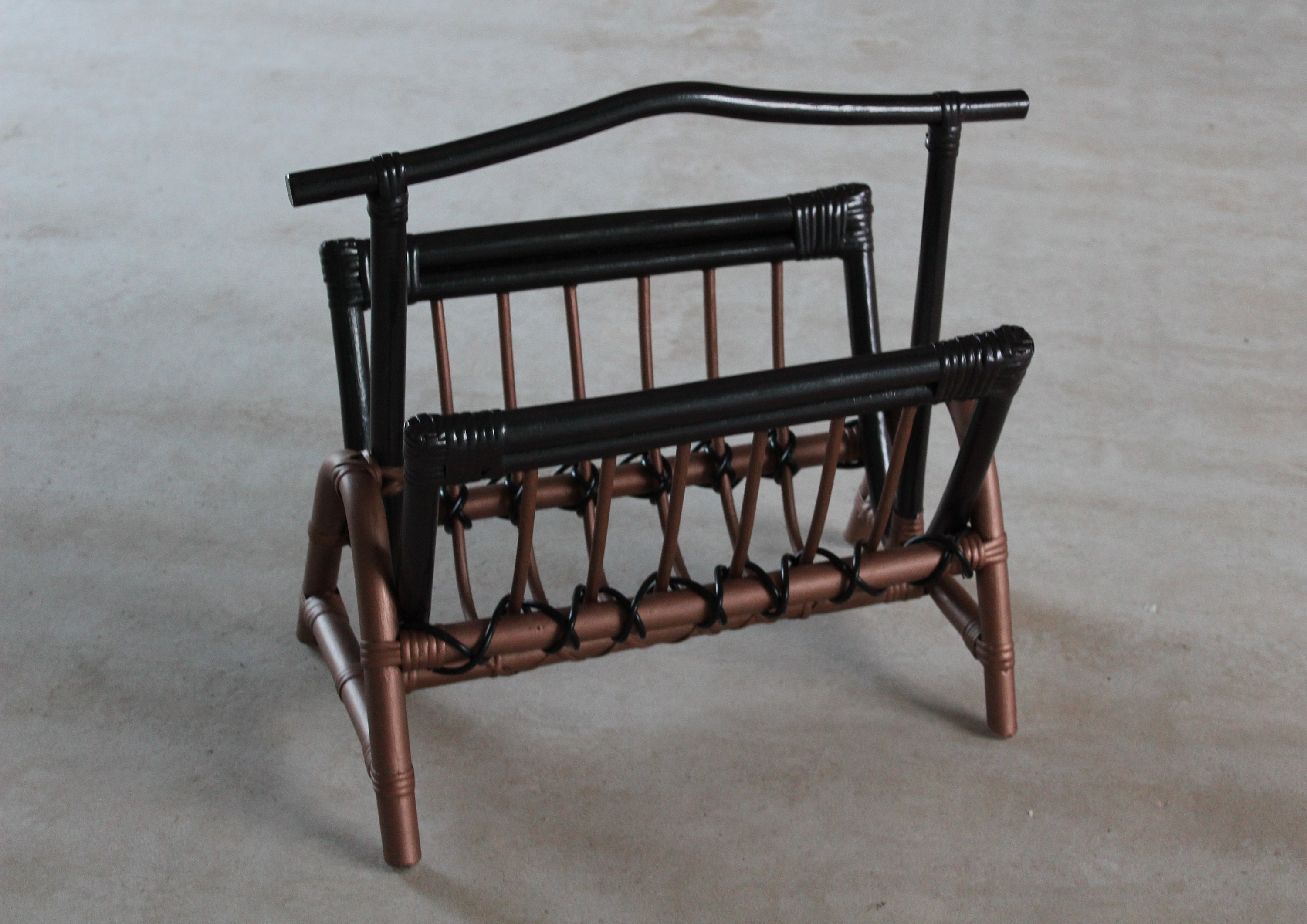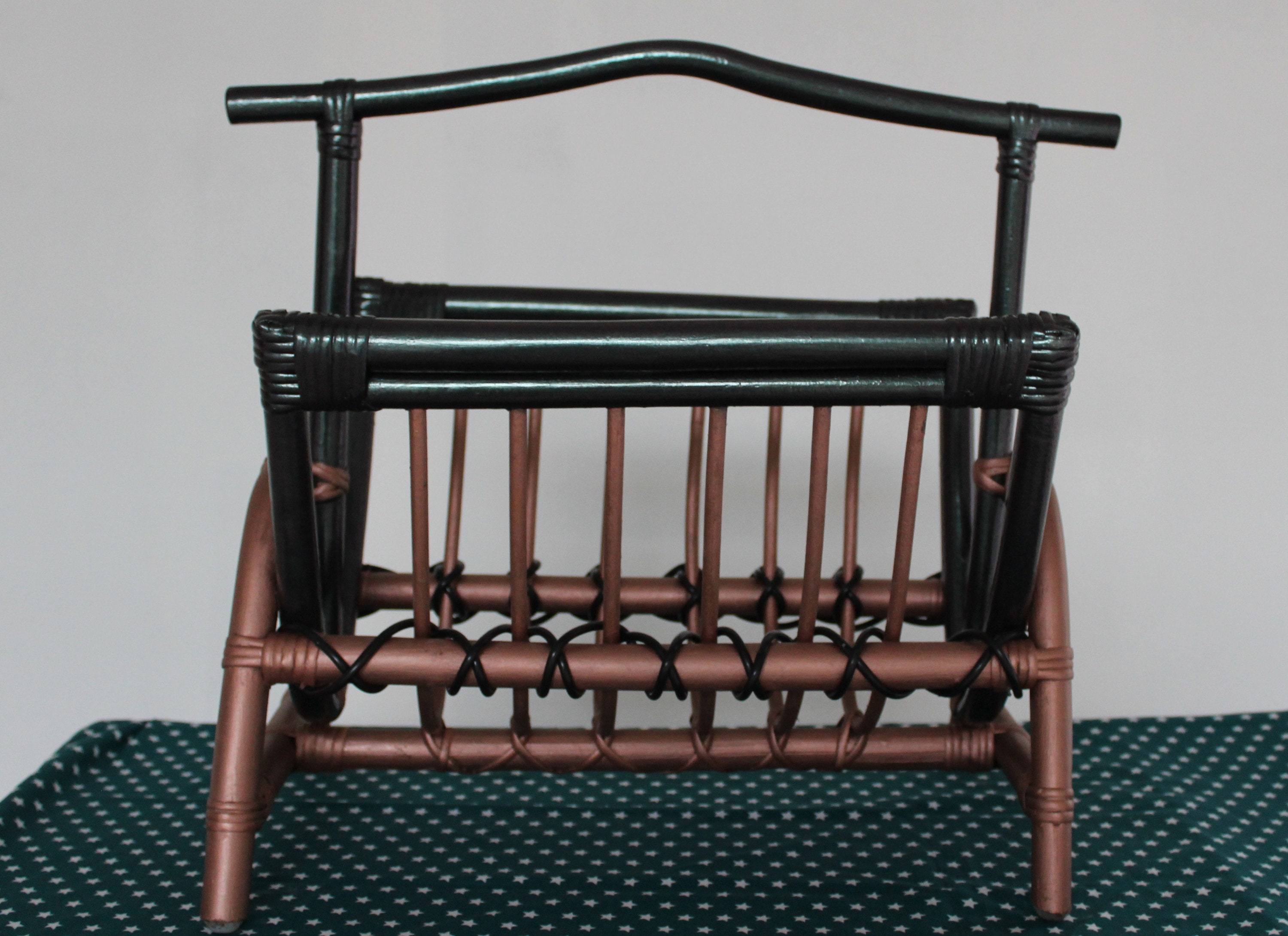 Beautiful rattan magazine rack, completely renovated, copper and black