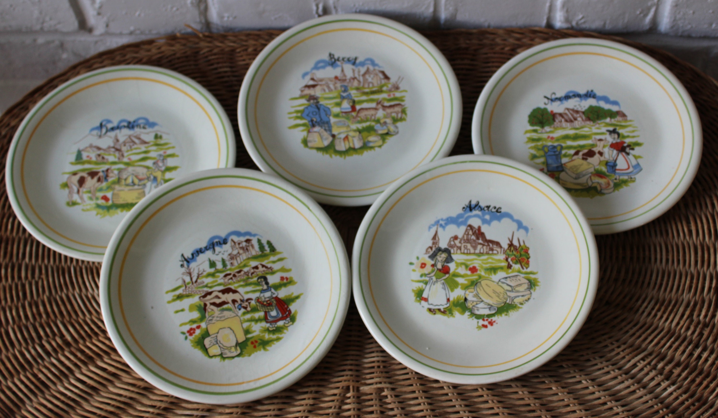 5 small individual plates - French cheese plates with regional French decorations