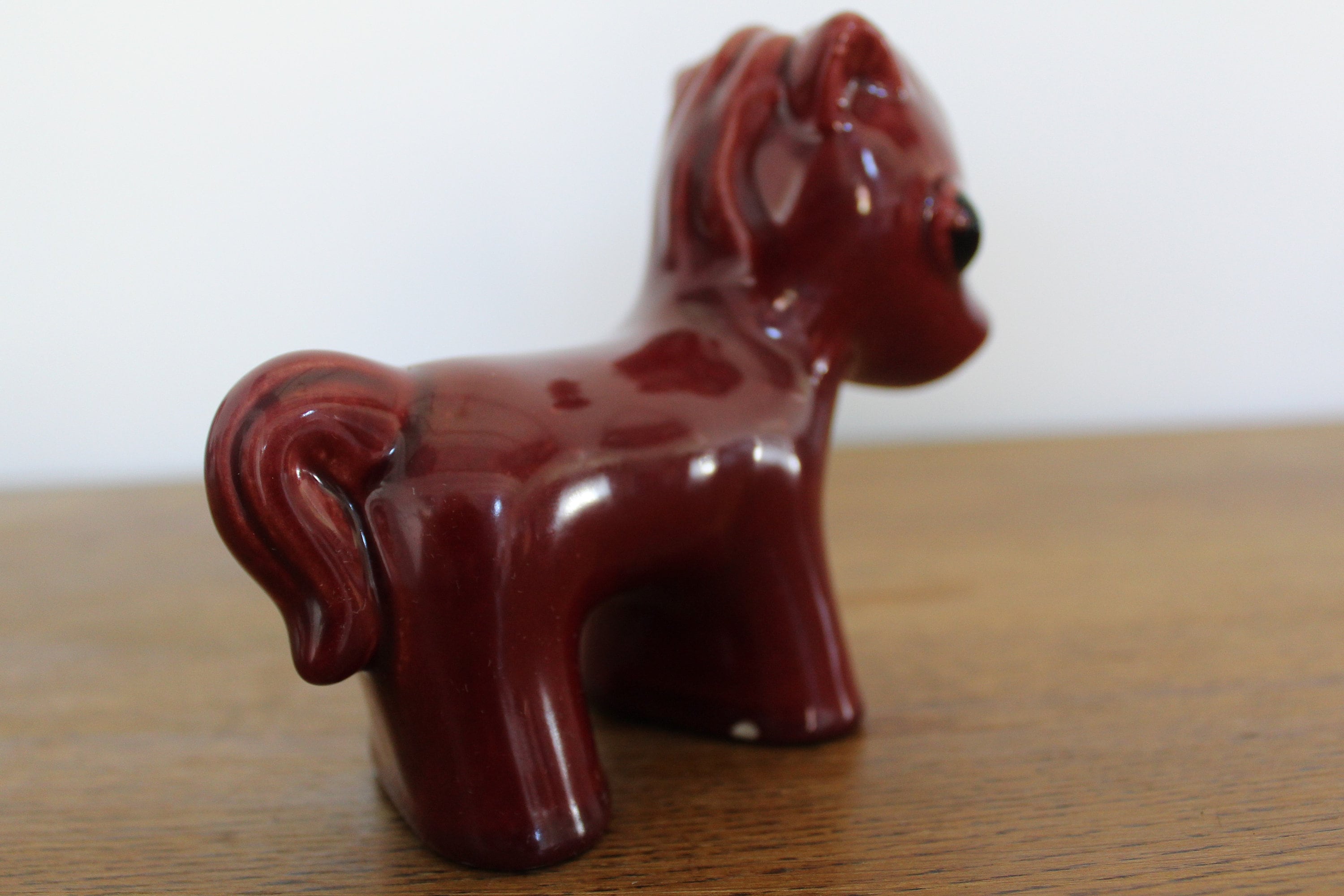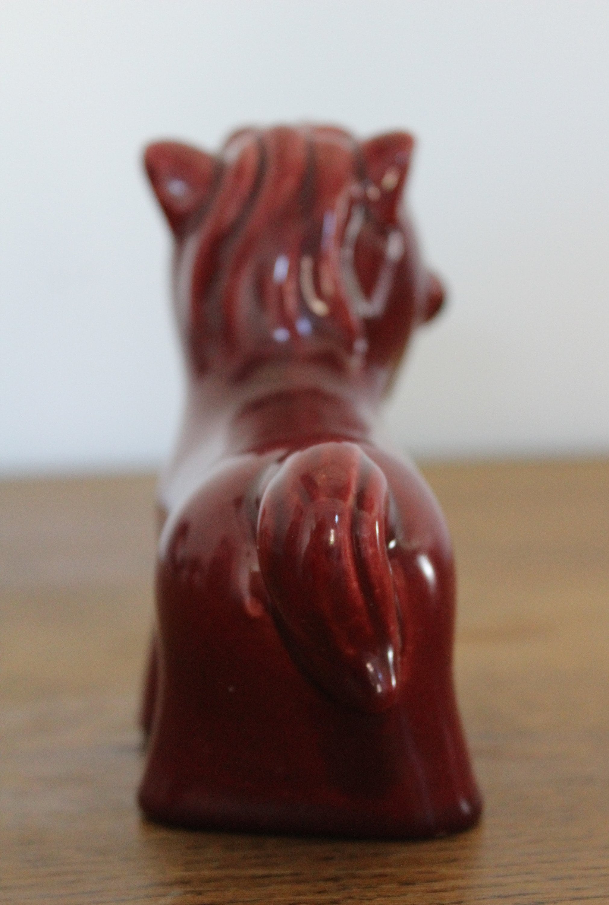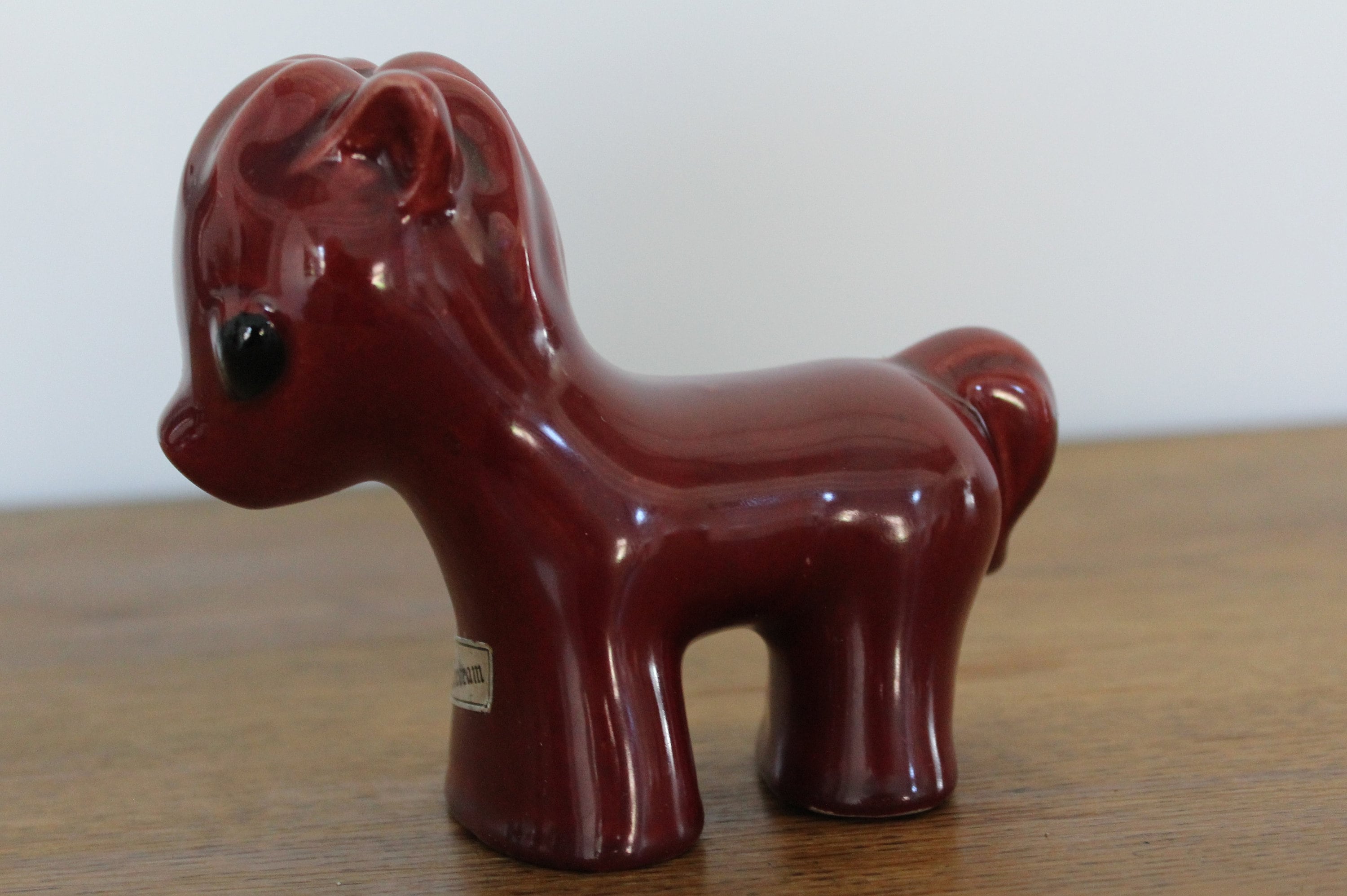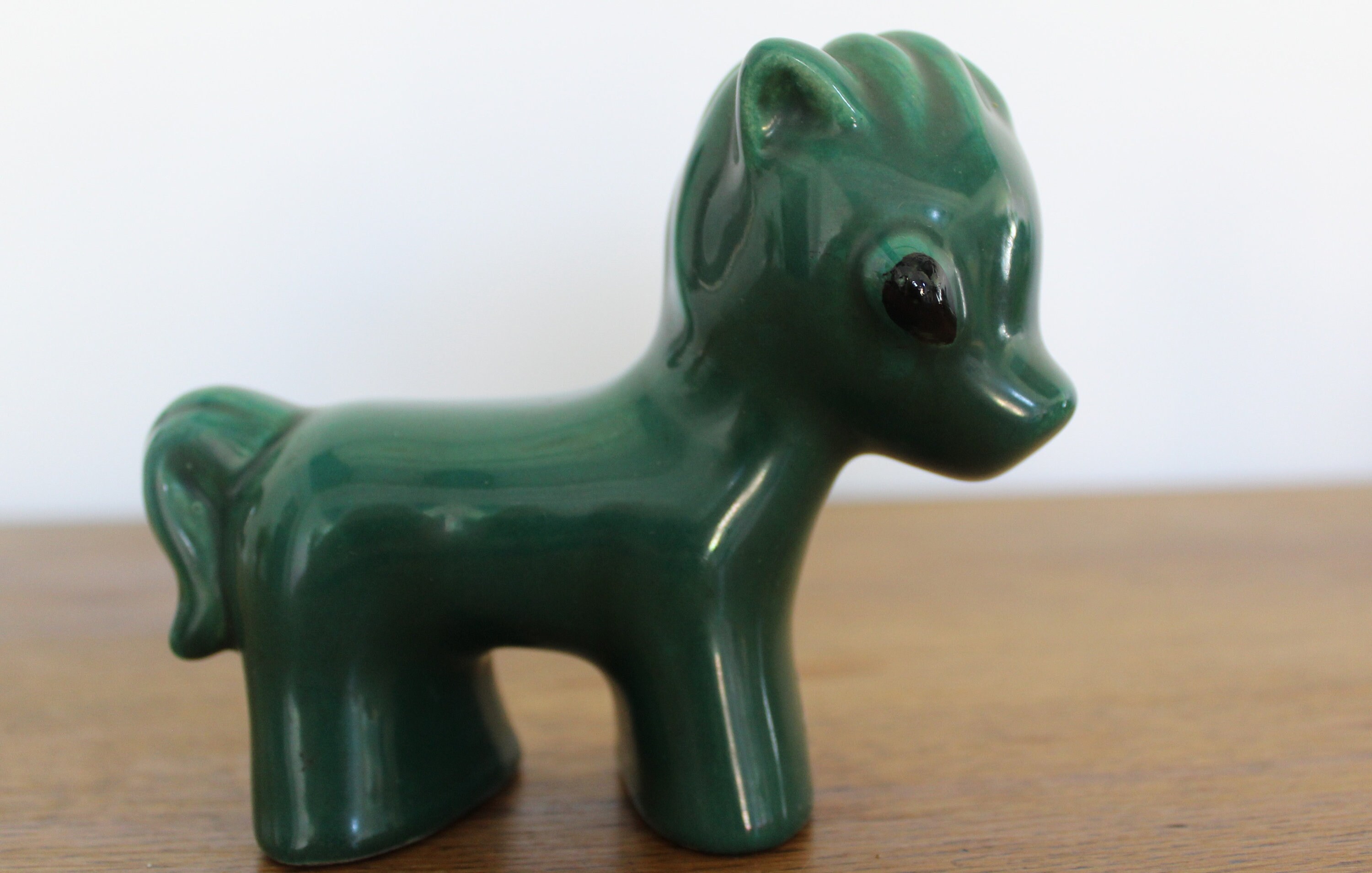 Charming pair of small horses, in green and red glazed ceramic, circa 50