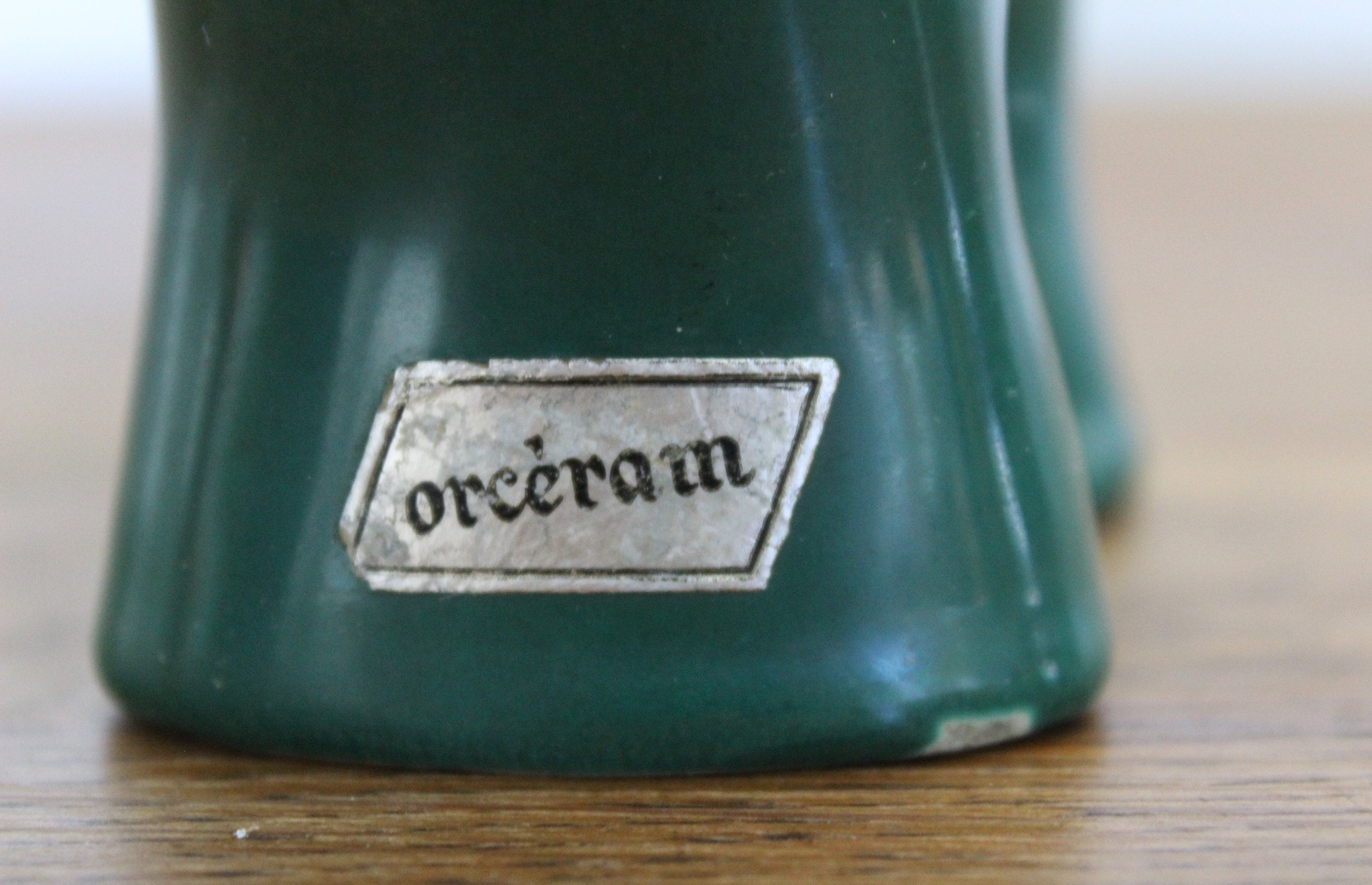 Orcéram label on each piece, Orcéram is a brand produced by the earthenware factory of the mill of the wolves in Saint-Amand les eaux, in the north of France, from 1908 to 1962.