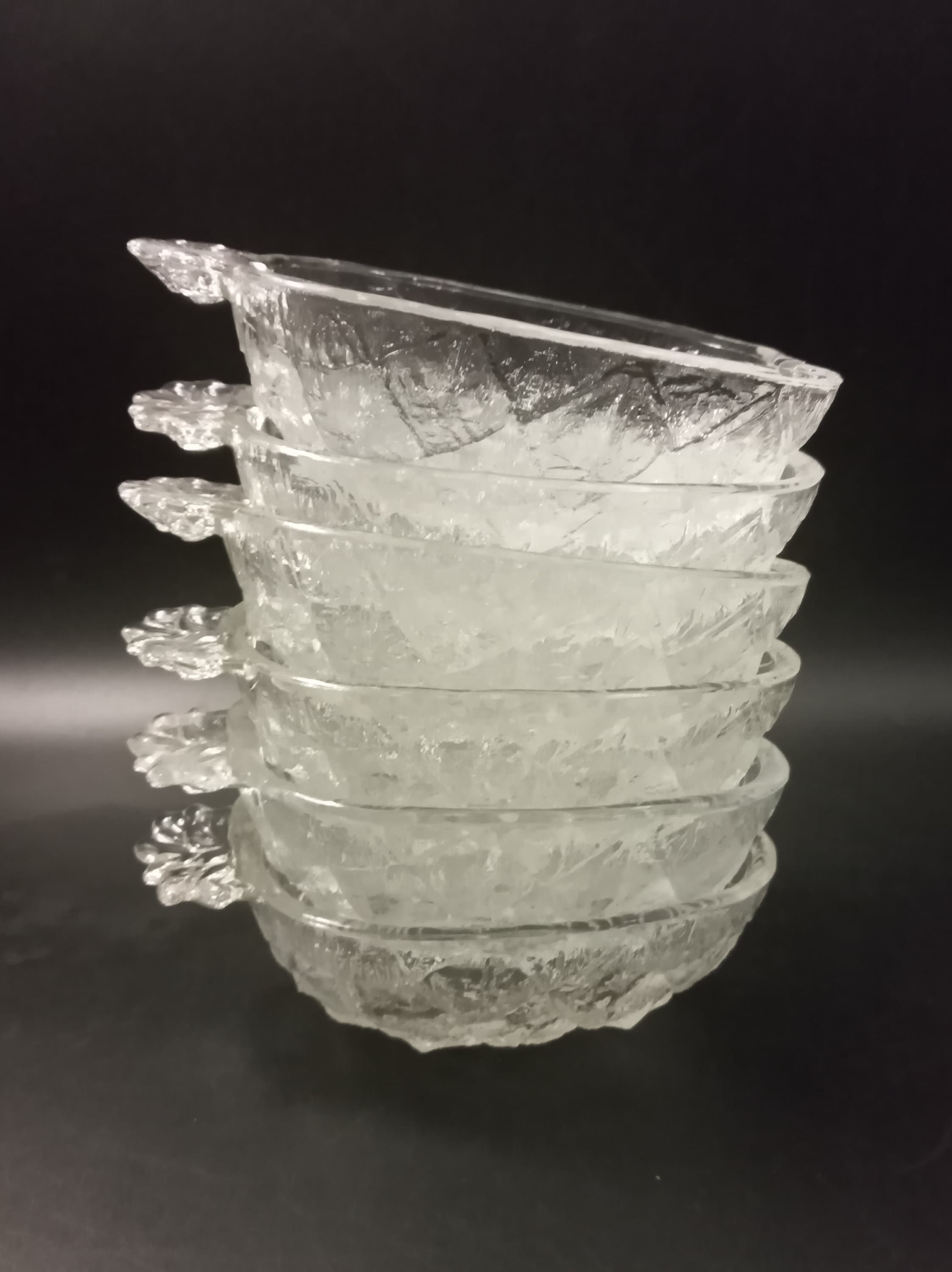 Dessert or compote service, in glass from the 70s, made in Italy.