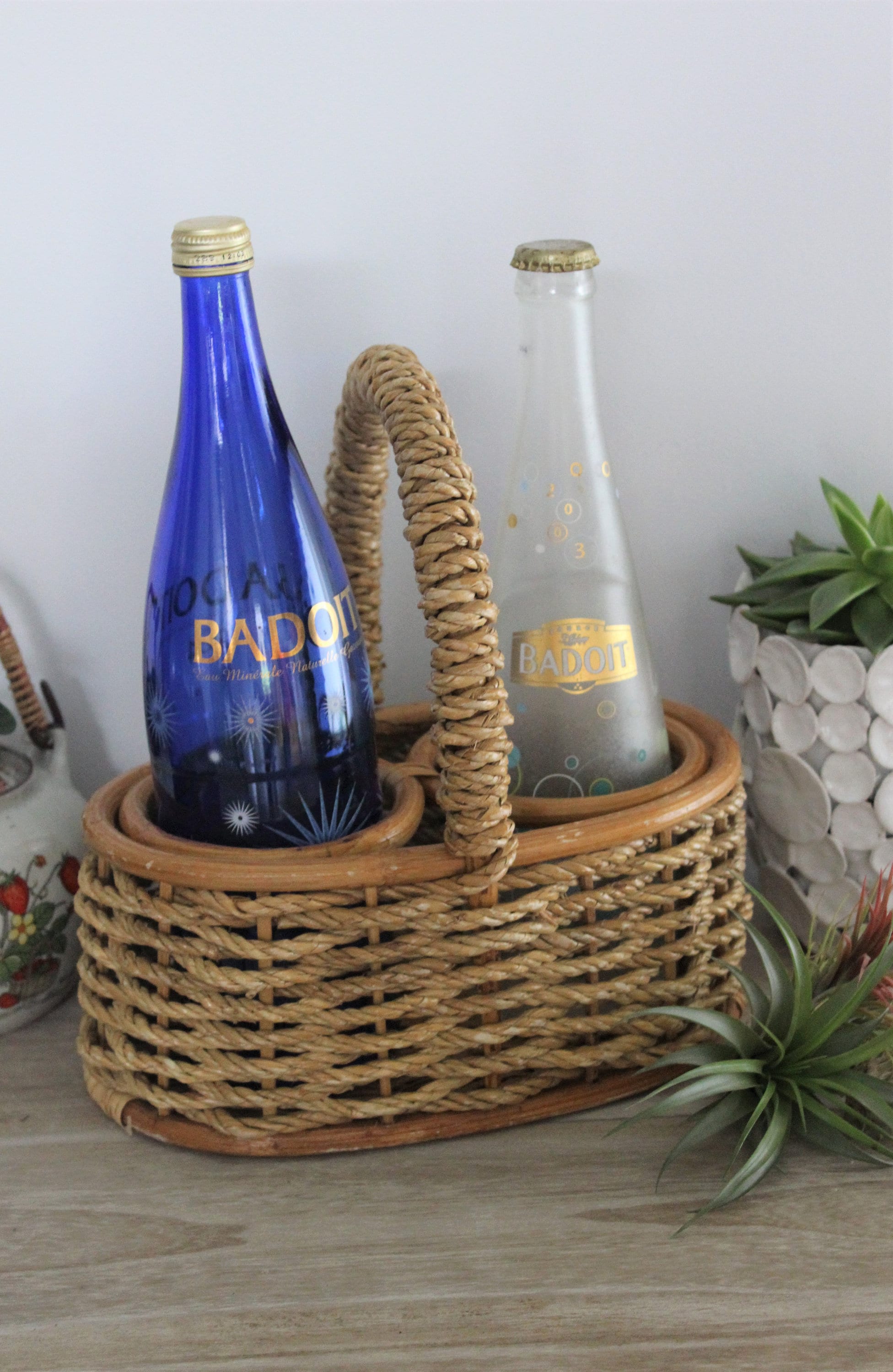 Beautiful bottle rack made of rattan, wicker and seagrass.