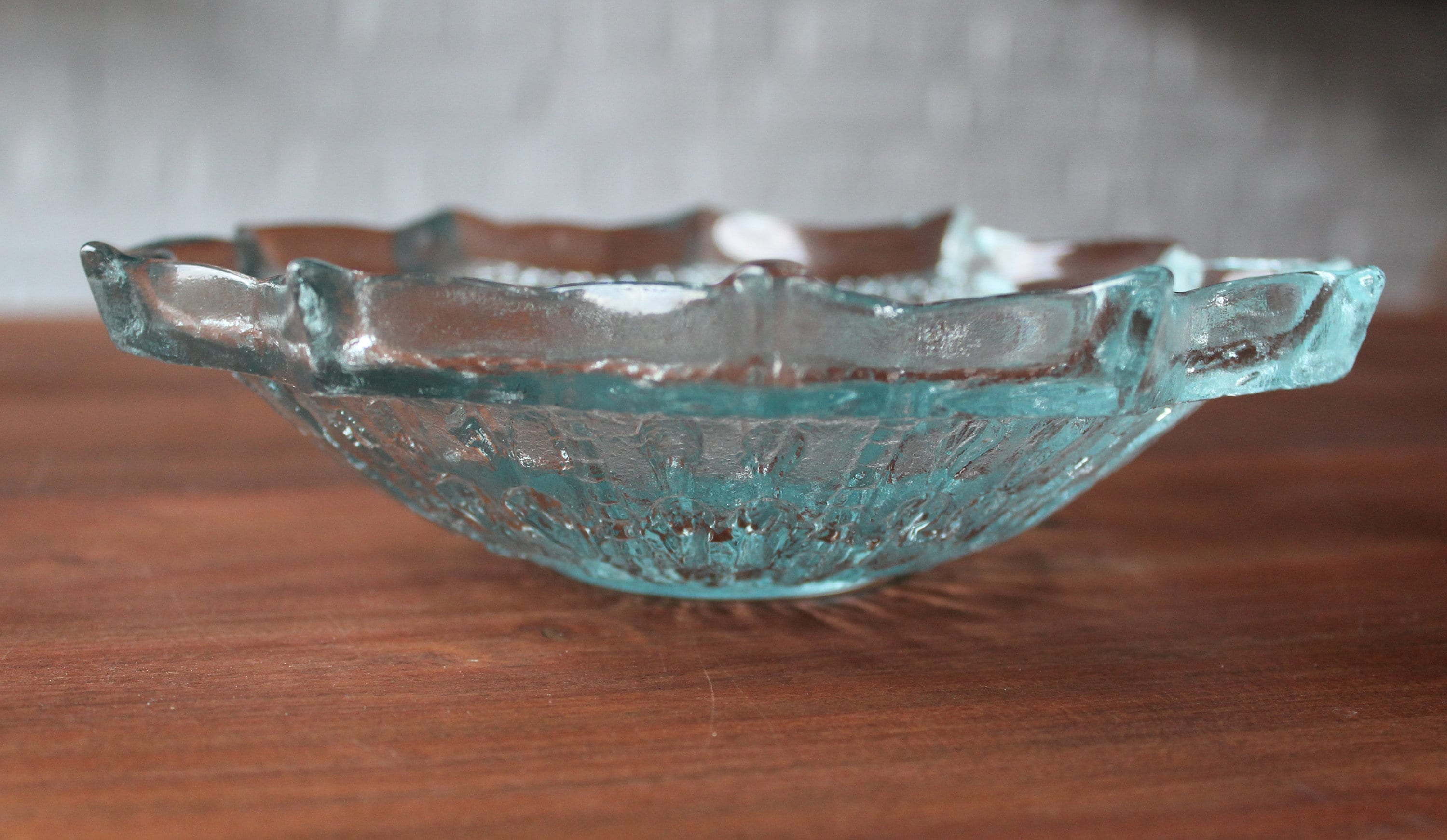Pretty star-shaped trinket dish made of clear glass with a slight pastel green sheen.