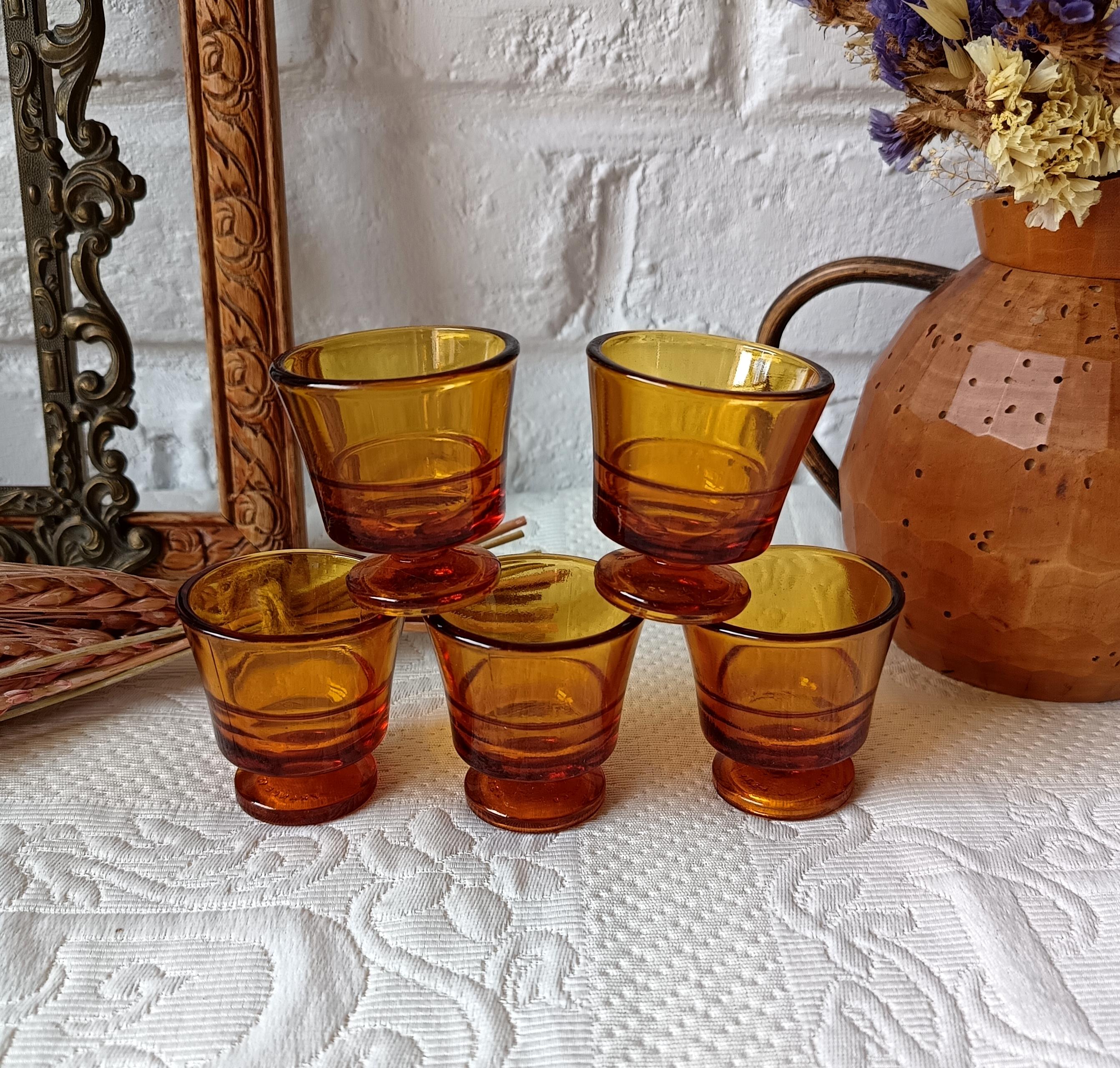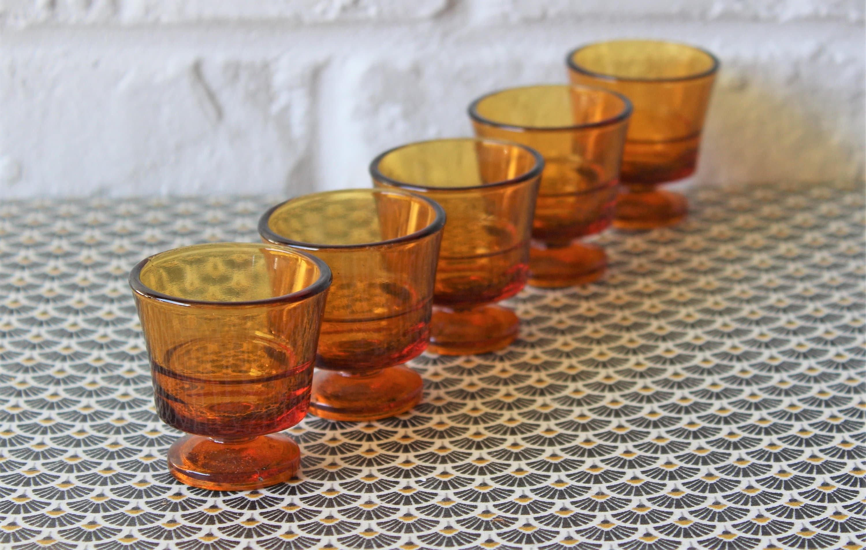 Highly decorative, 5 small DURALEX stemmed glasses from the 70s.