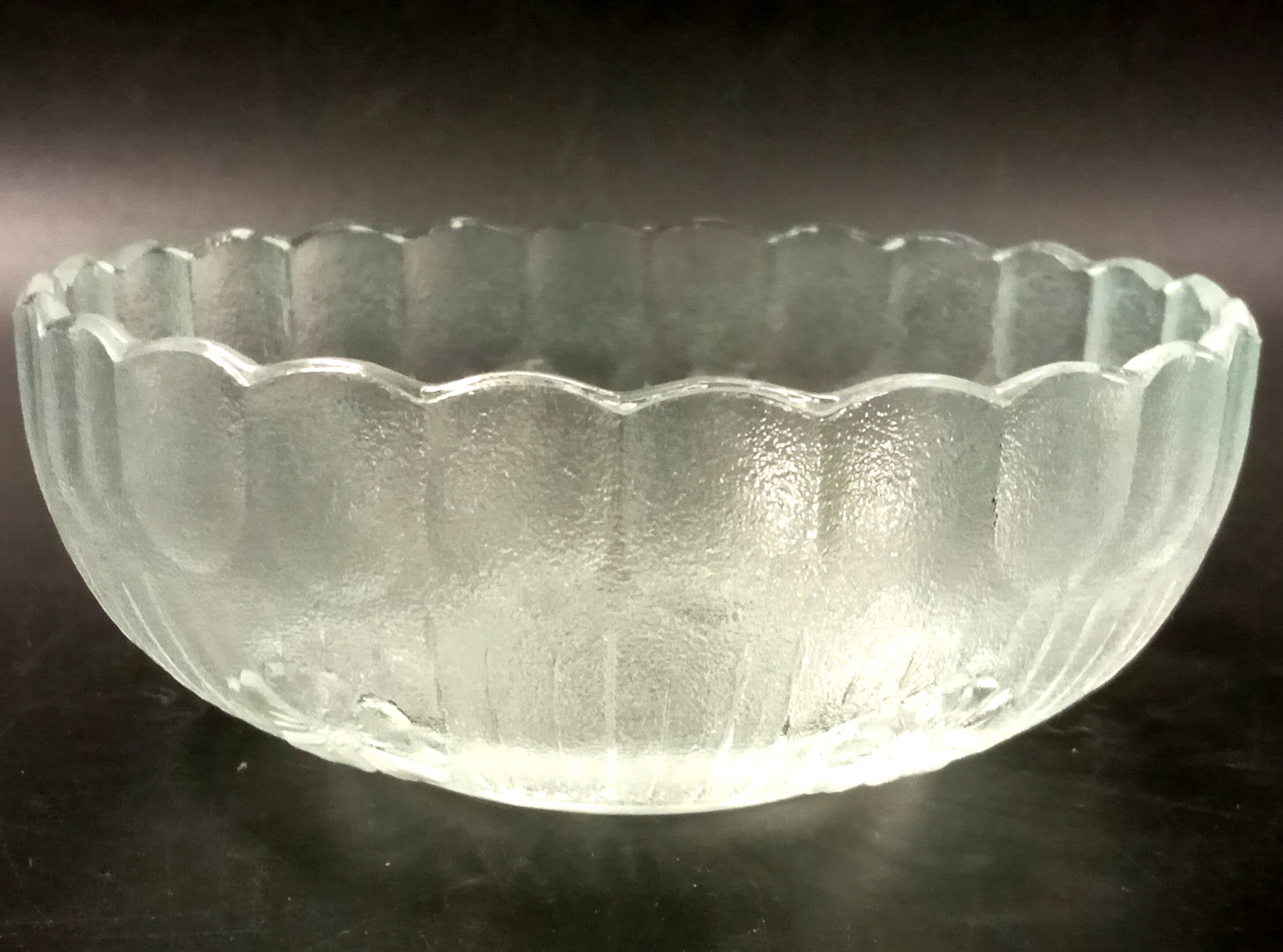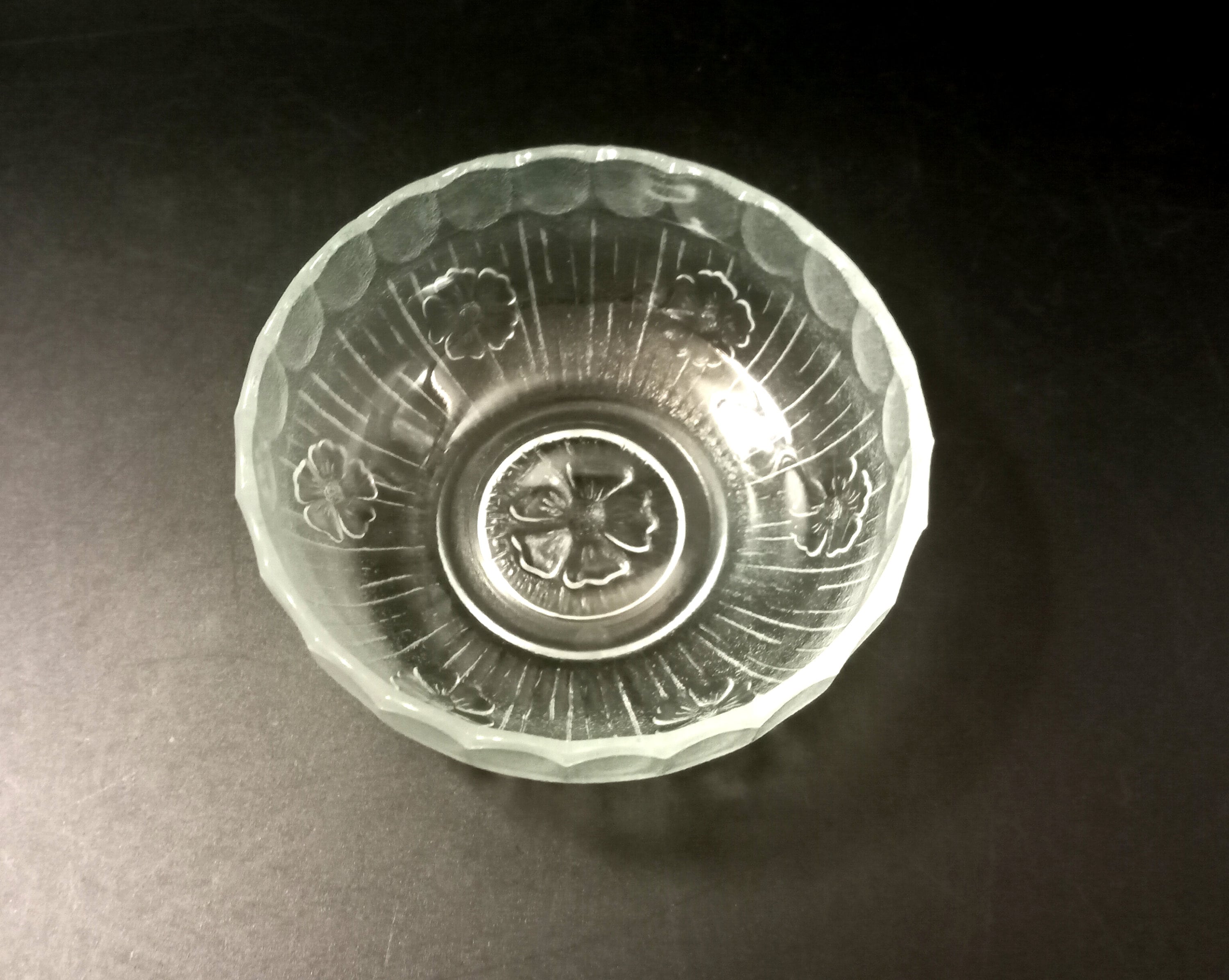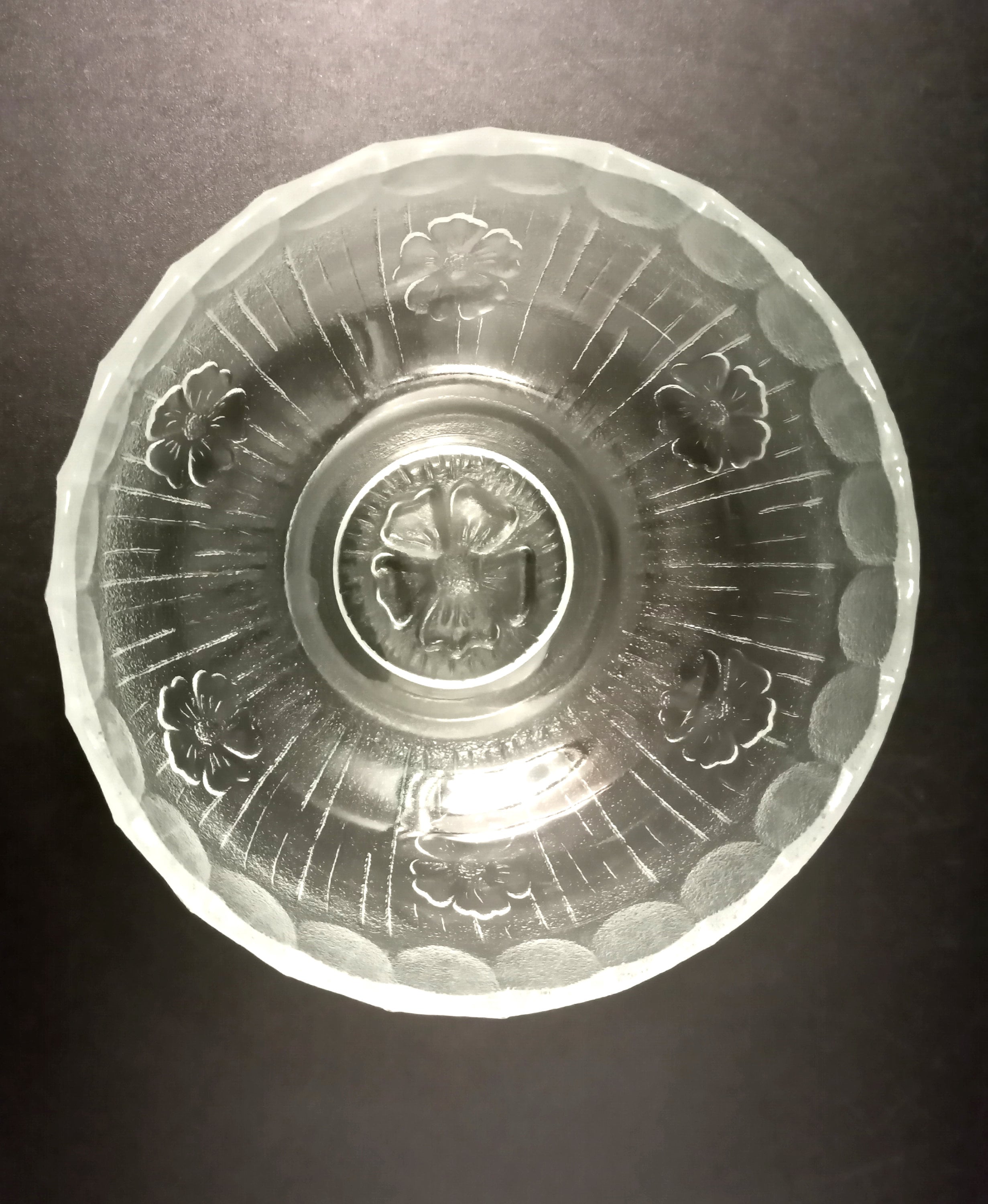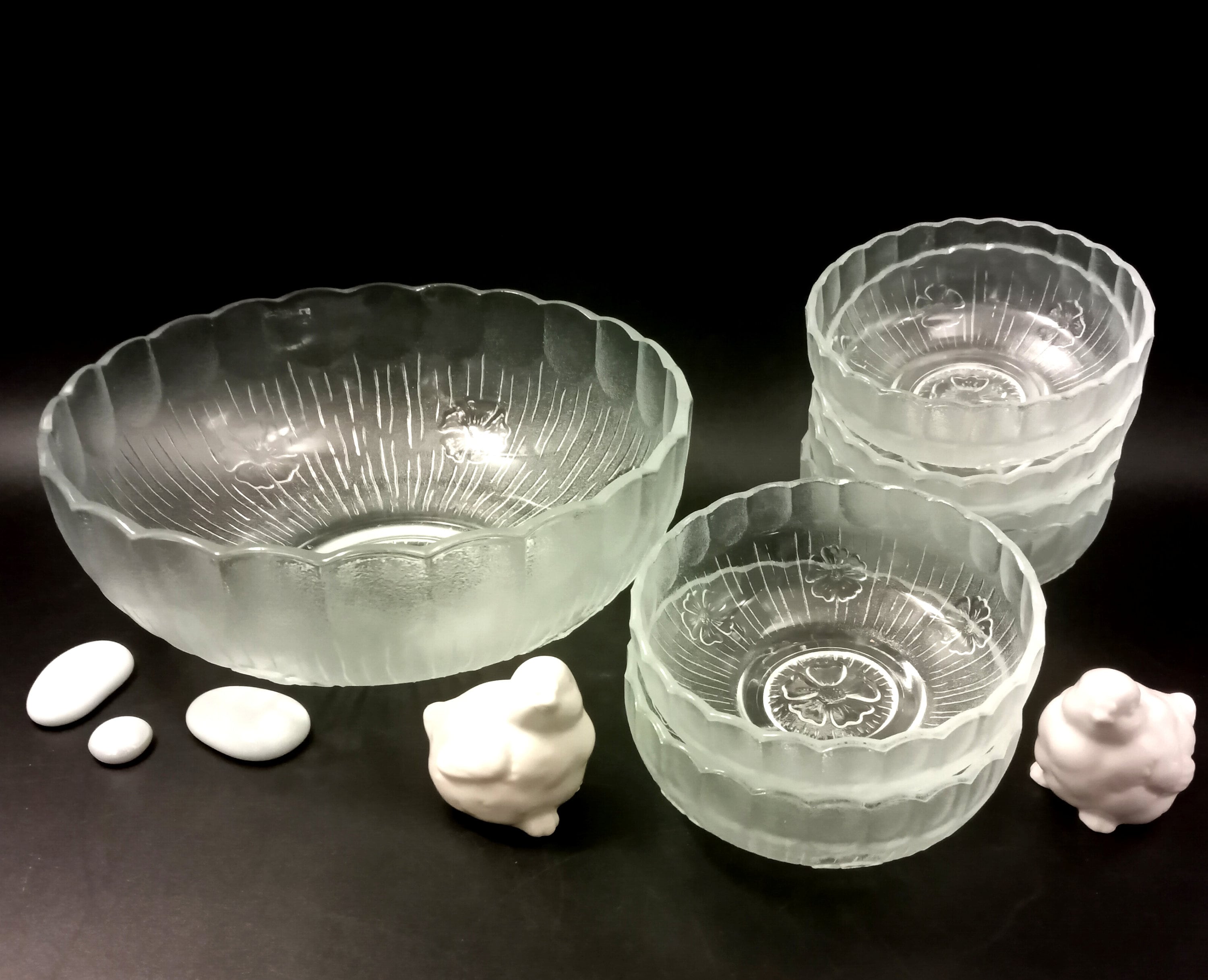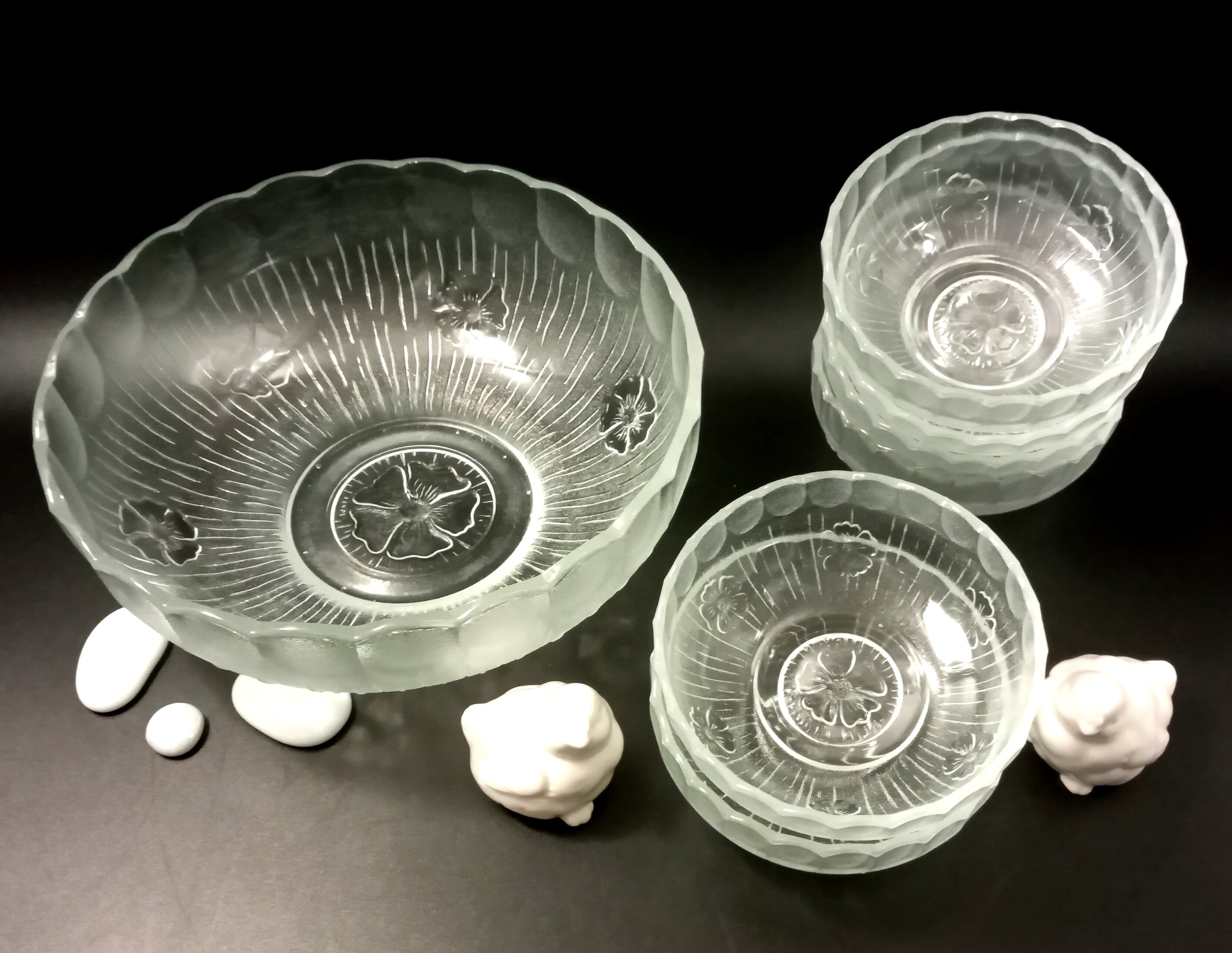 Clear glass dessert set, pressed glass salad bowl, 1980s clear glass bowls, vintage glass bowls, France