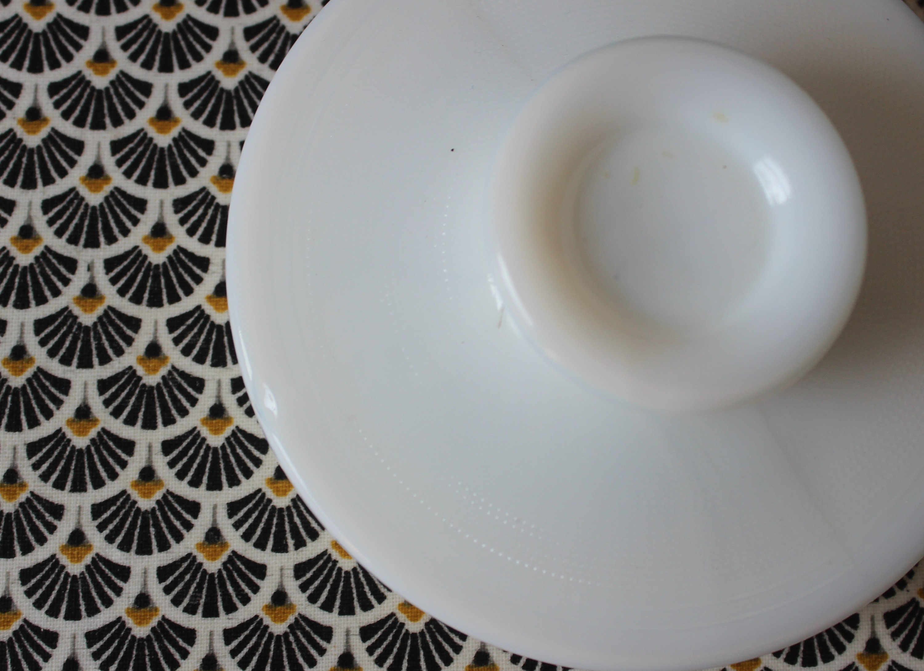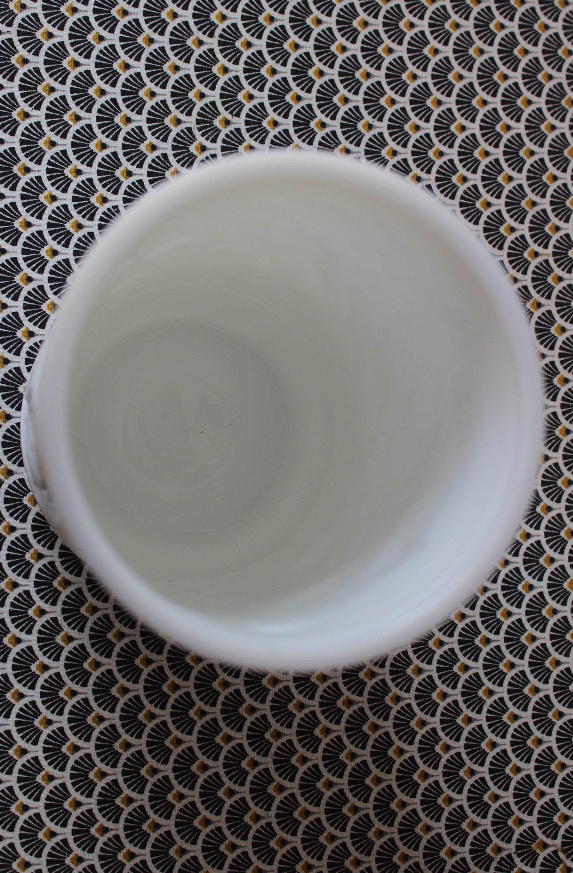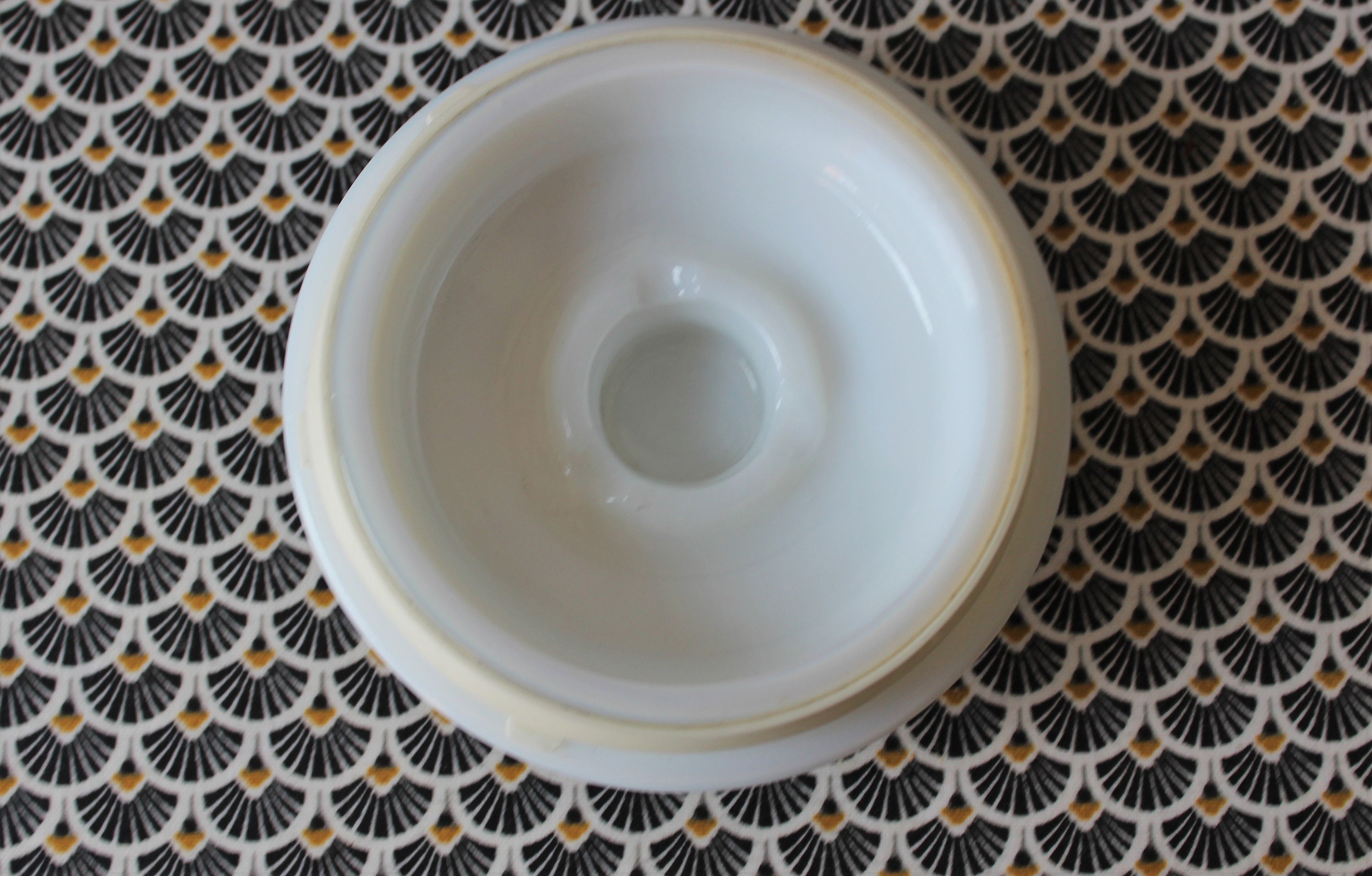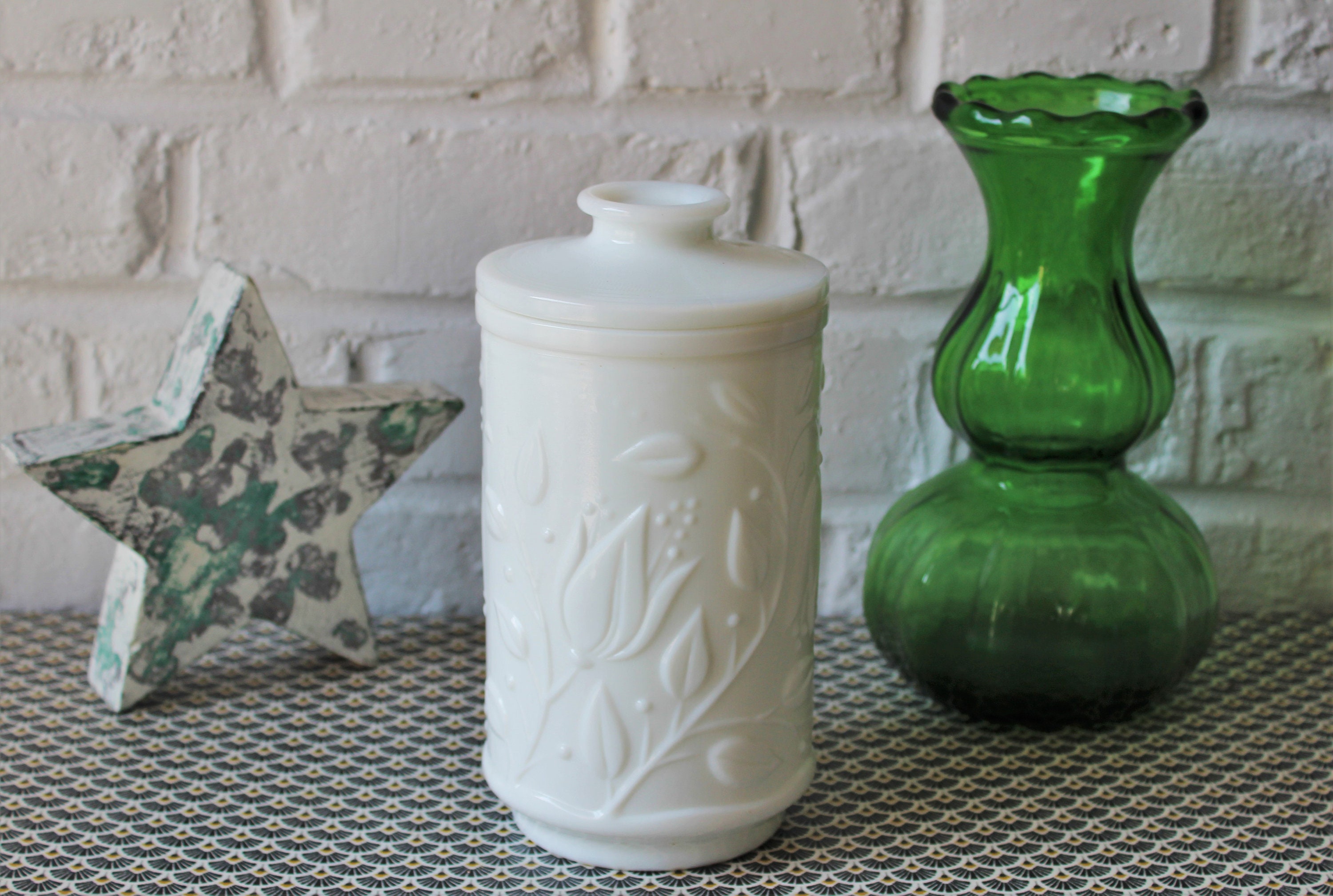 White opaline pot, 70s. Covered with patterns of flowers and leaves in relief.