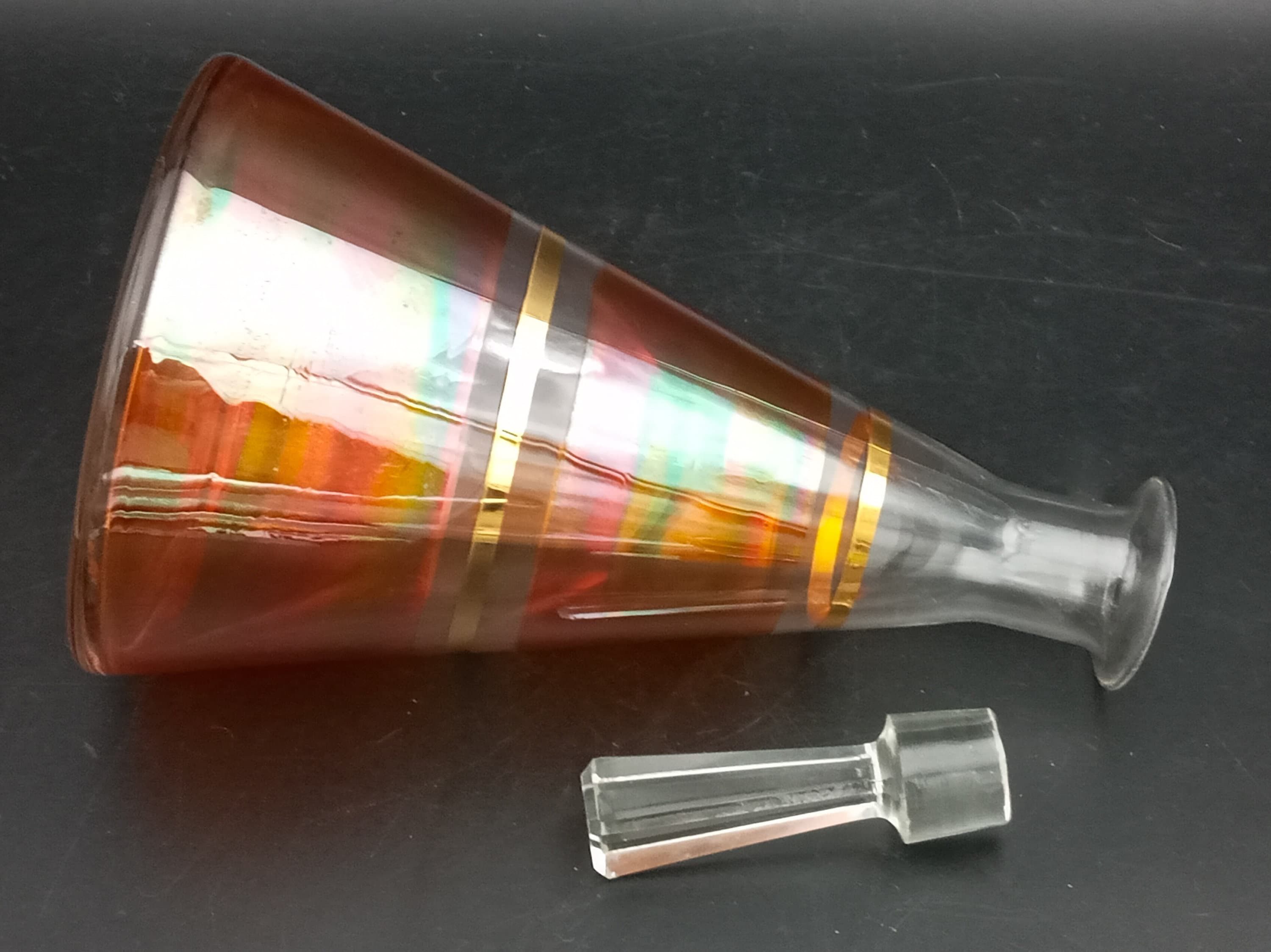 The stopper is a faceted ball; it's not original but matches the carafe perfectly. It has two microchips.