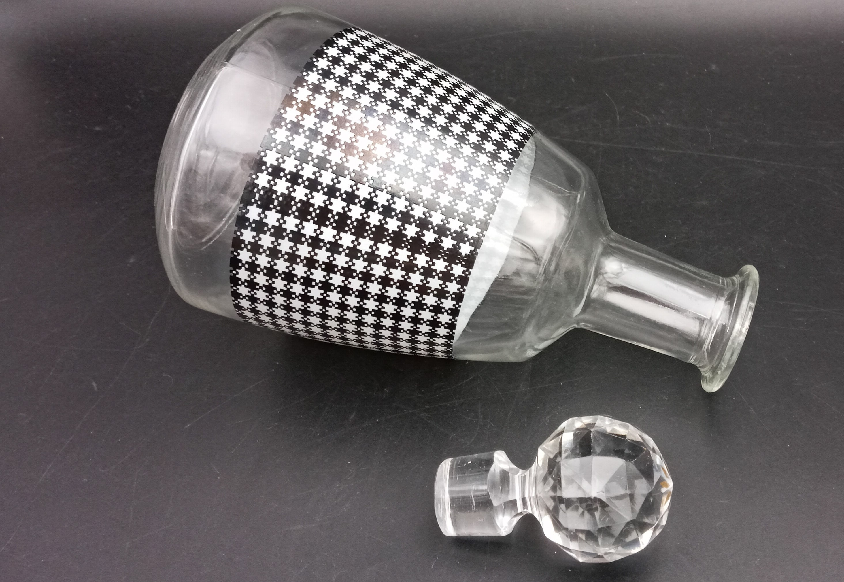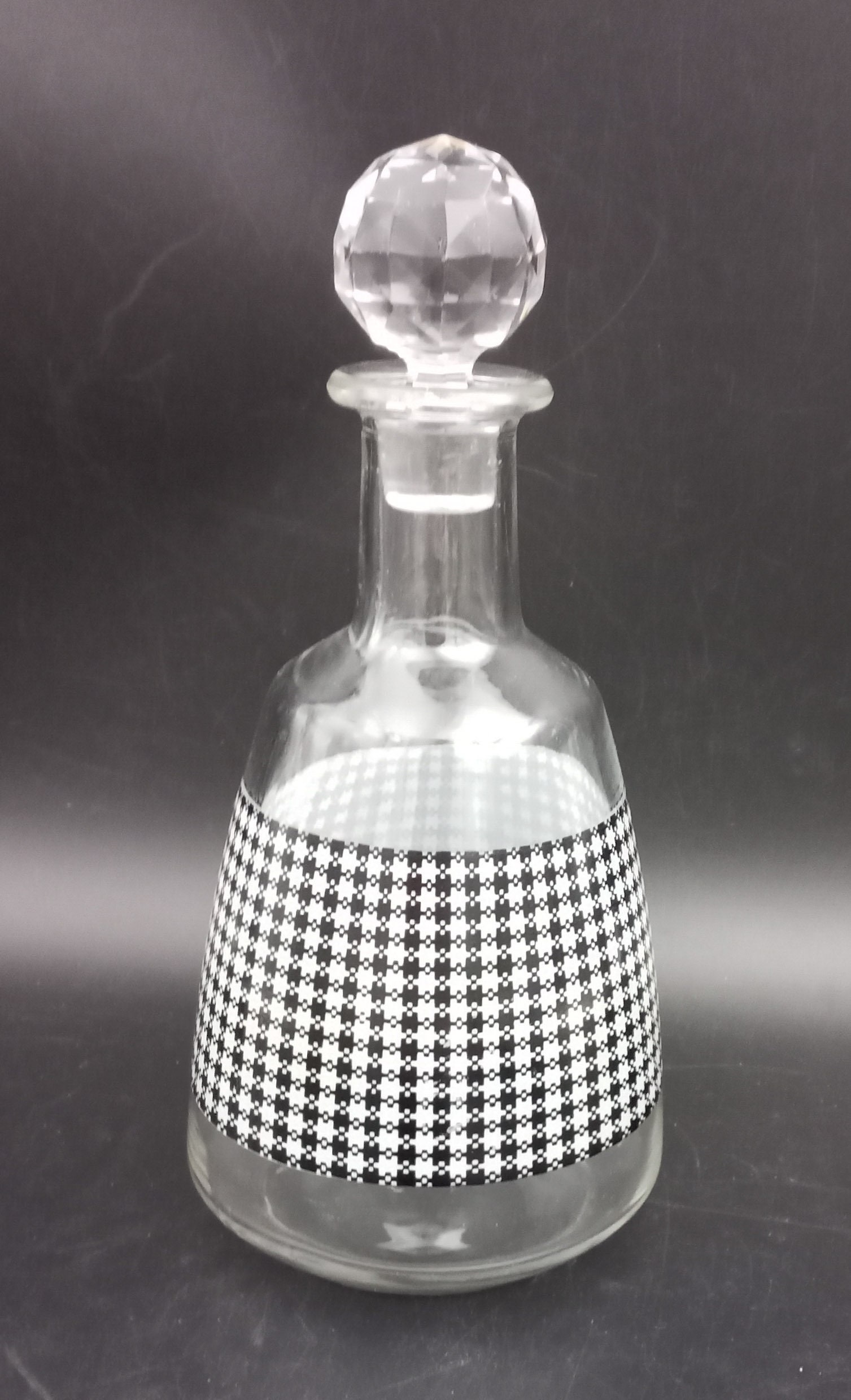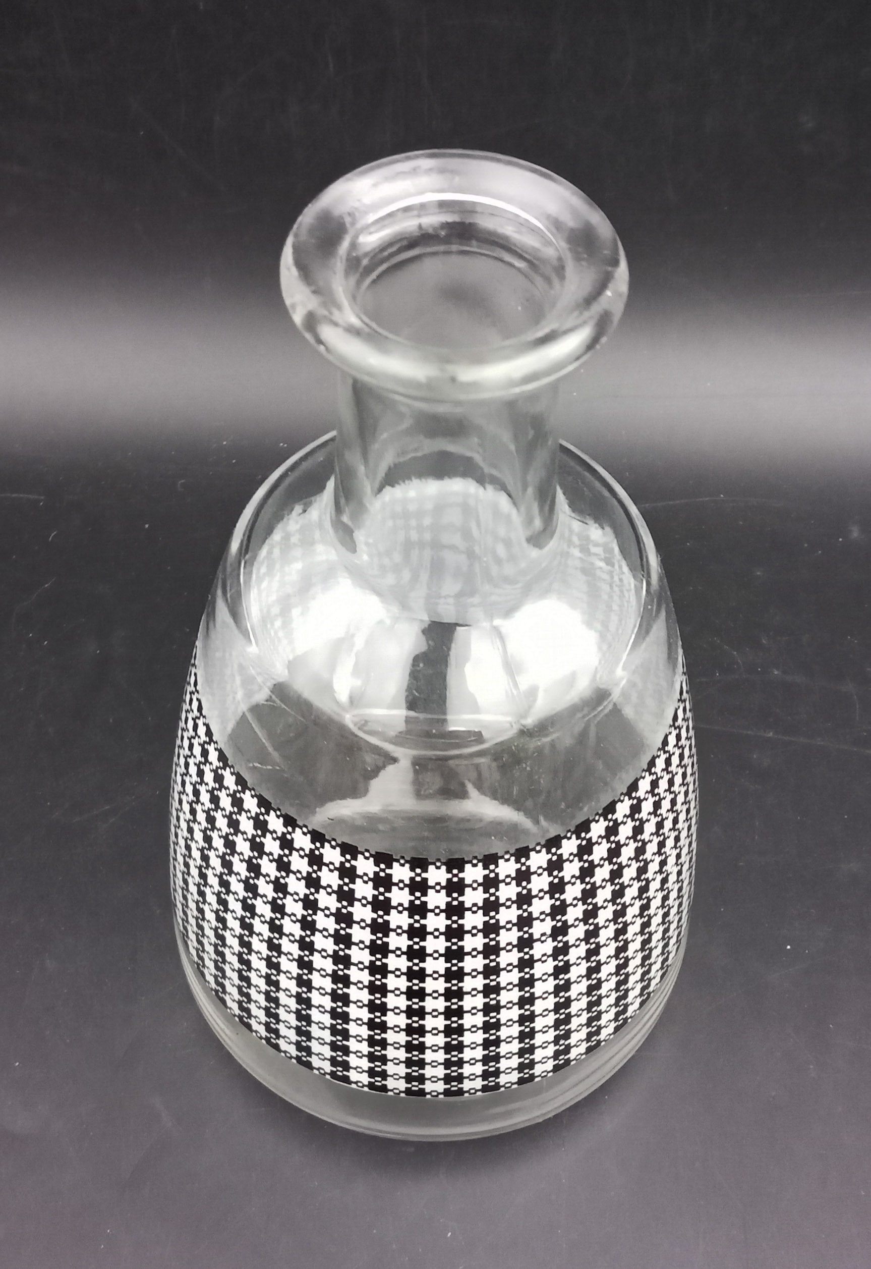 A pretty black and white carafe with a houndstooth pattern. The colors are very vibrant and flawless.